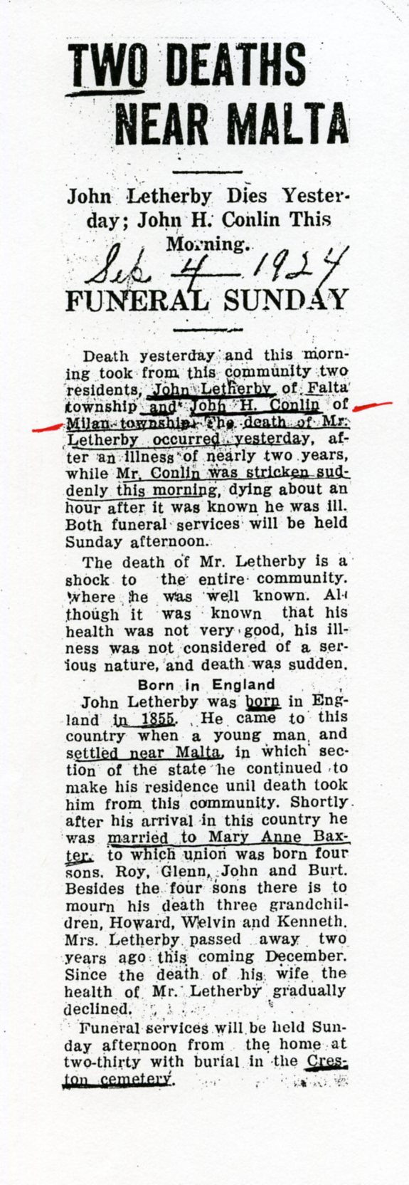 Buried in Creston Cemetery