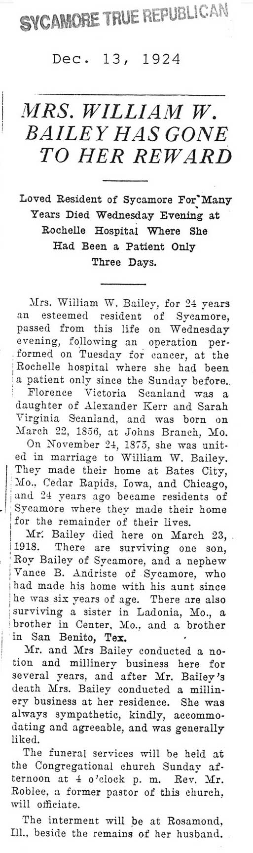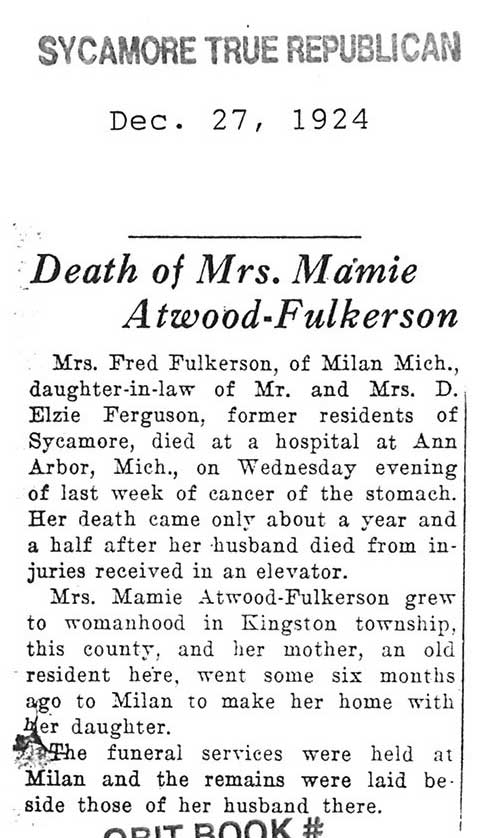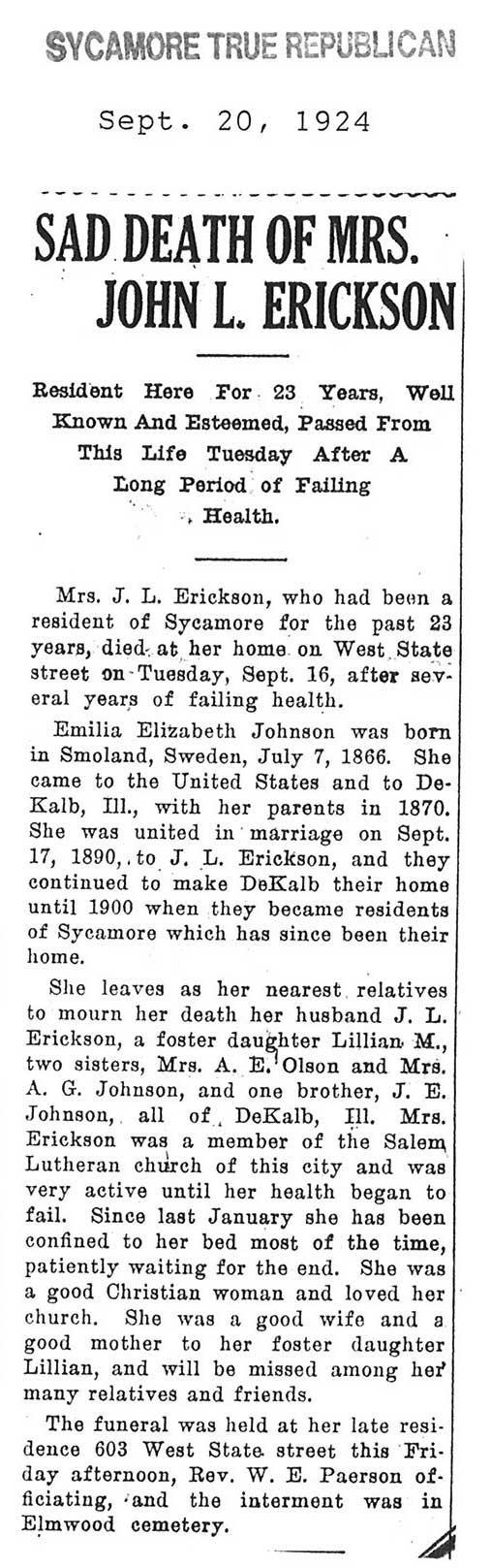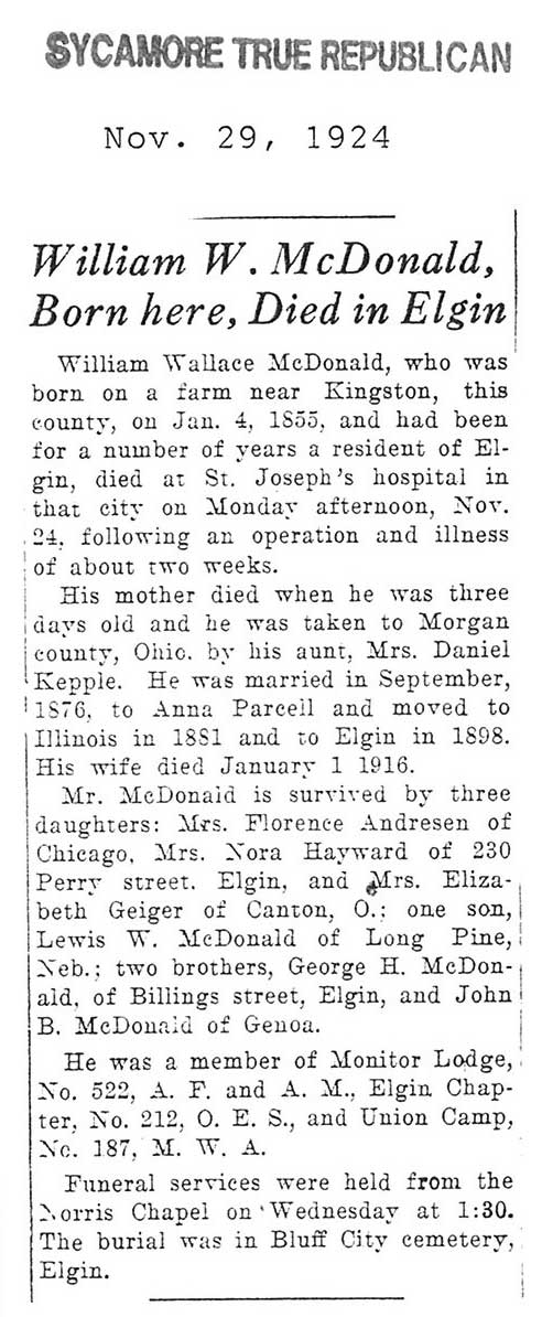 Buried in Bluff City Cemetery - Elgin, IL