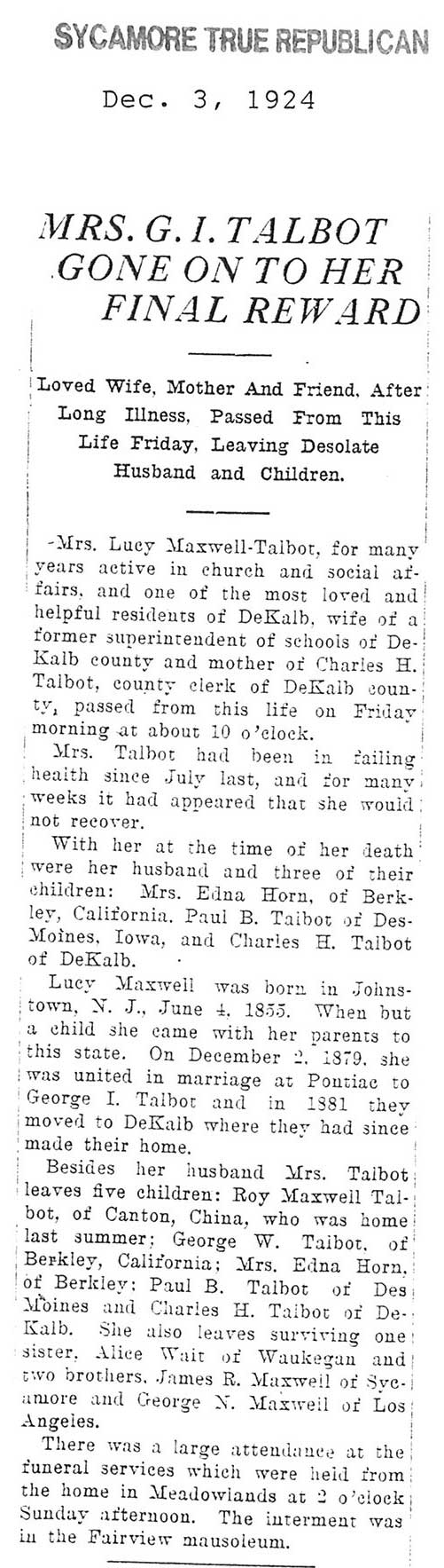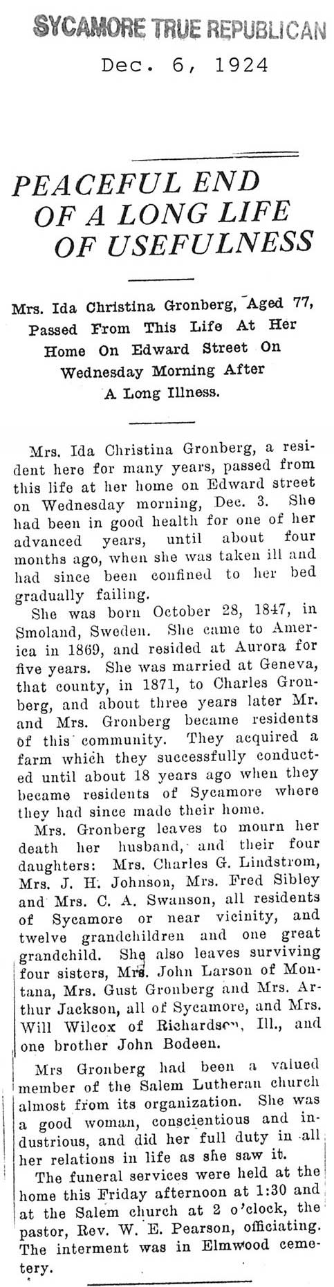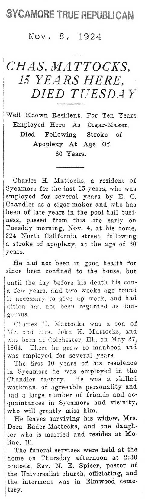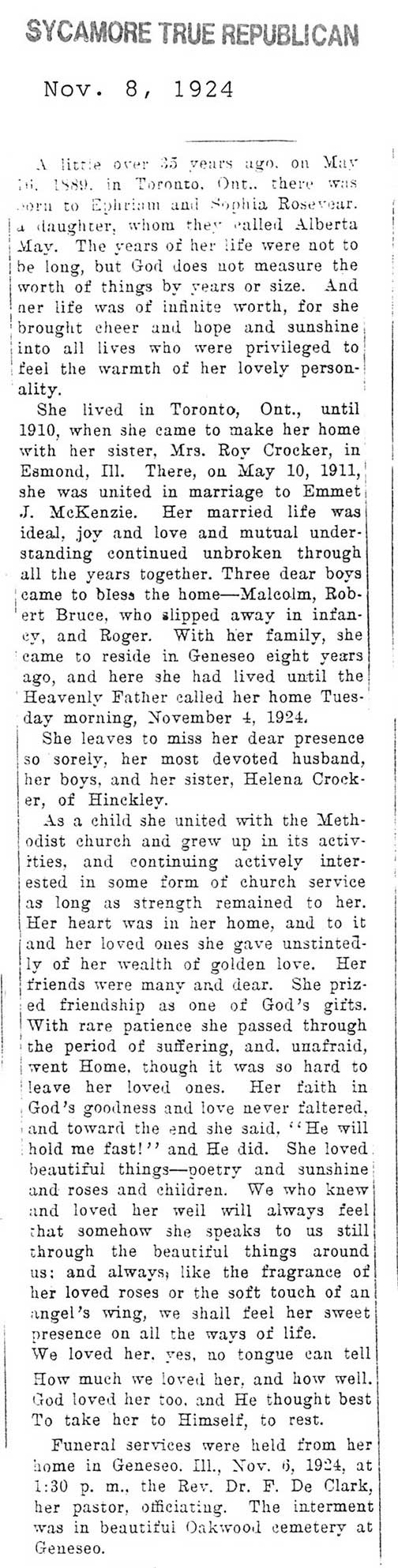 Buried in Bluff City Cemetery - Elgin, IL