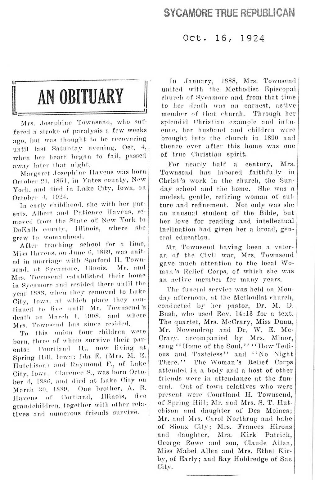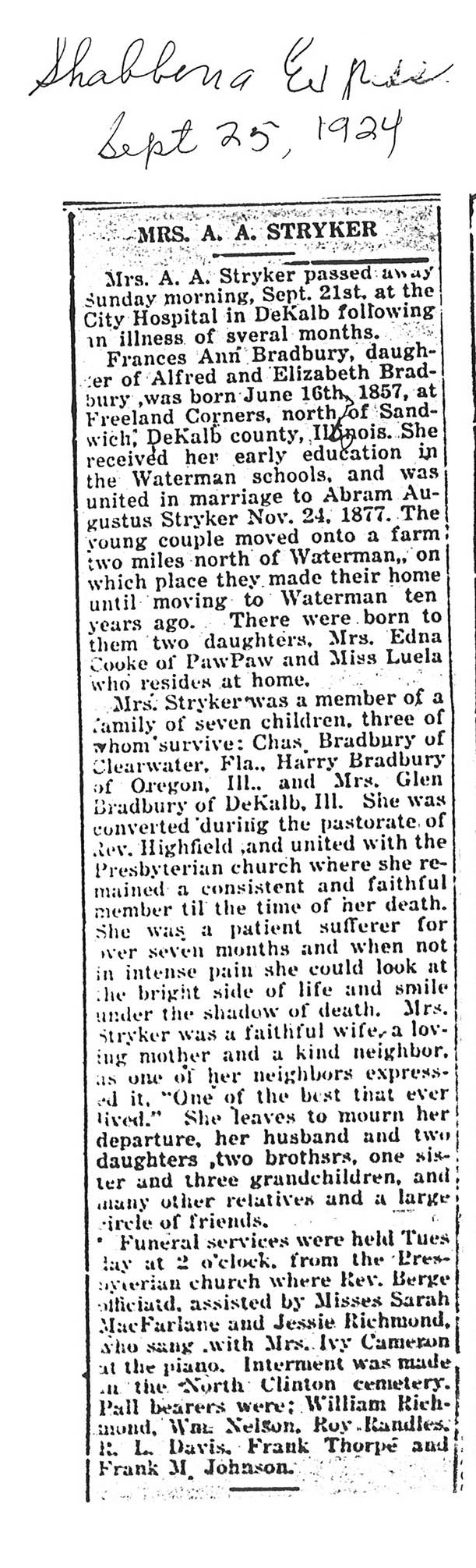 Deceased Sept. 21, 1924
