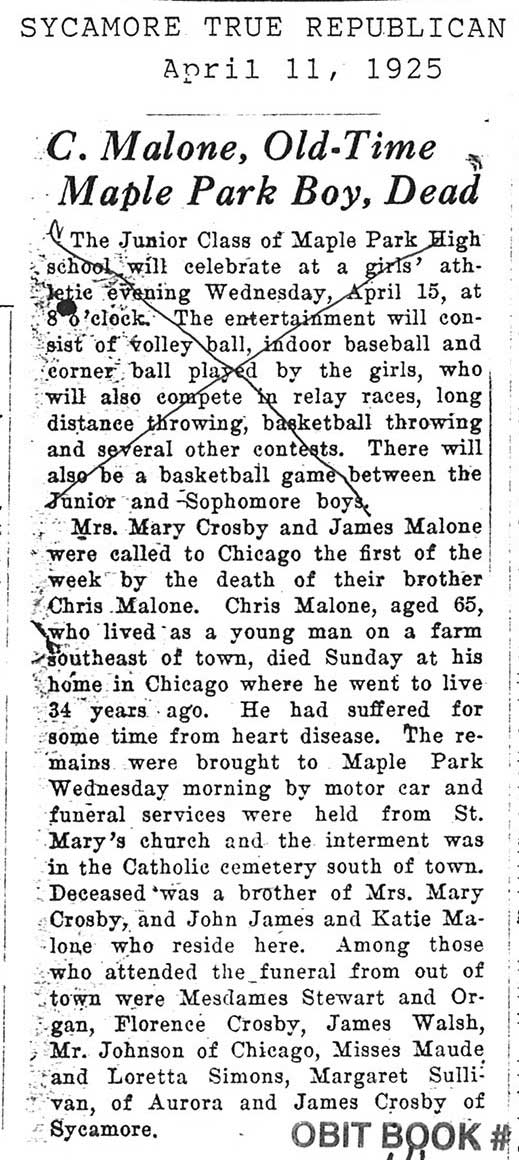 Buried in Somonauk Catholic Cemetery