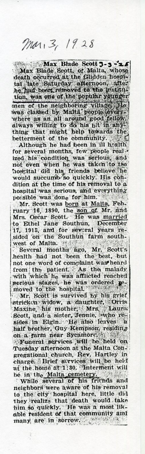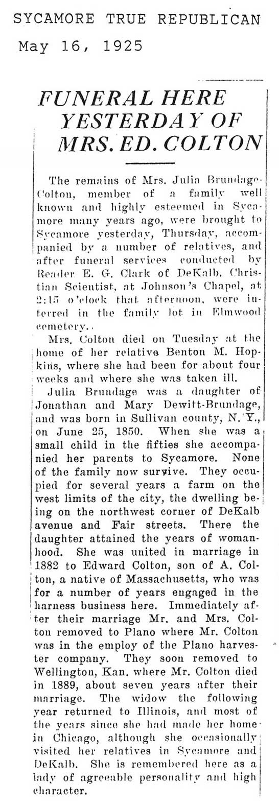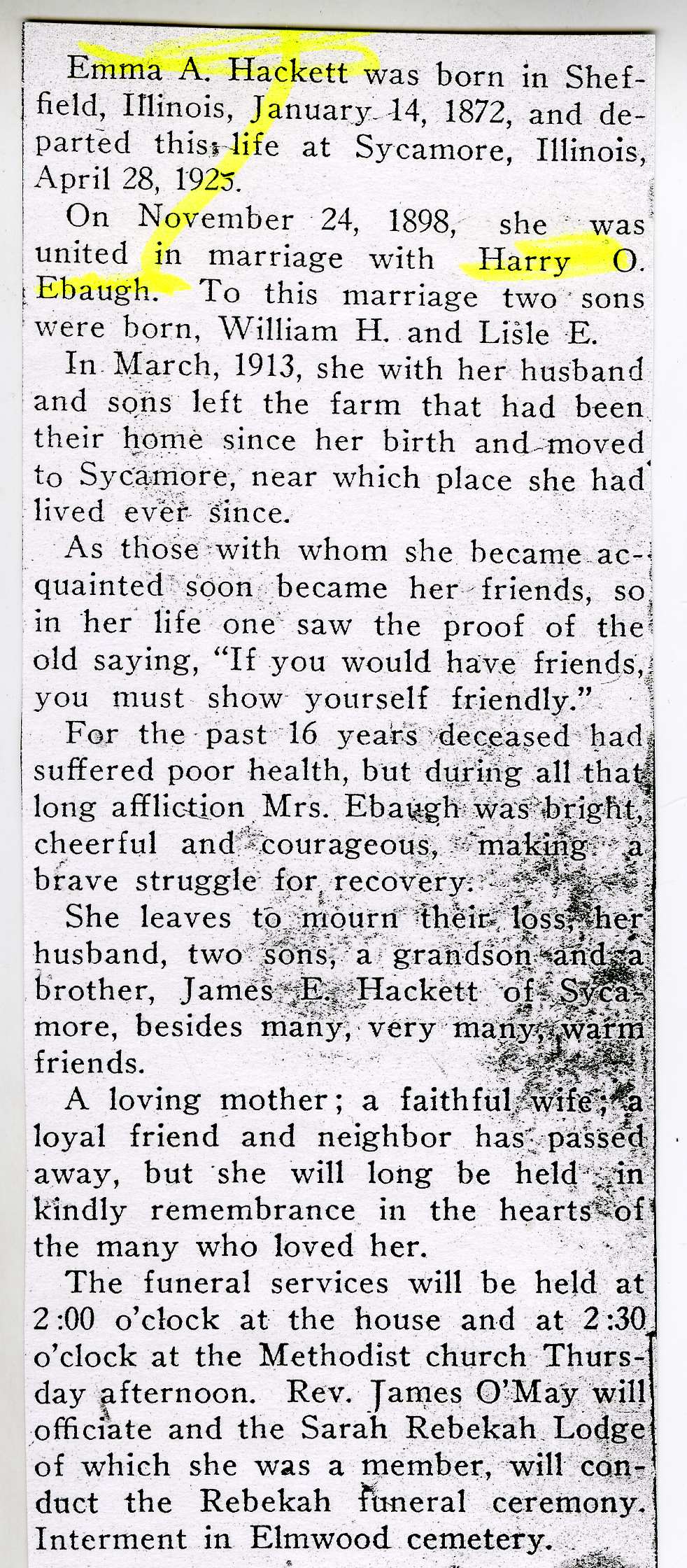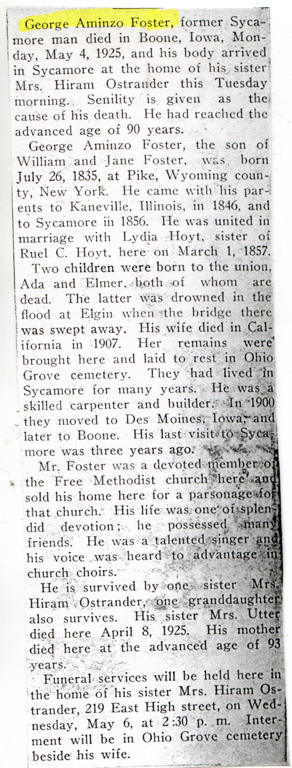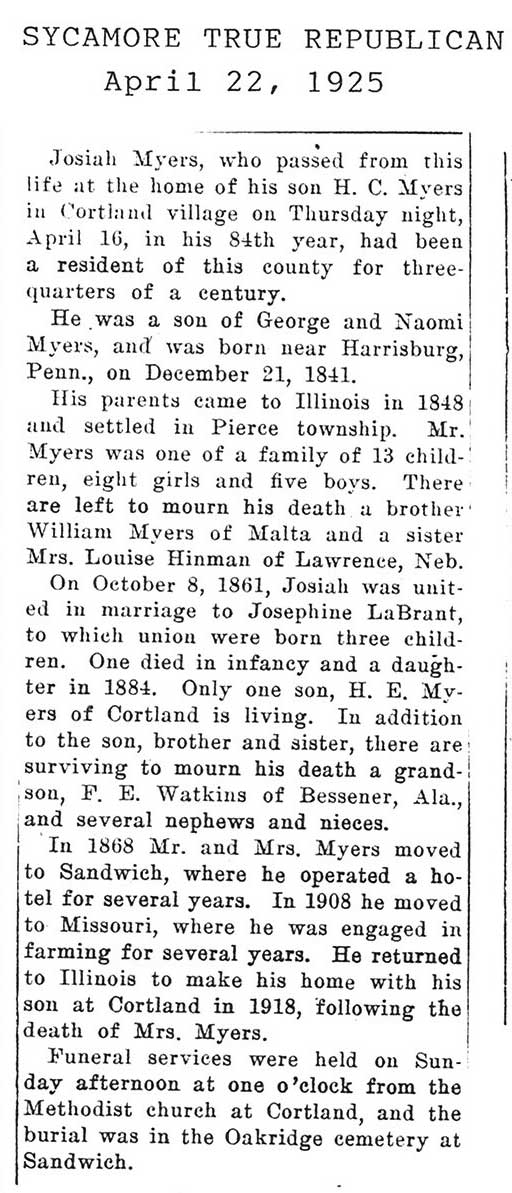 Buried in Genoa IL cemetery