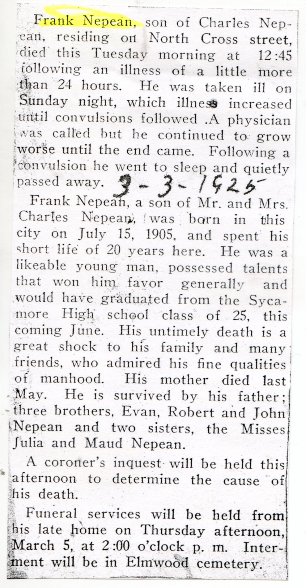Home » Obituaries from the year "1925" (253 matches)