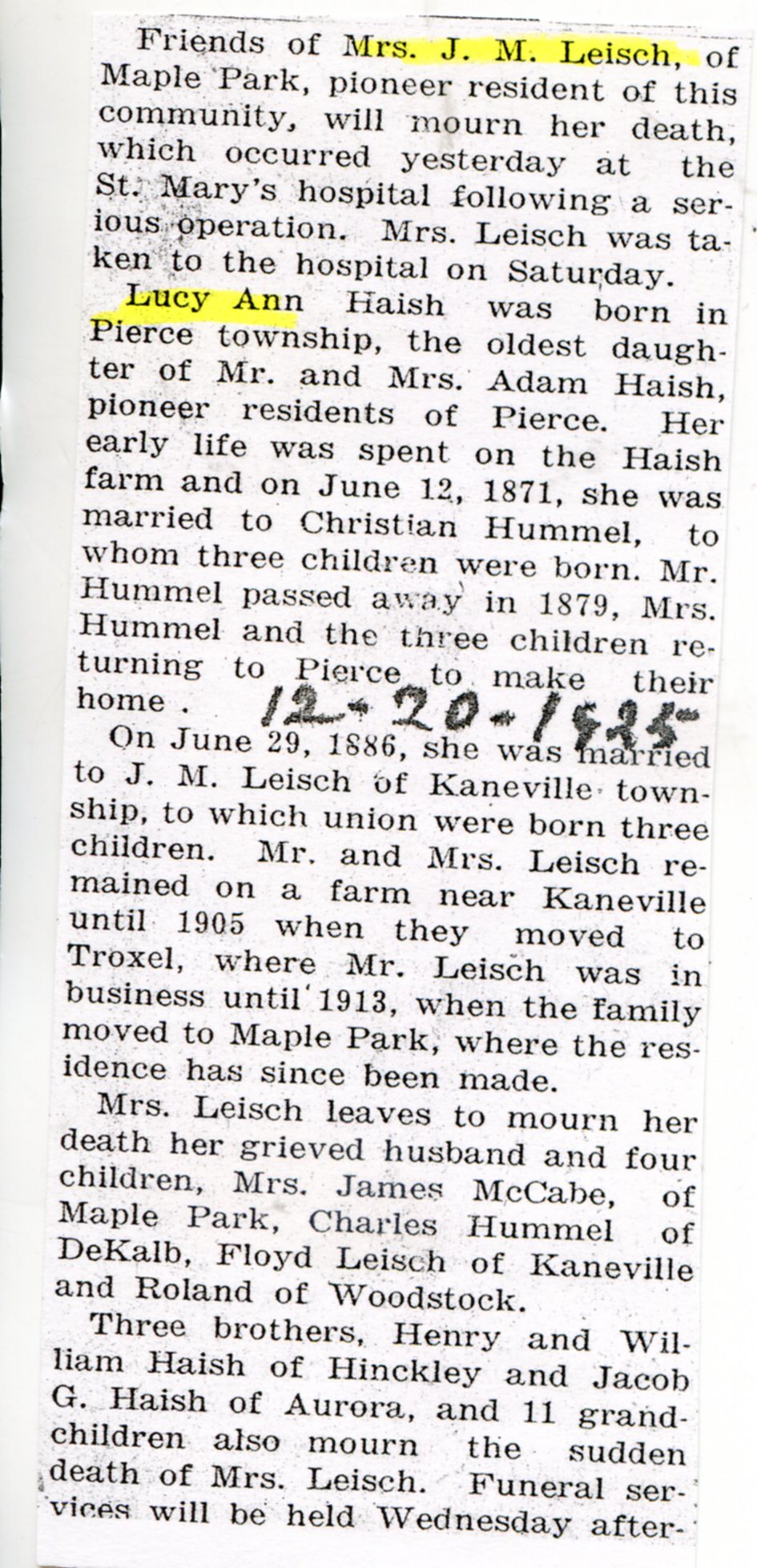 Buried in Mt. Hope Cemetery - Chicago, IL