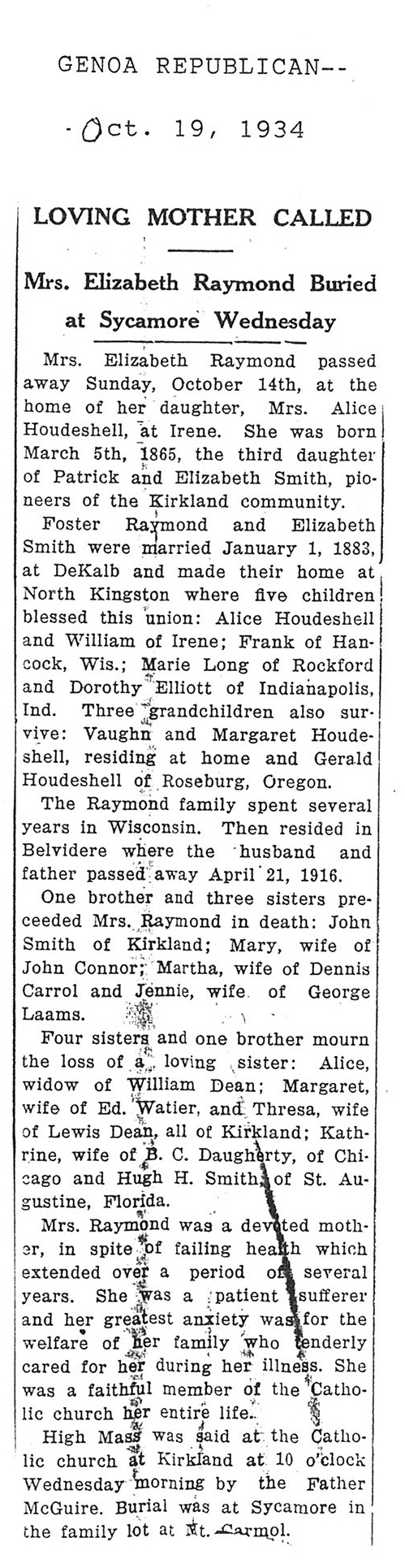Husband is Henry Foster Raymond and he is buried in North Kingston
