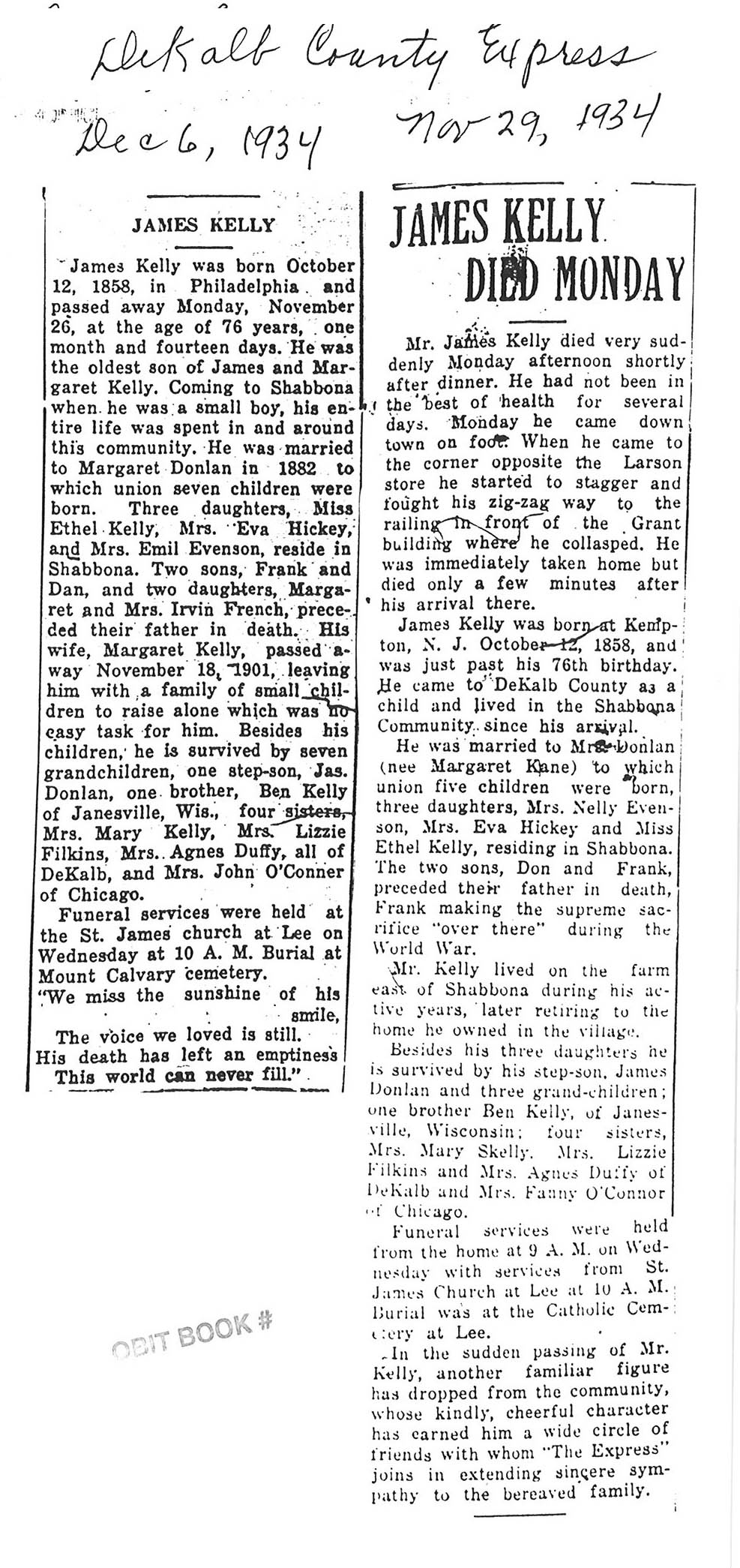 DOB 21 August 1874