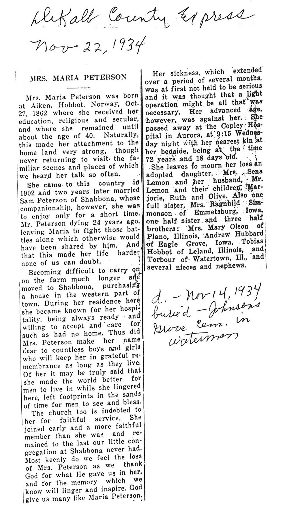 DOB October 27, 1862 in Norway