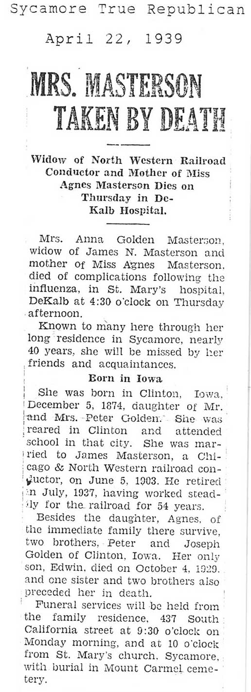 Maiden name - Golden obit YOB = 1874 headstone YOB = 1875
