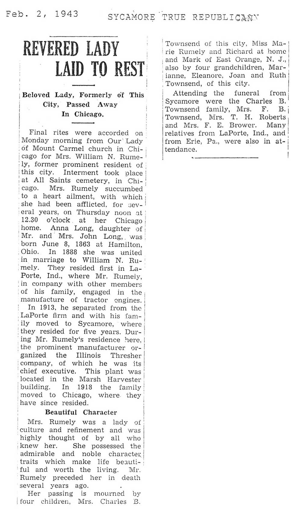 Deceased Feb. 1, 1943