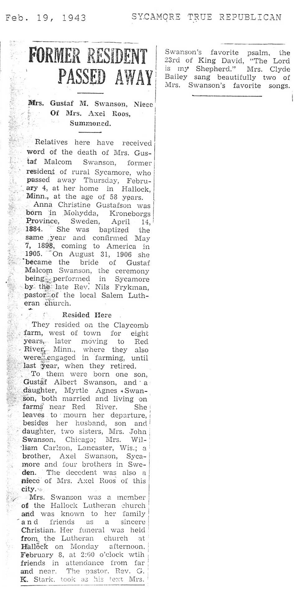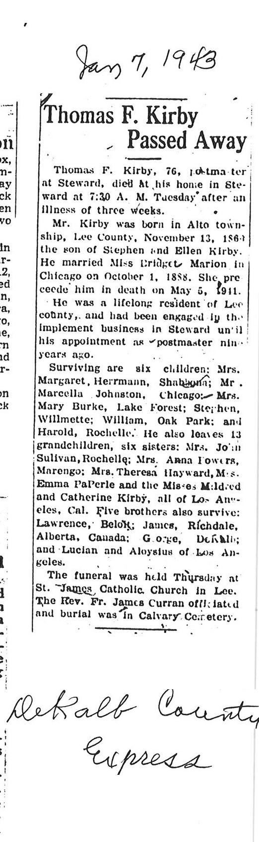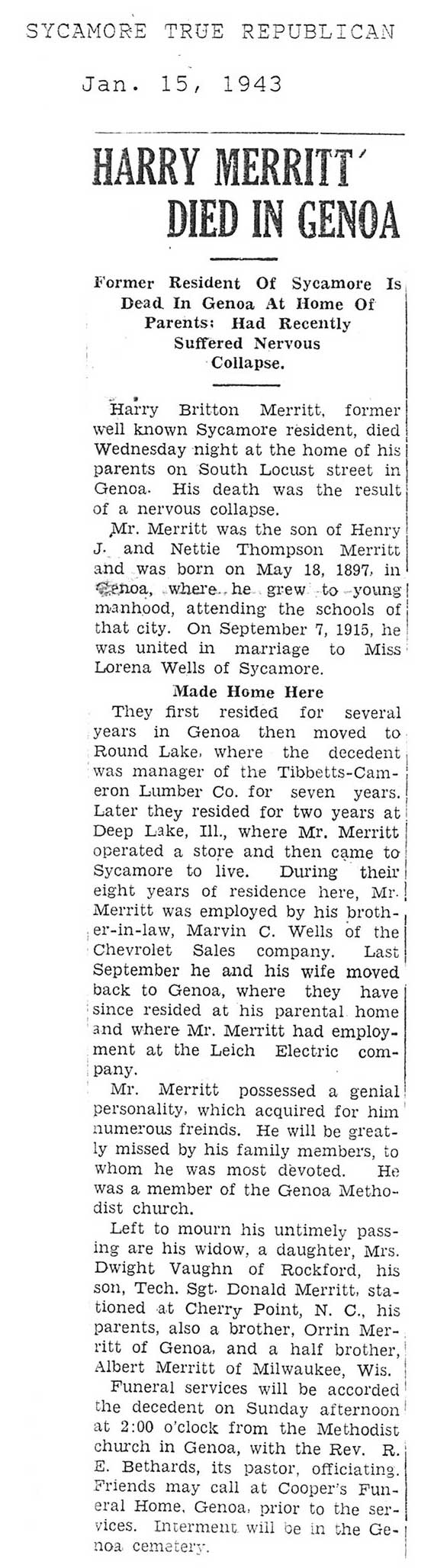 Deceased Jan. 2, 1943