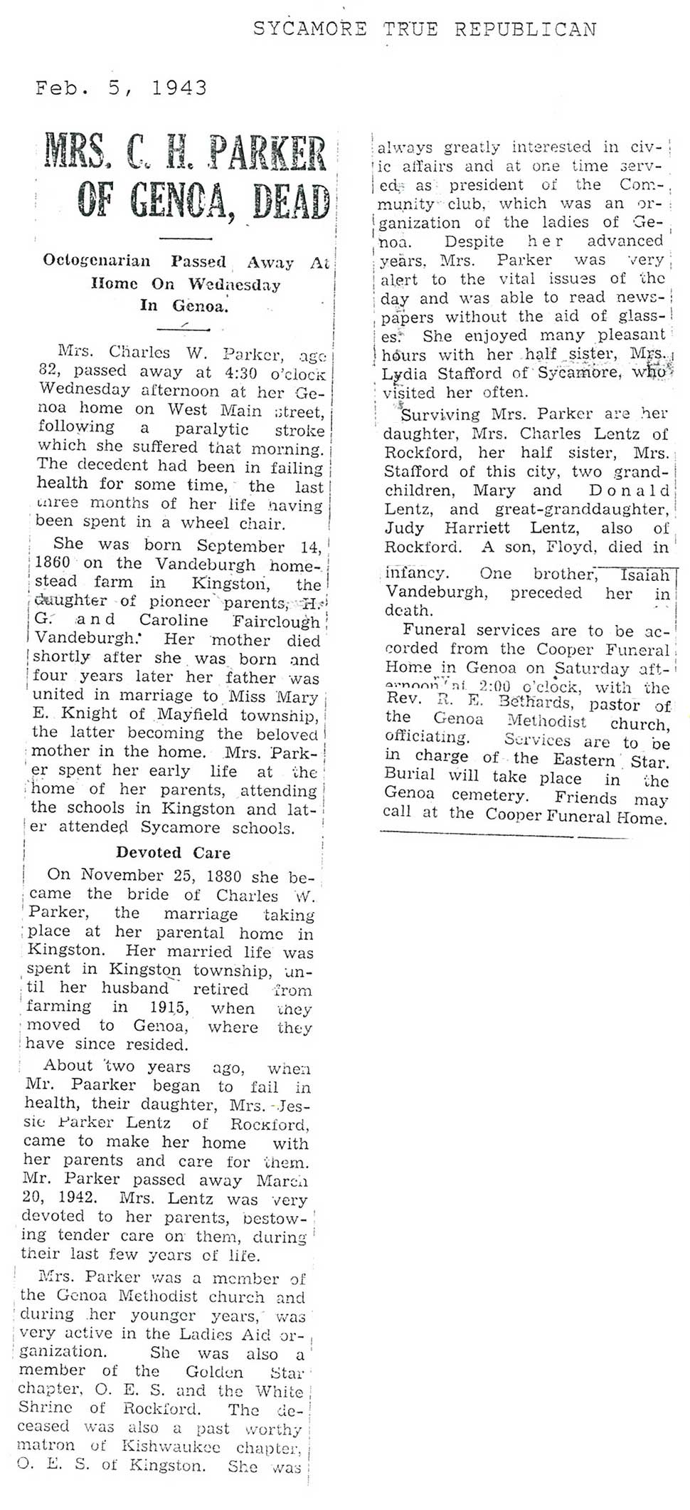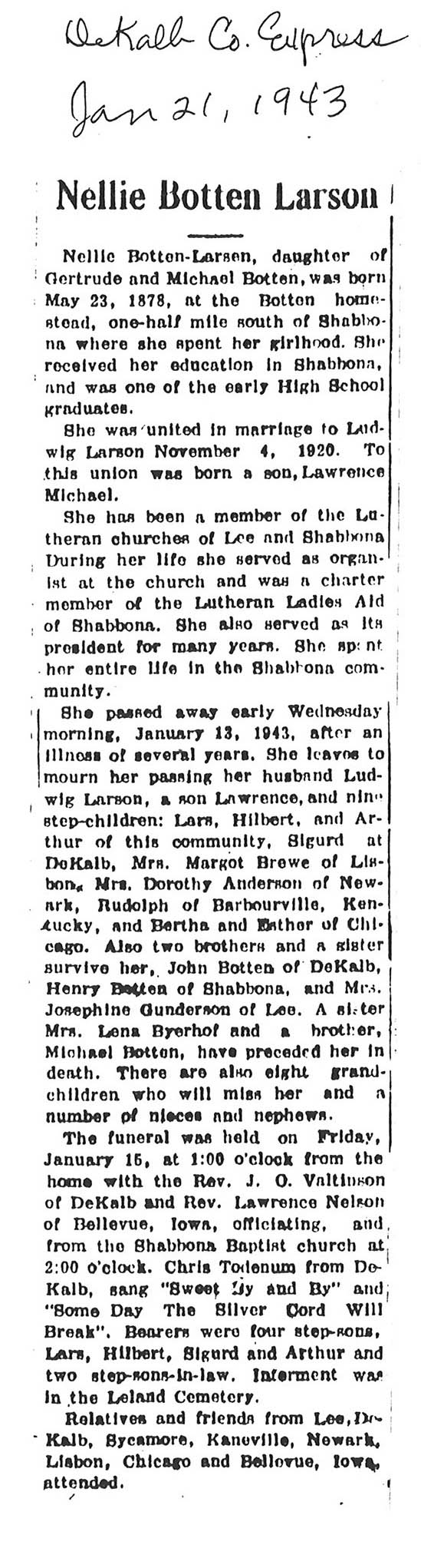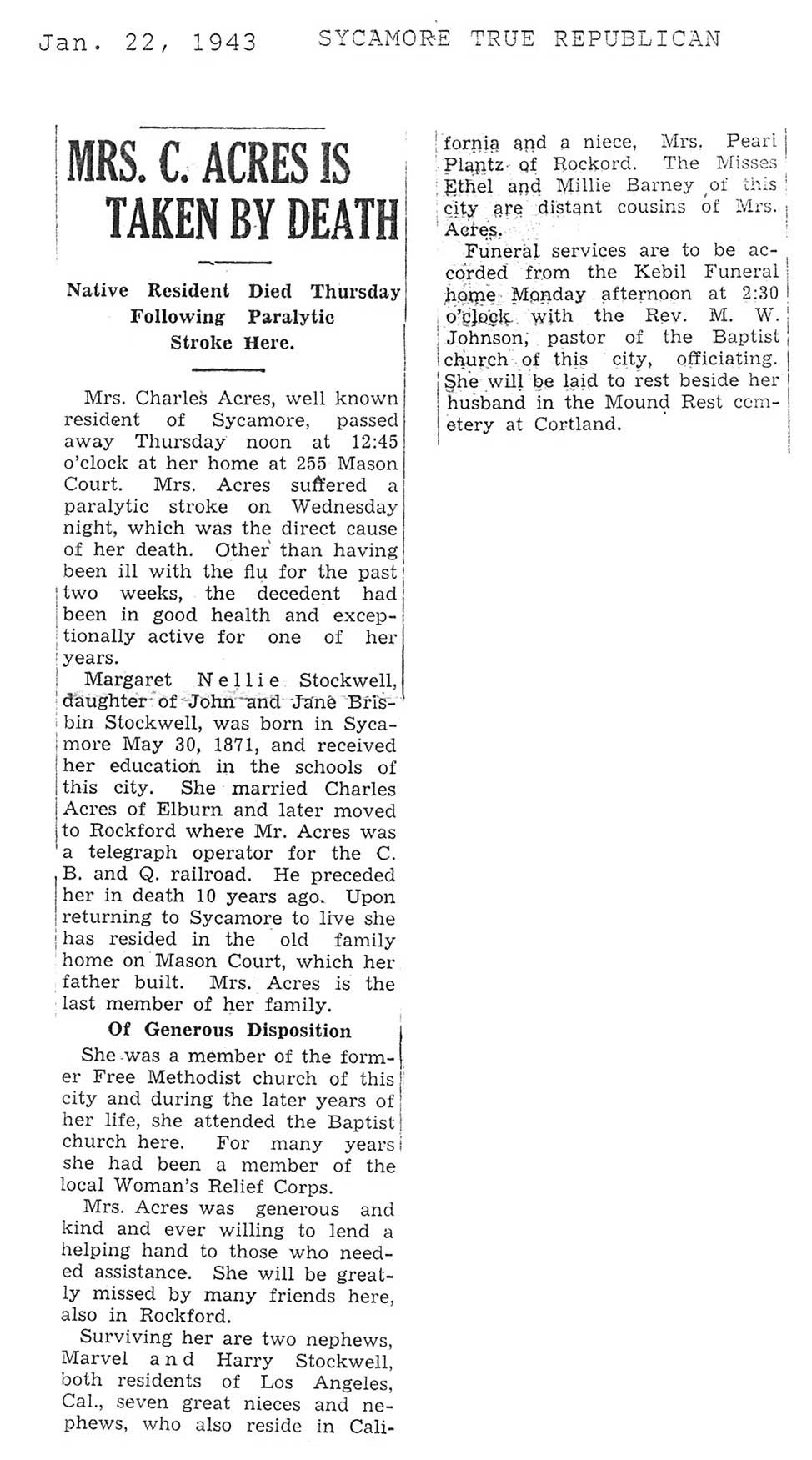 Deceased Jan. 2, 1943