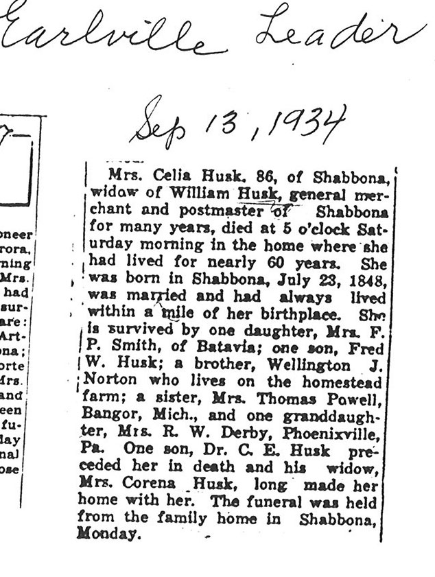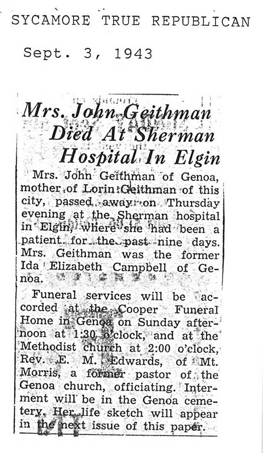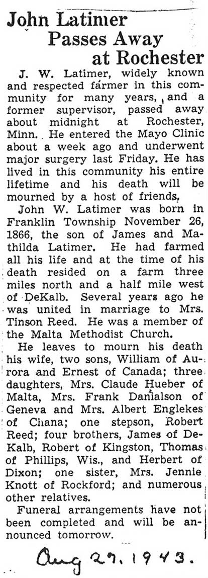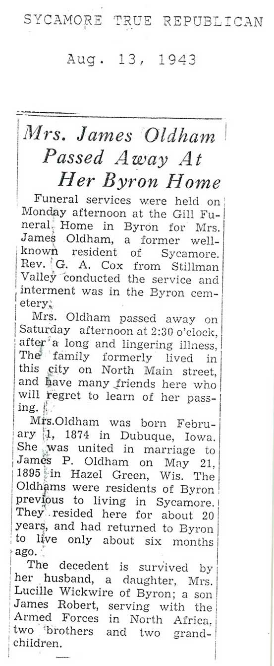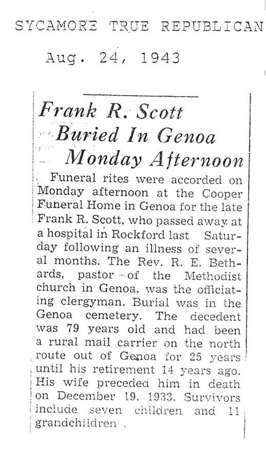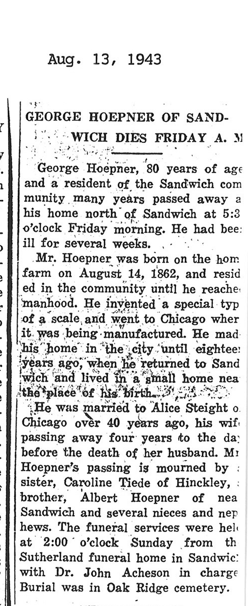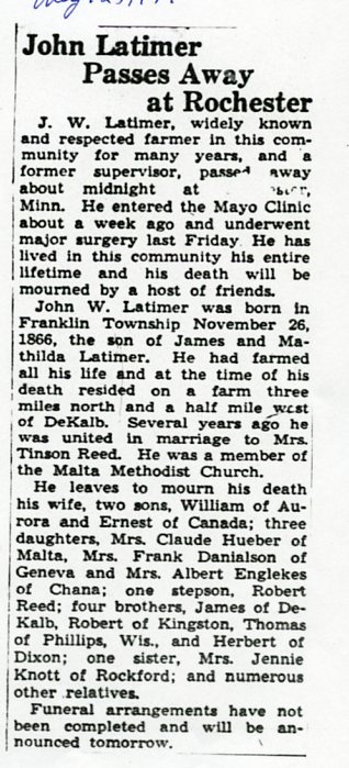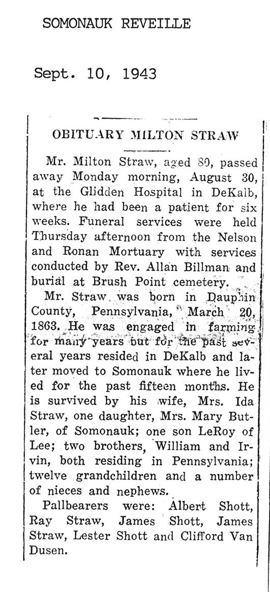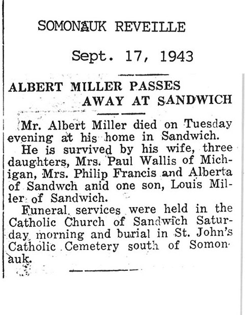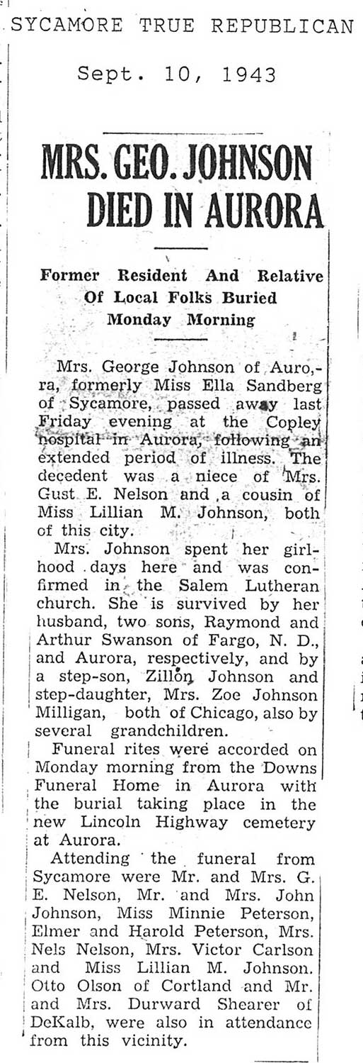 burial was probably in St. Johns cemetery south of Somonauk