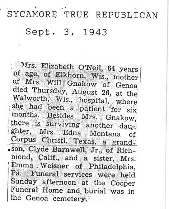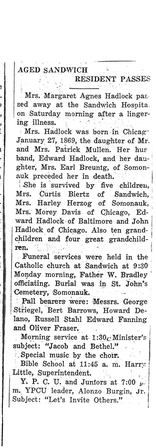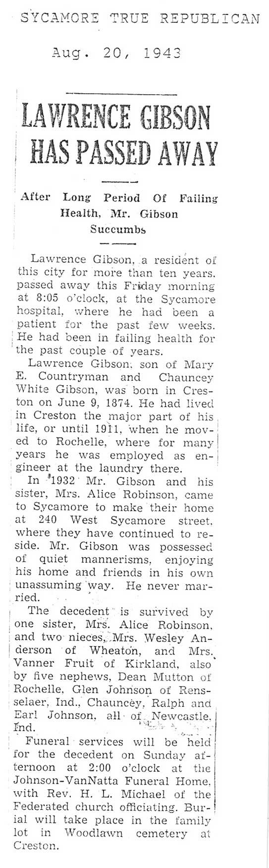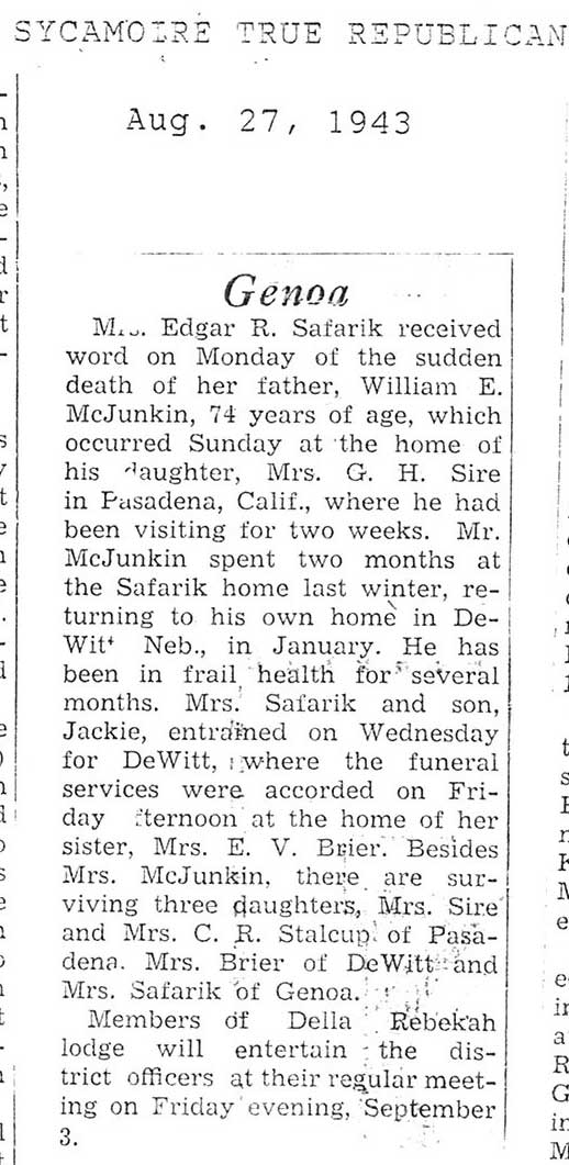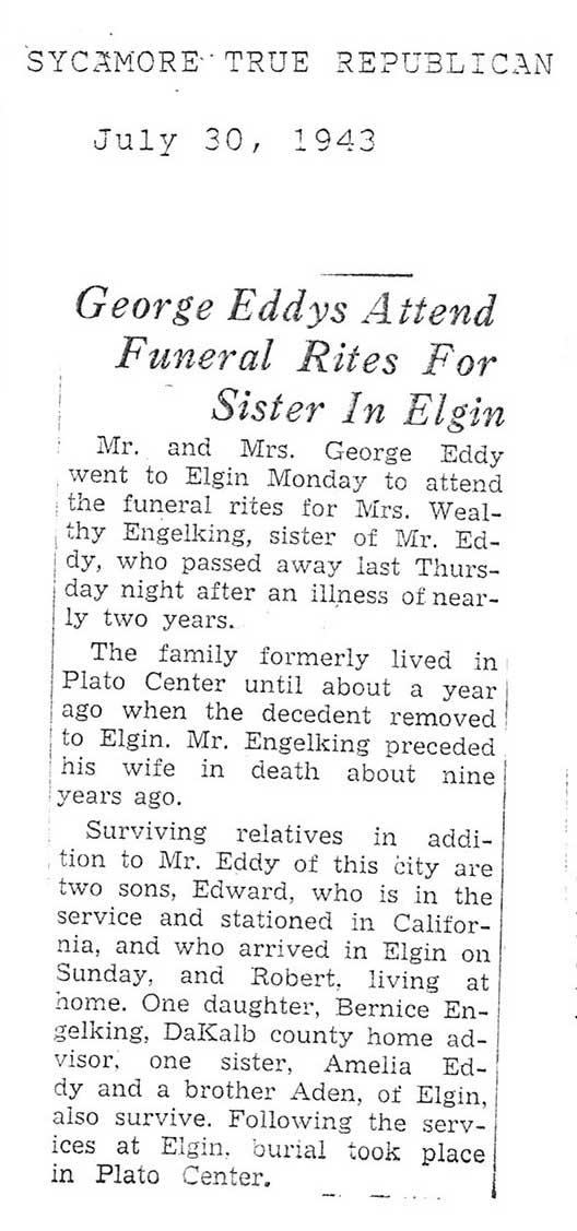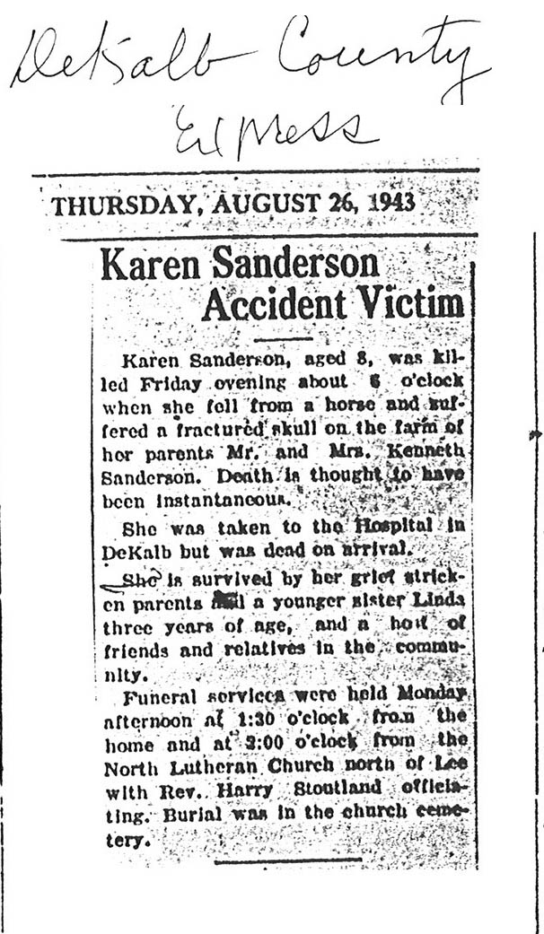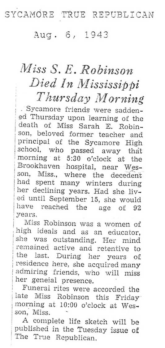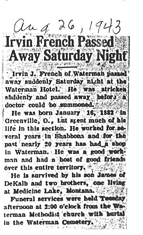 burial was probably in St. Johns cemetery south of Somonauk