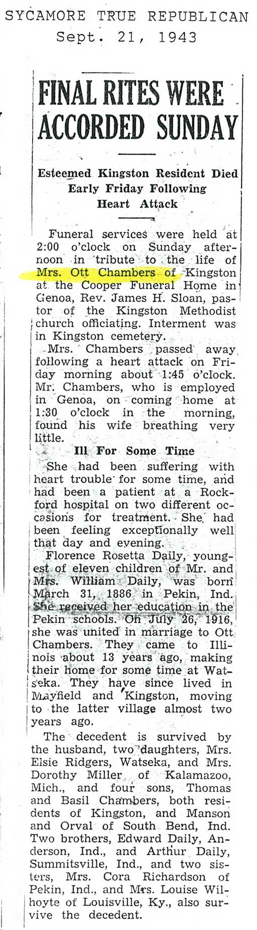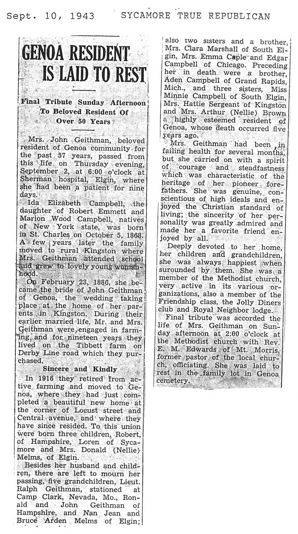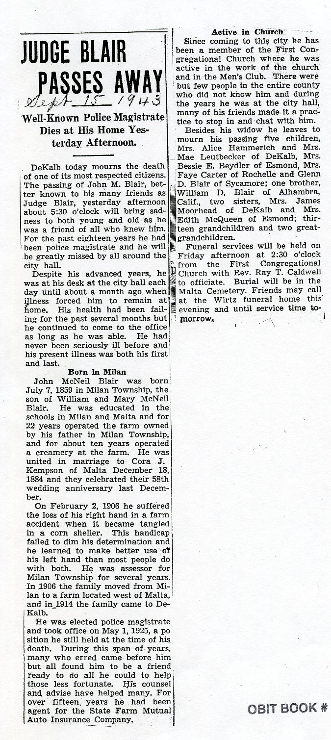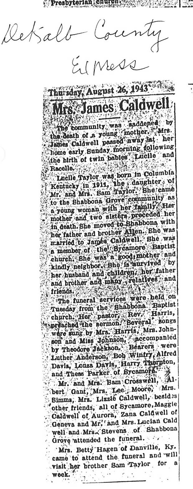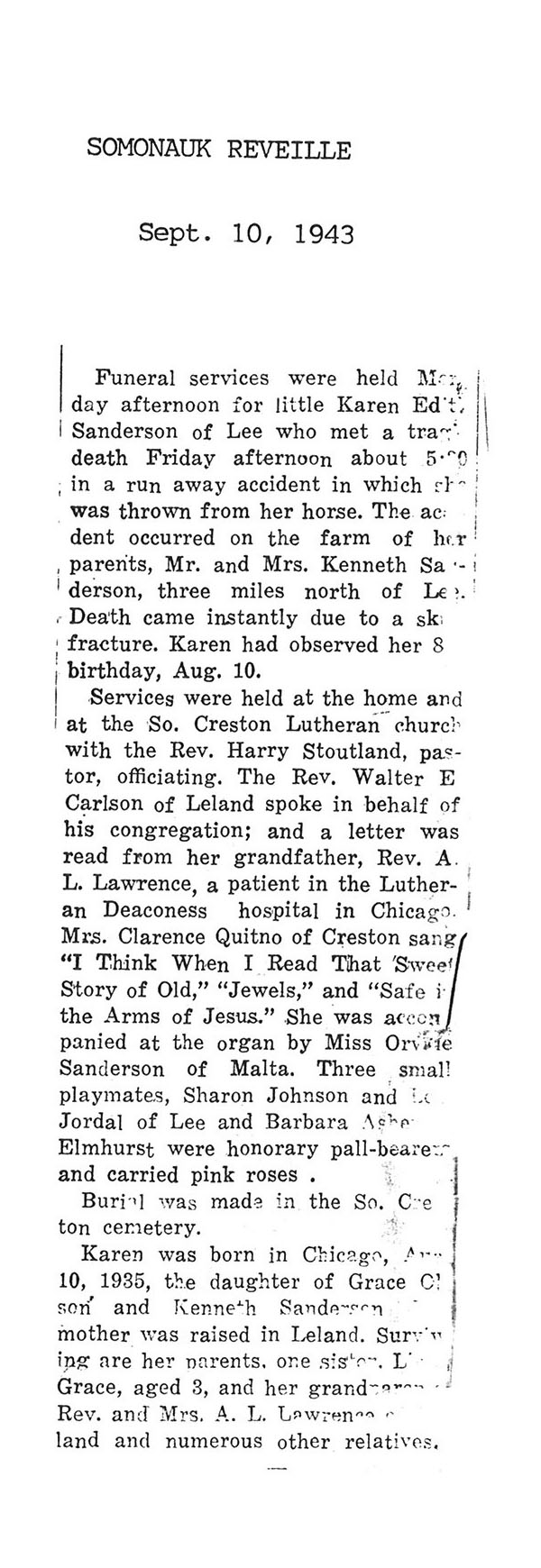 burial was probably in St. Johns cemetery south of Somonauk