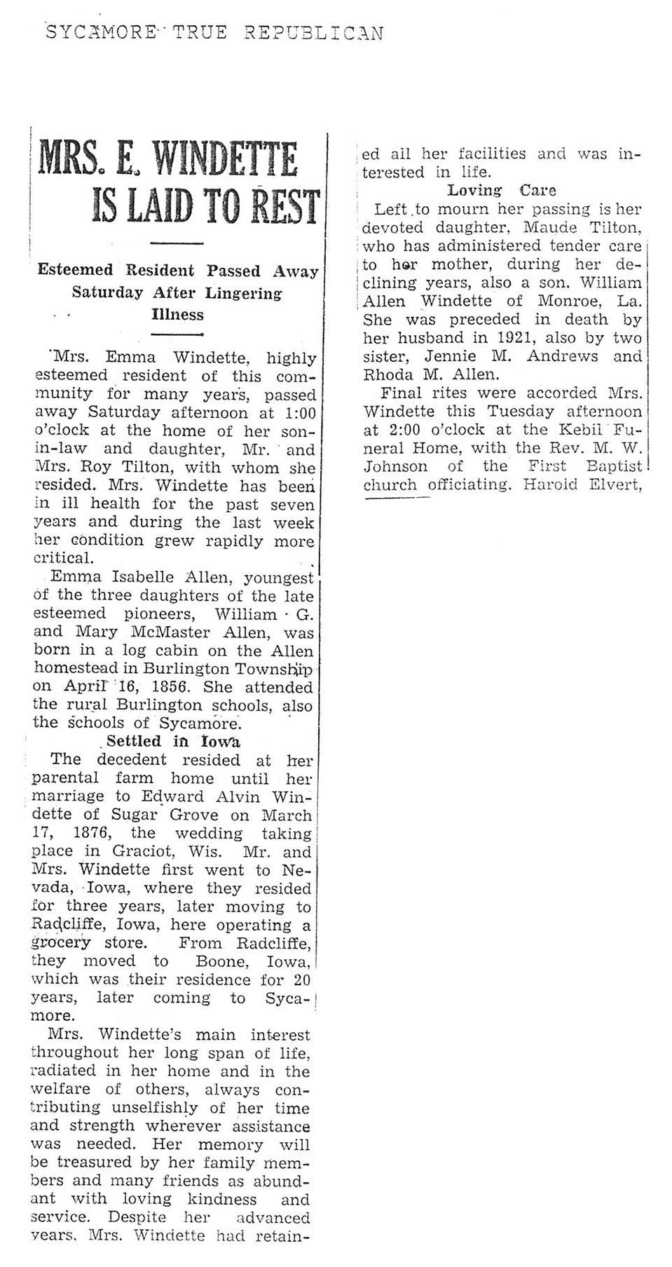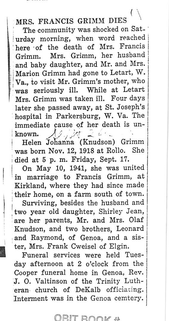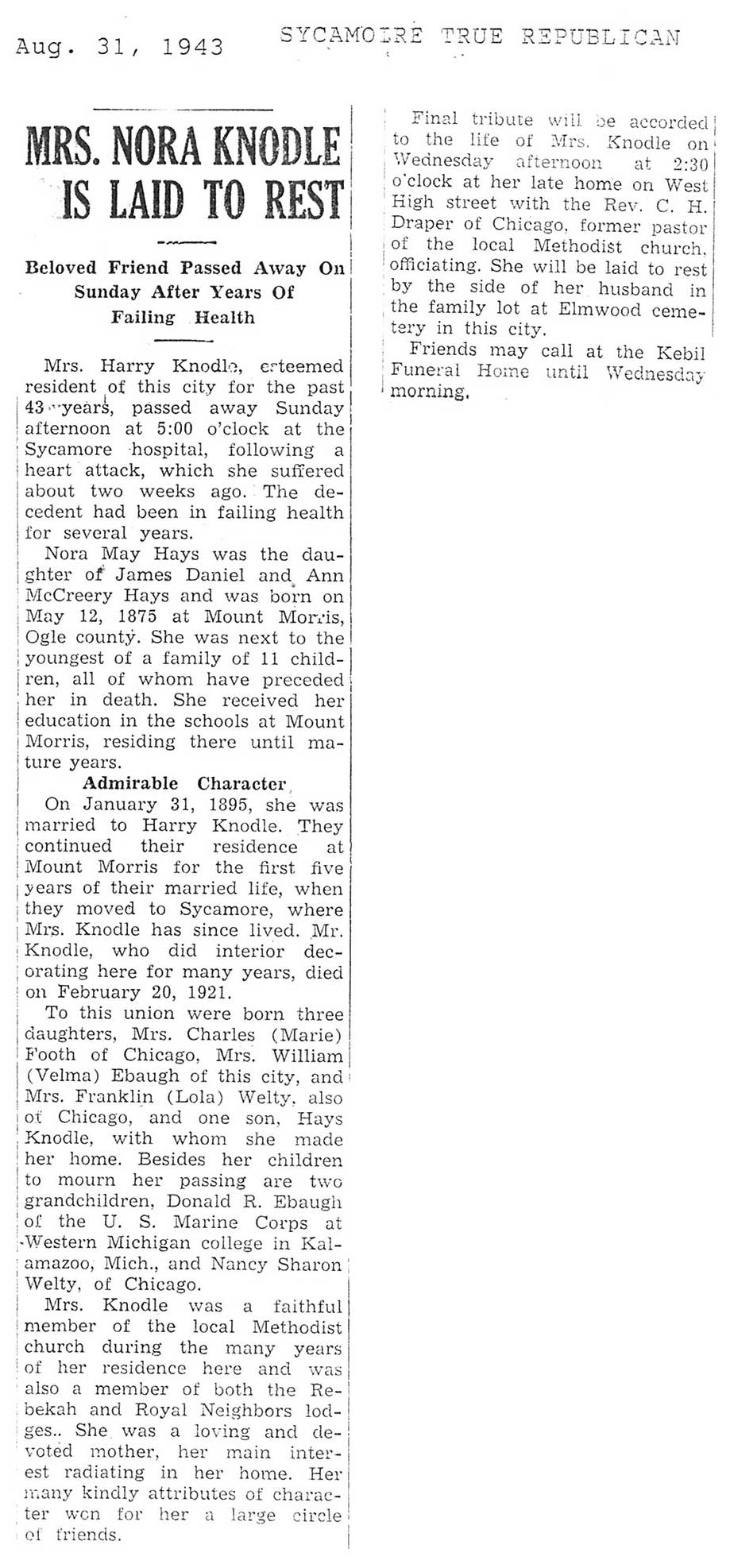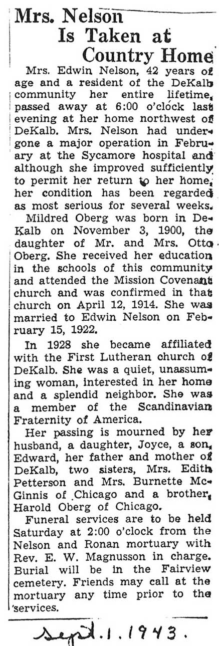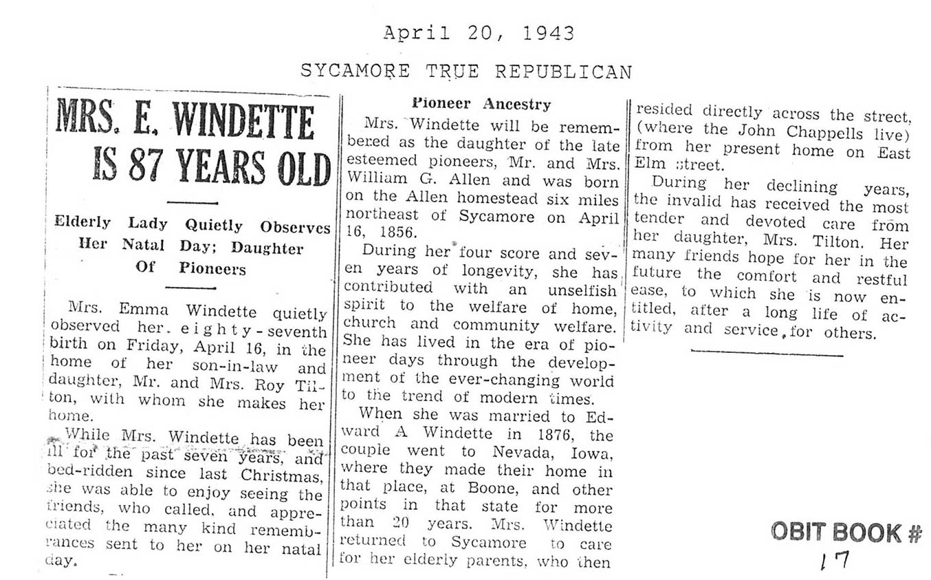 burial was probably in St. Johns cemetery south of Somonauk