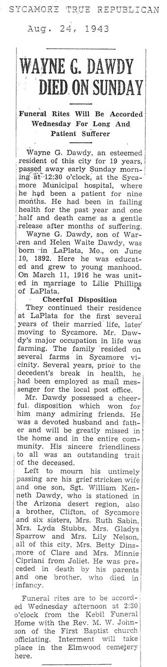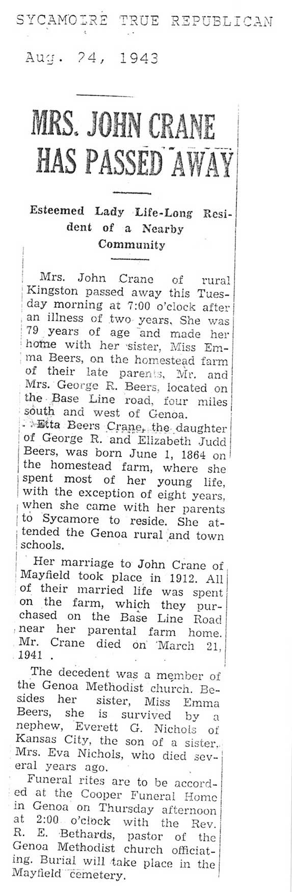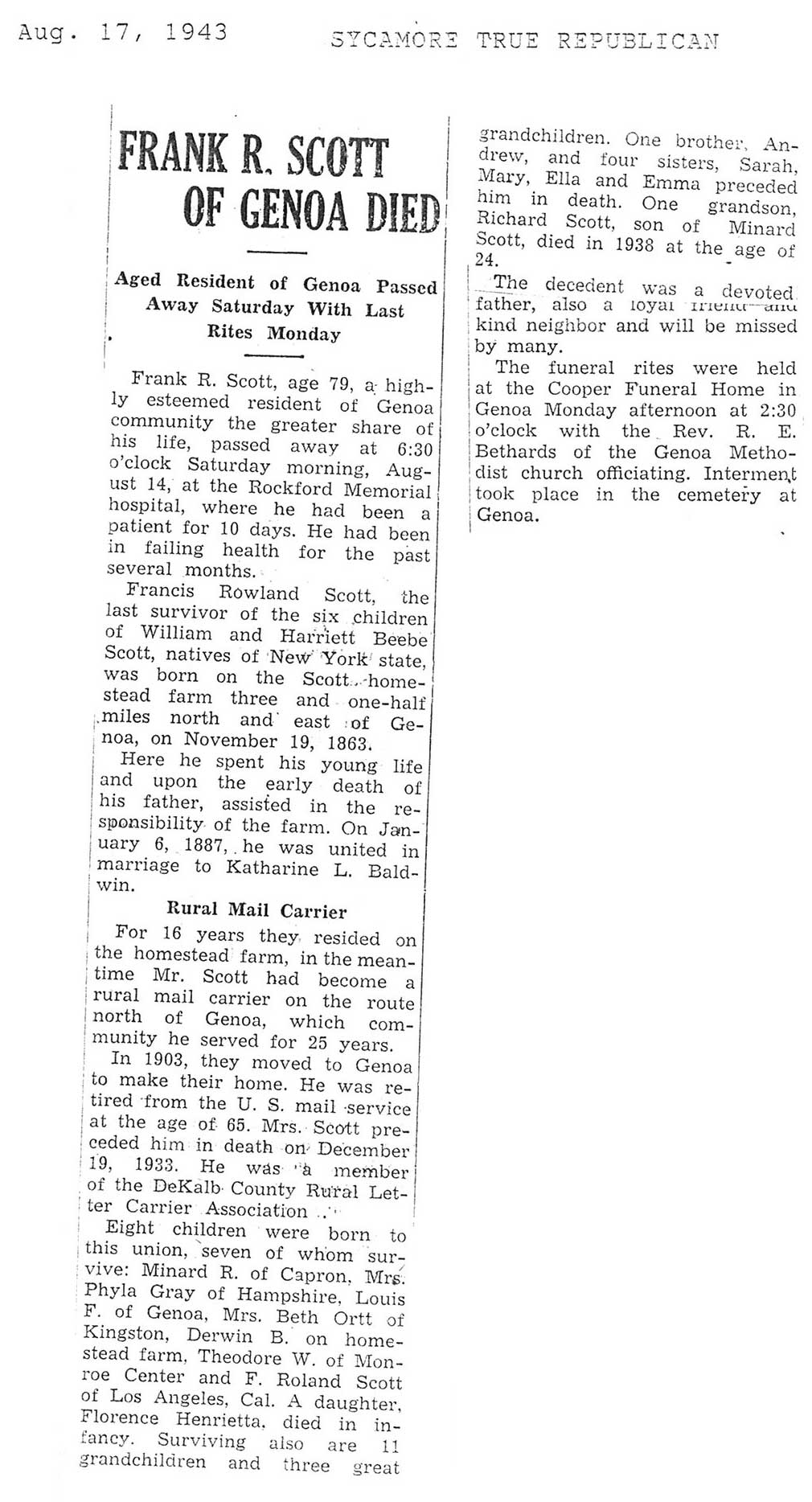 Deceased July 28, 1943