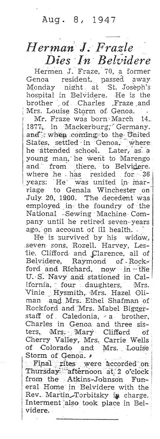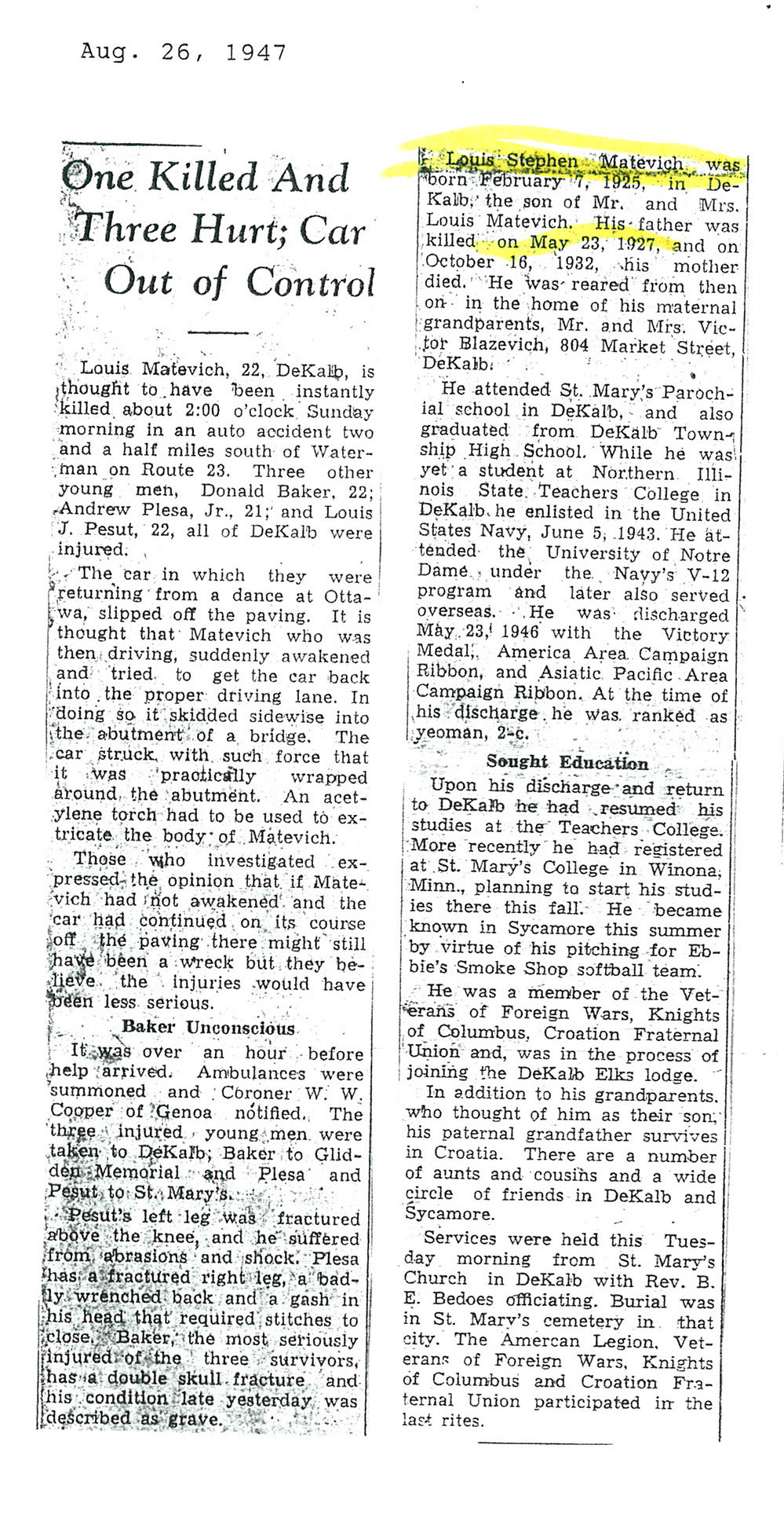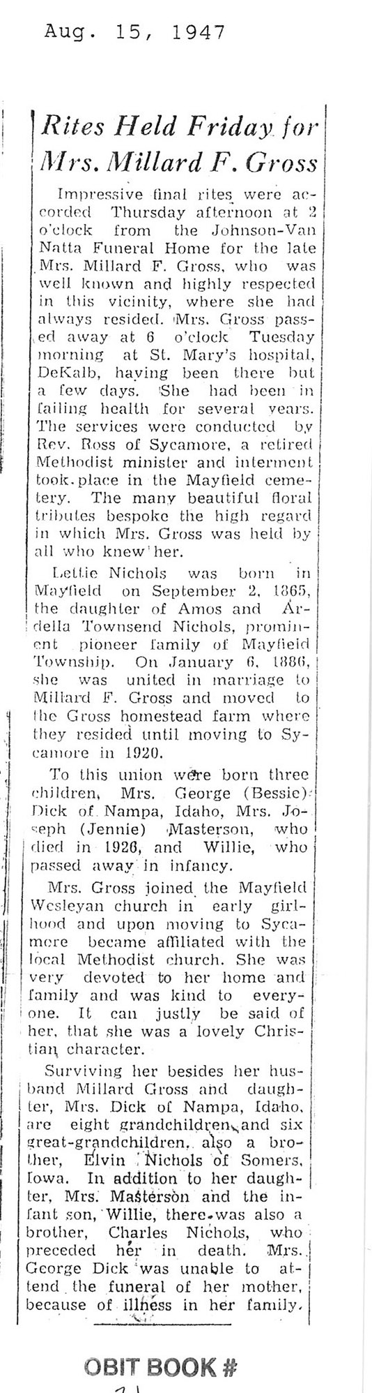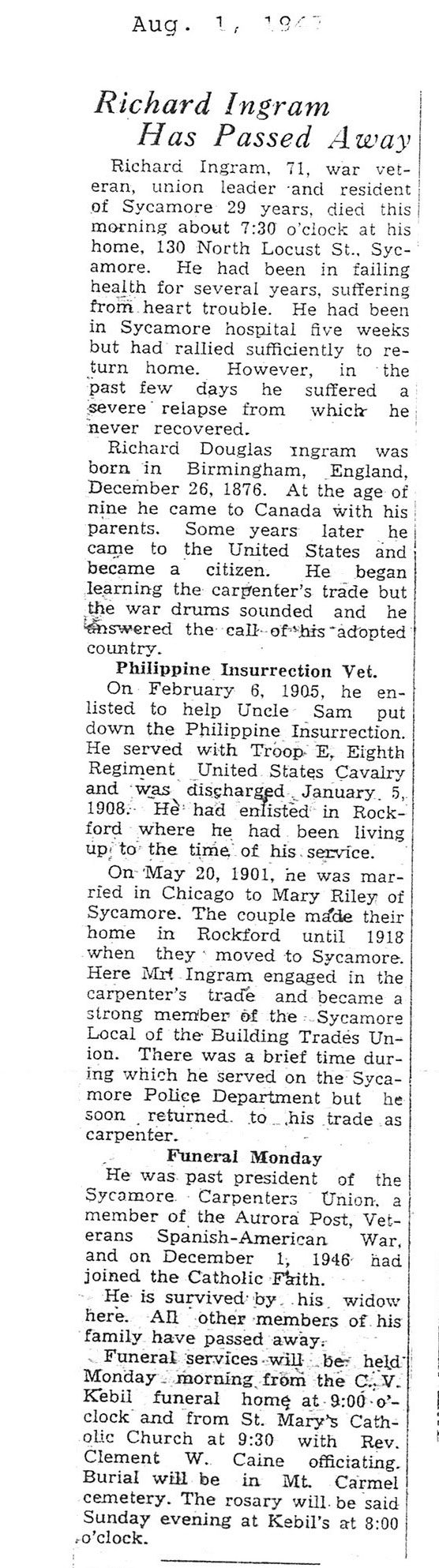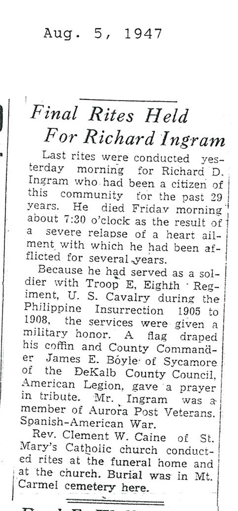 1st obit has Richard buried in Mound Rest-2nd has him in Mt. Carmel which is correct.