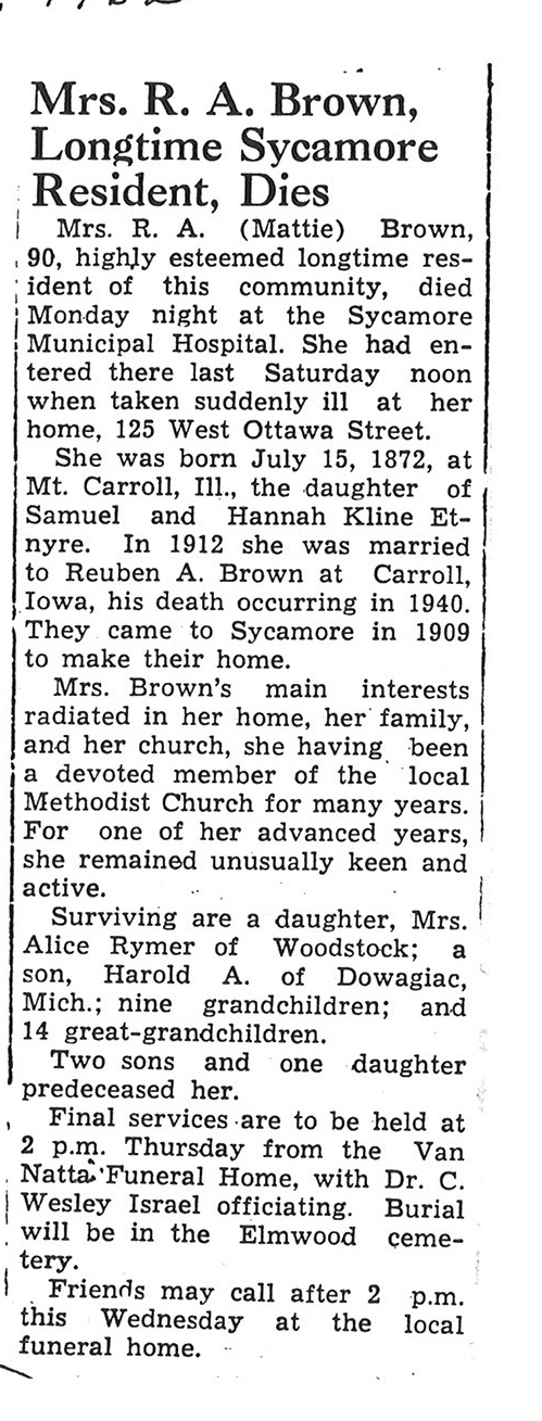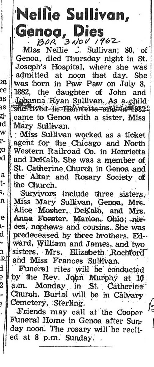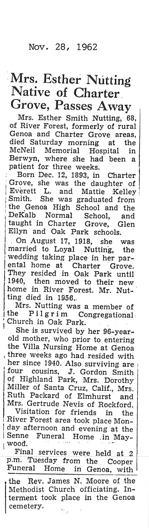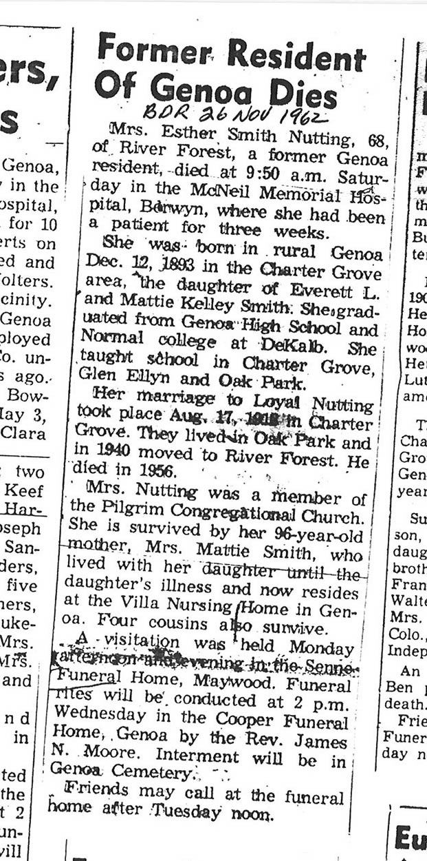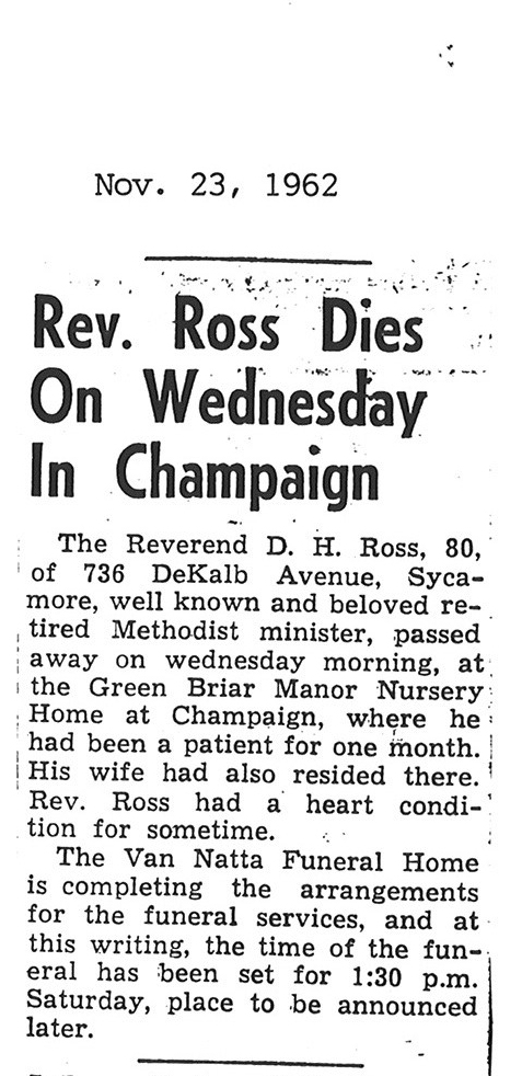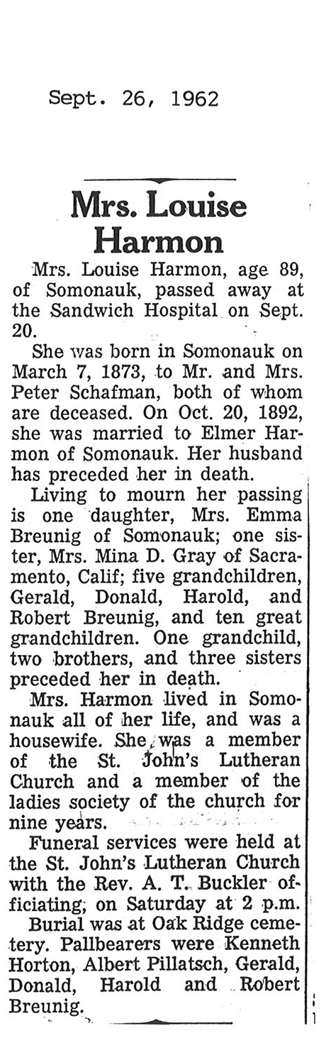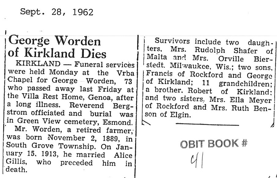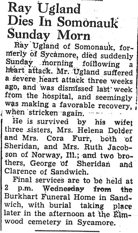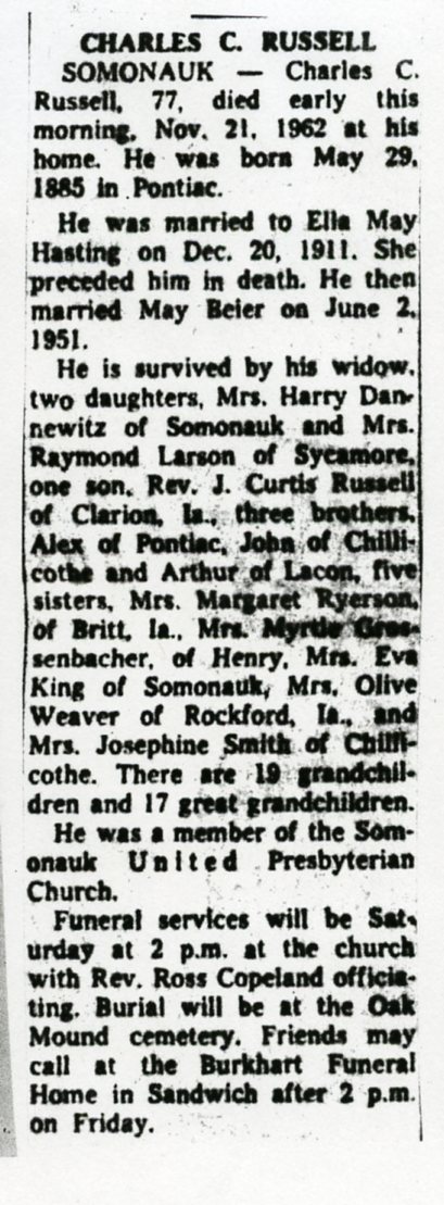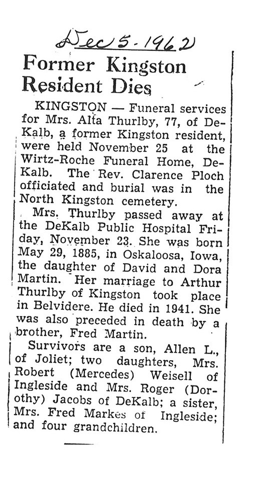 Sept 27, 1962 obit from Sandwich Free press