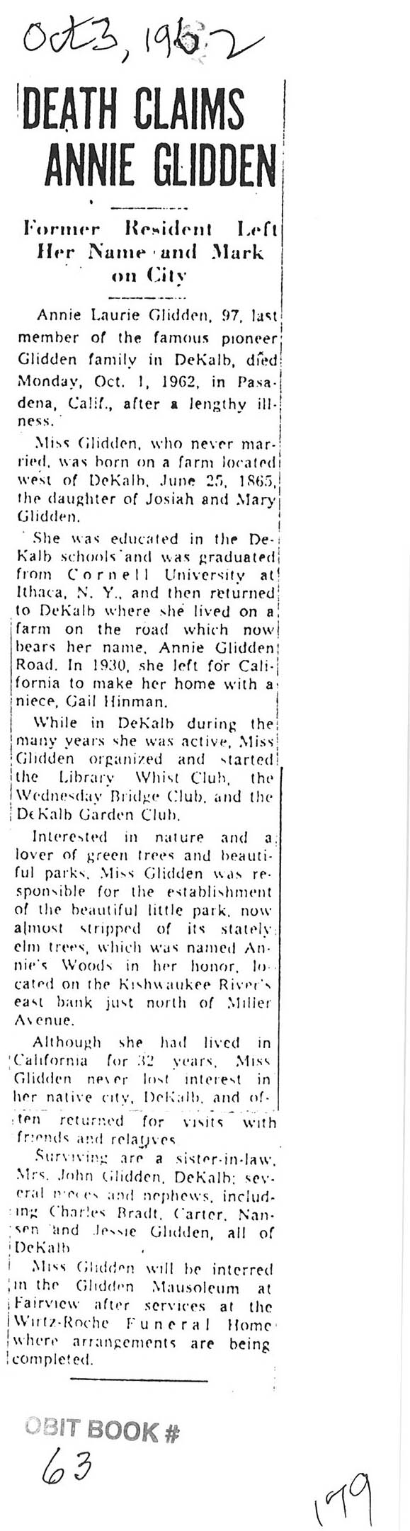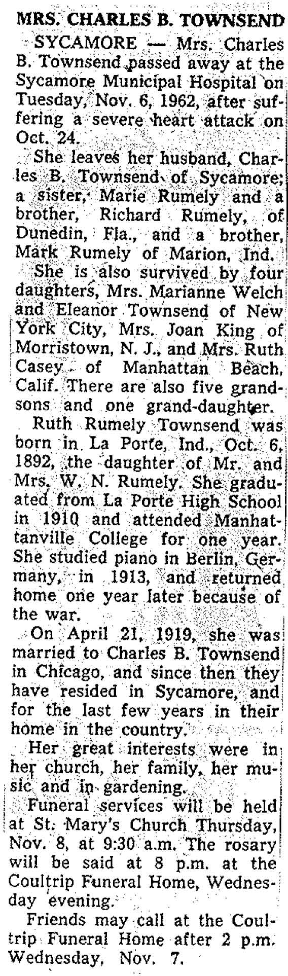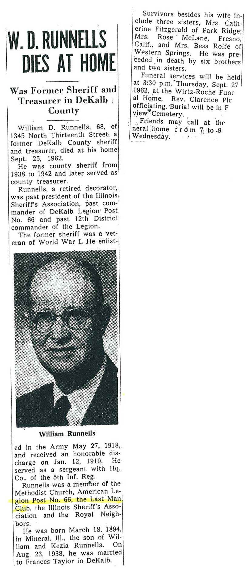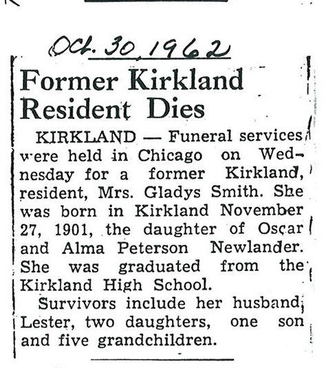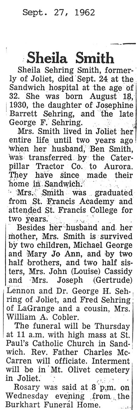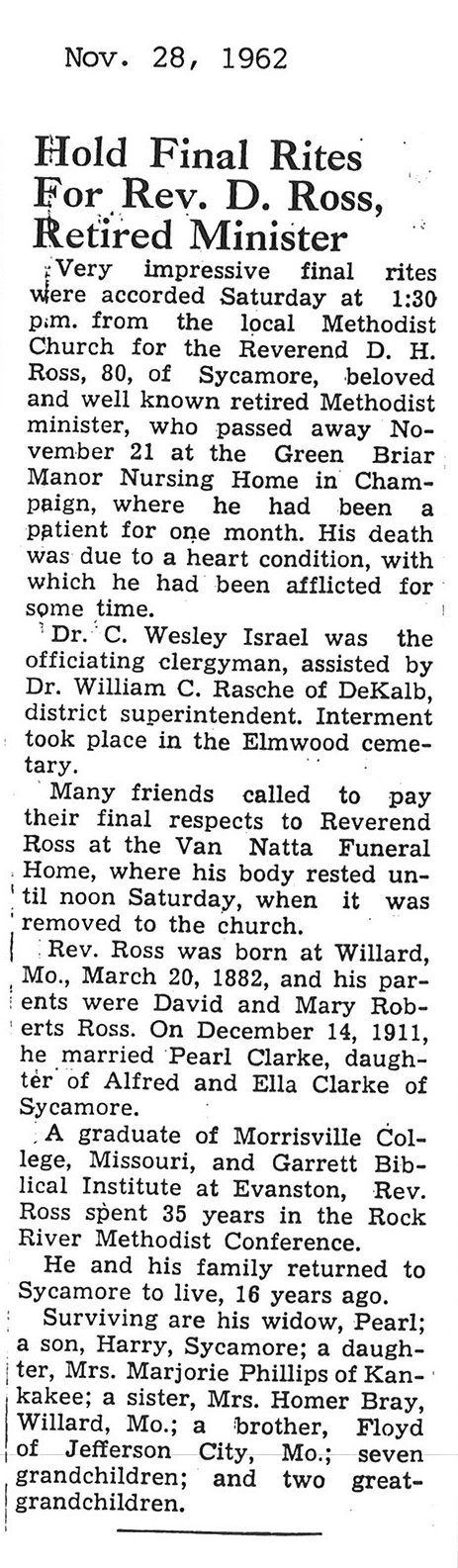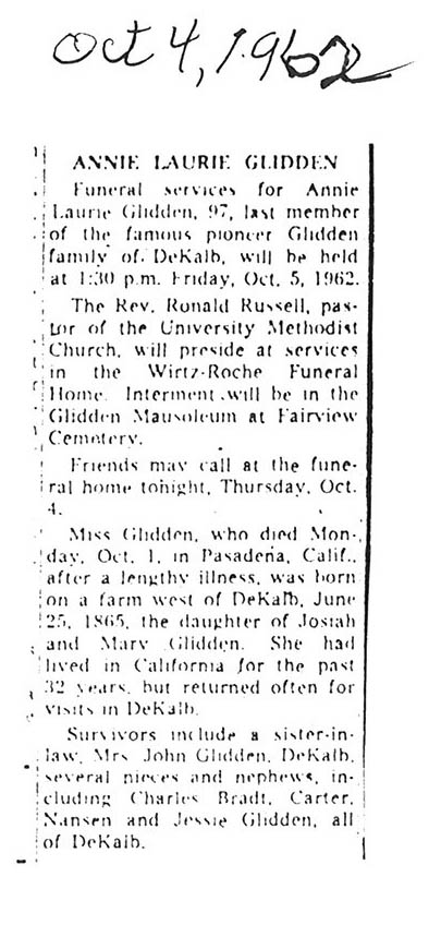 Sept 27, 1962 obit from Sandwich Free press
