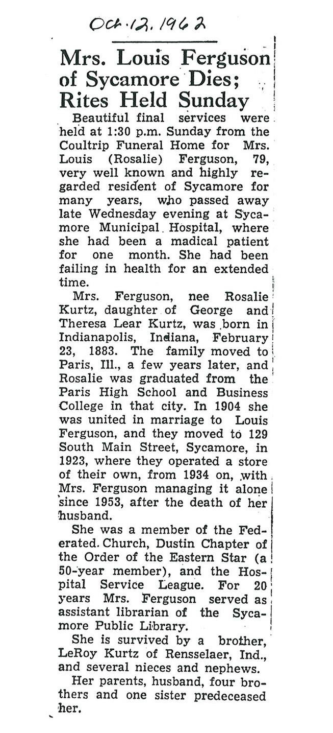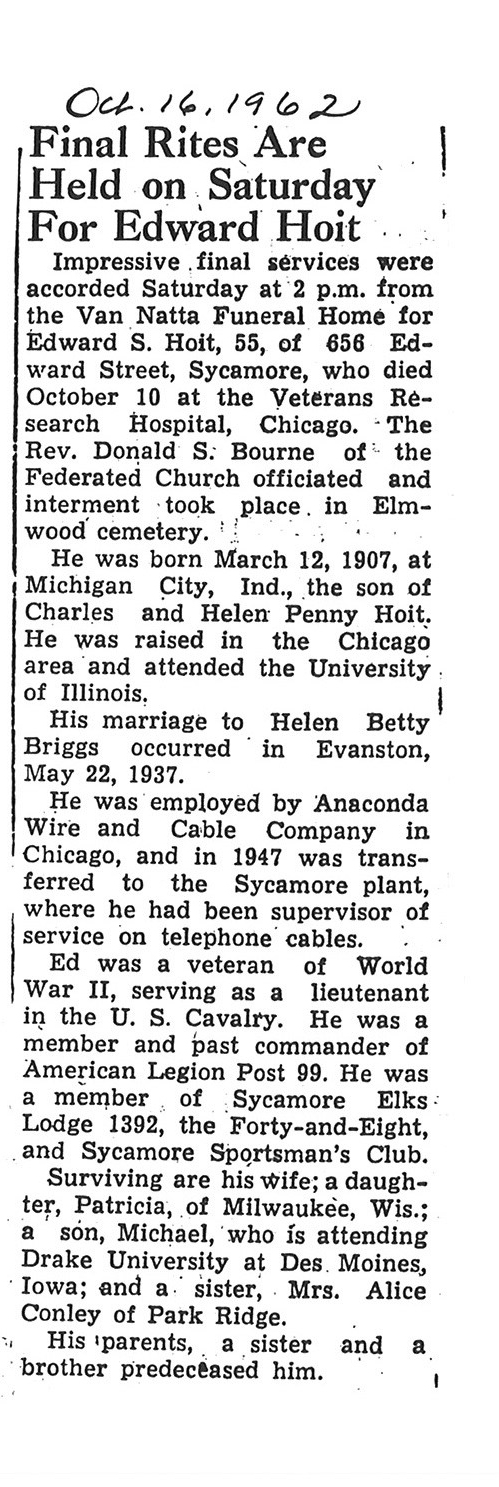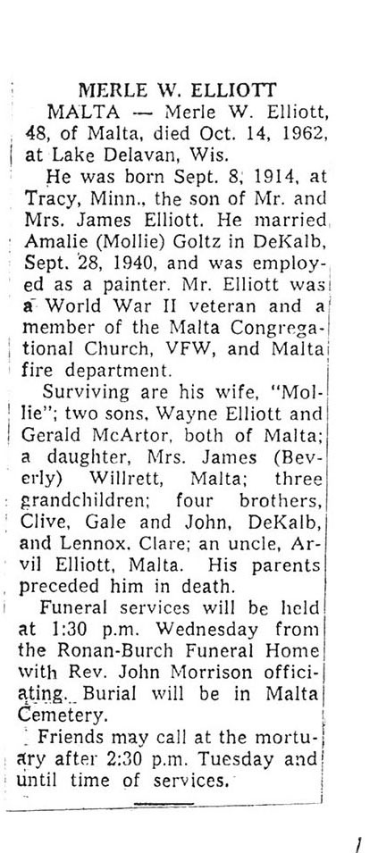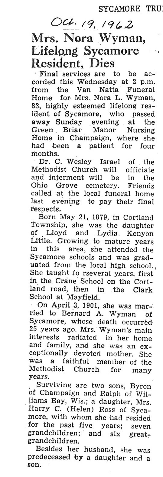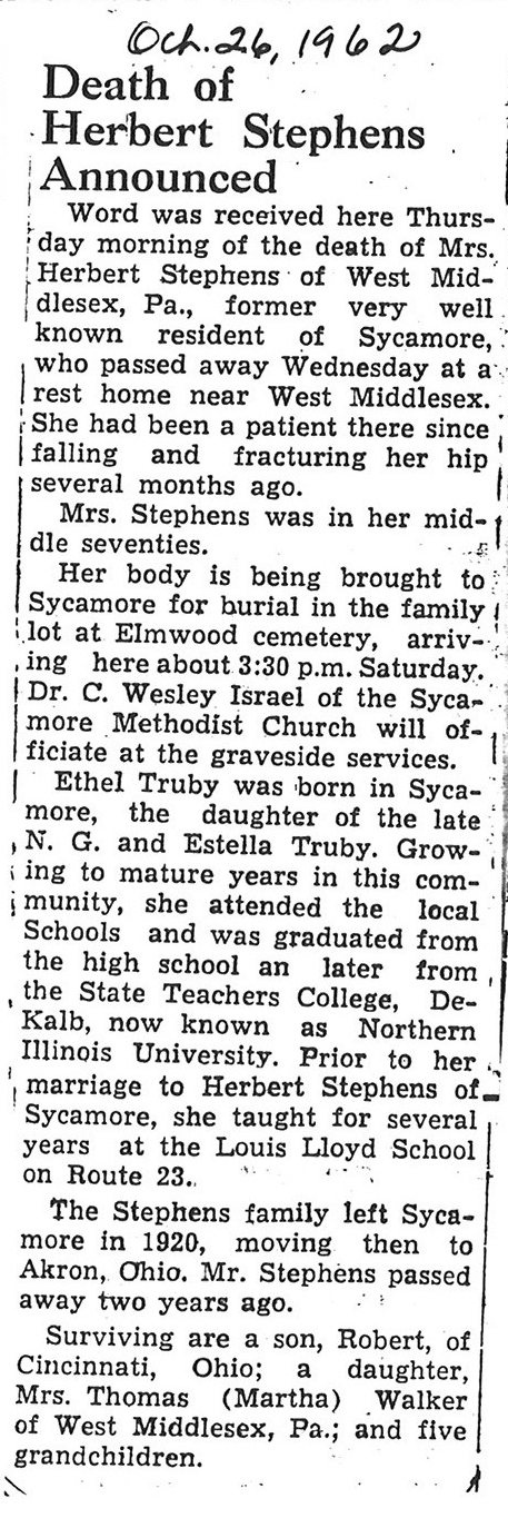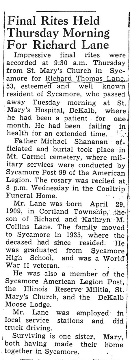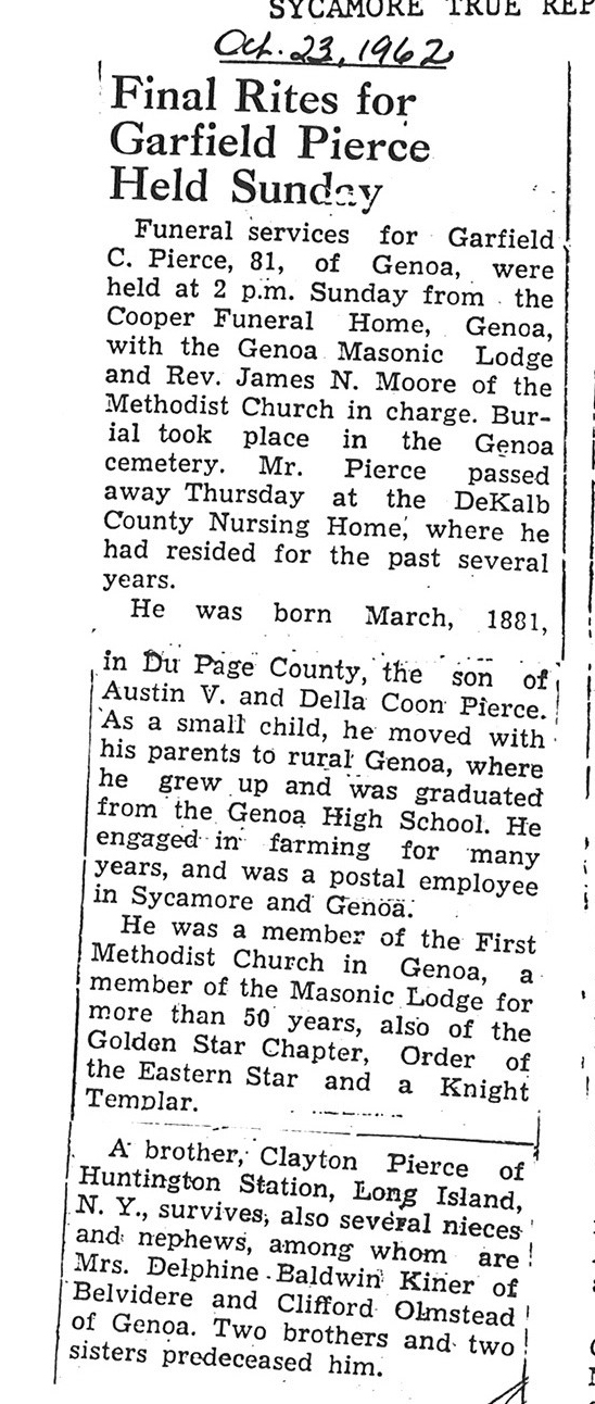 Sept 25 1962 obit #3 from Sycamore True Republican