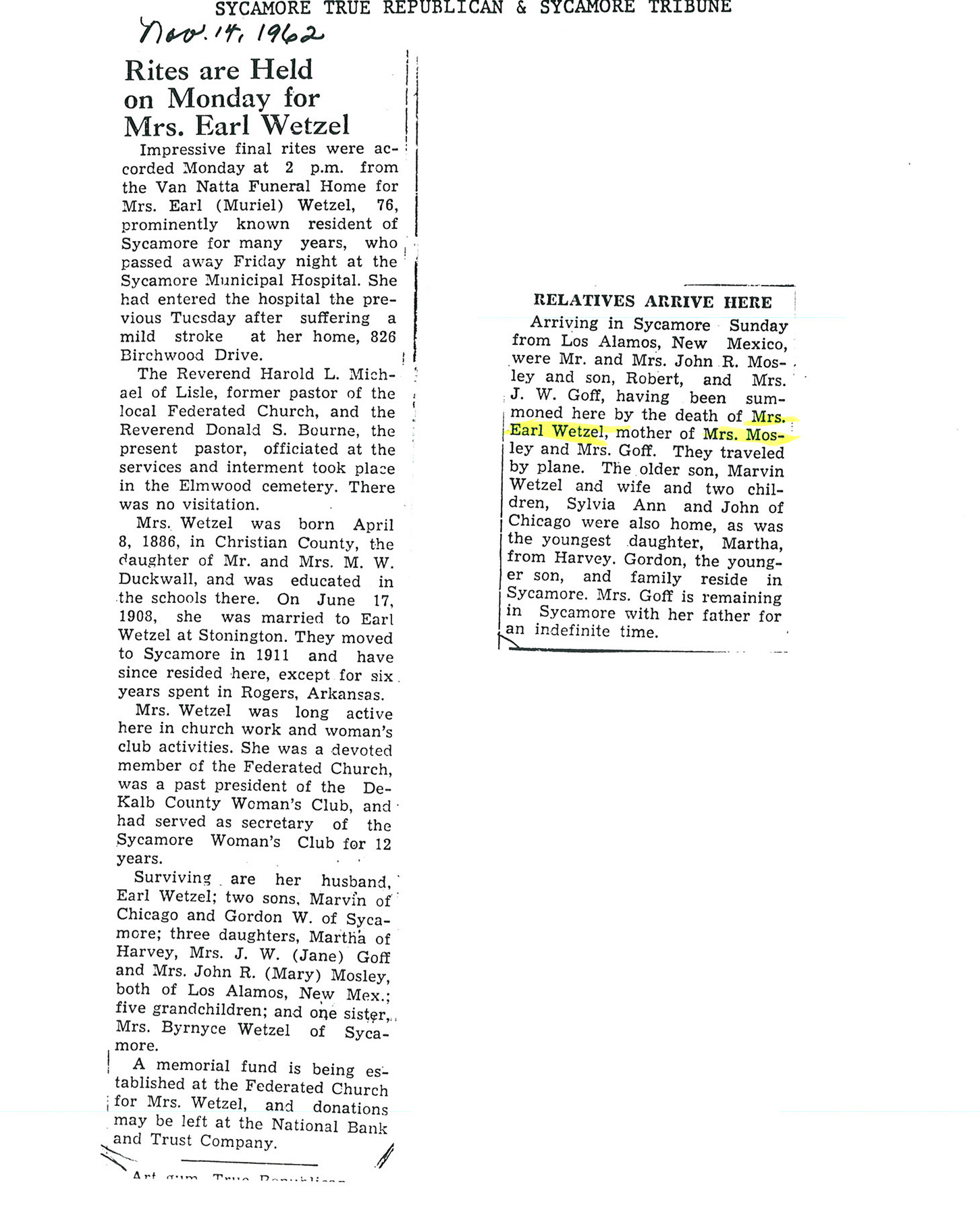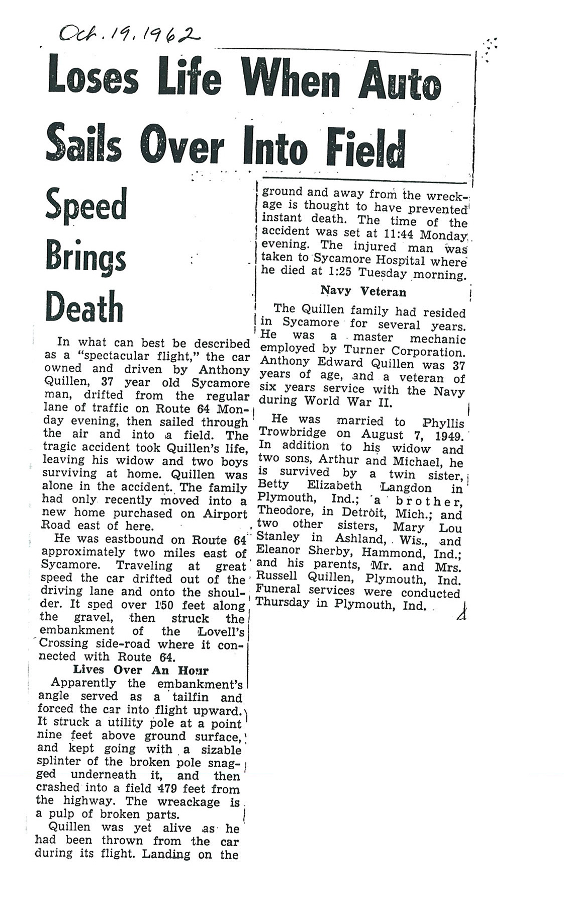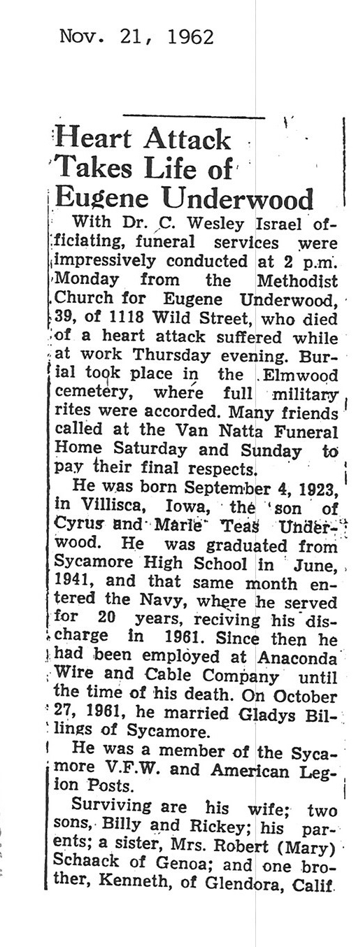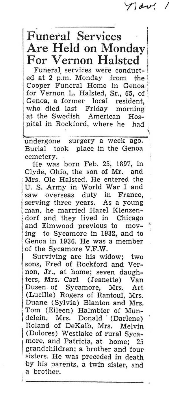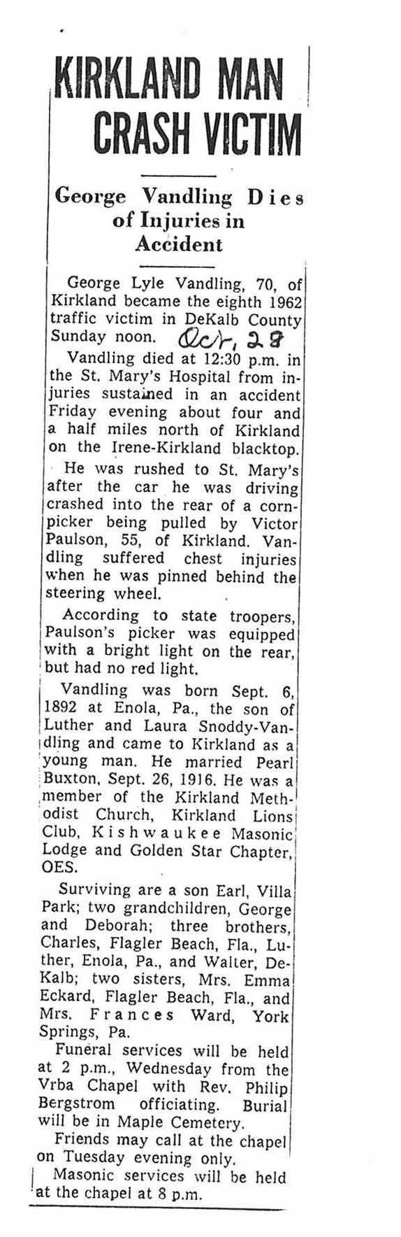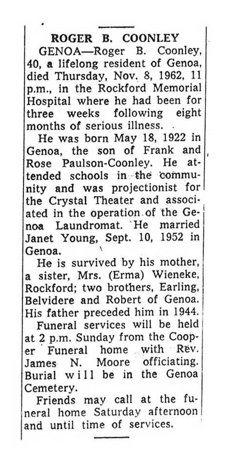 Sept 25 1962 obit #3 from Sycamore True Republican