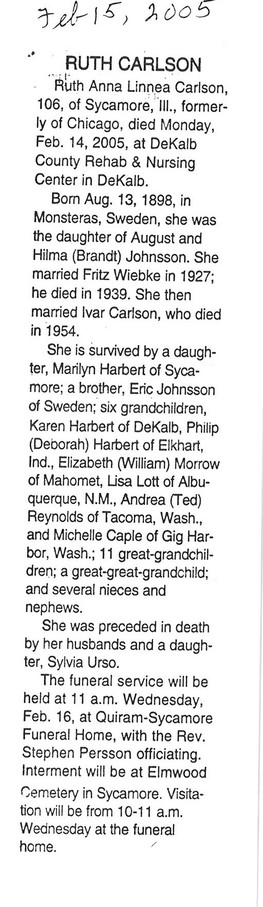 DOB August 25, 1881 in Sweden