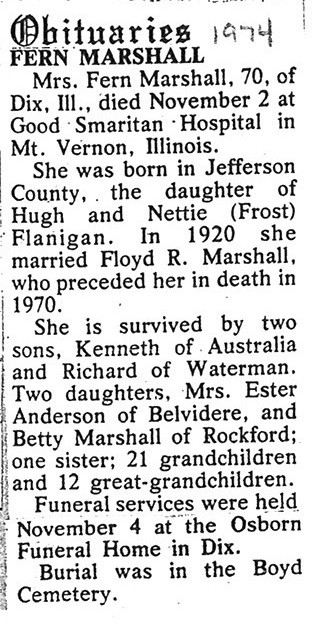 There was no date of birth in the obit, she was born in either 1903 or 1904