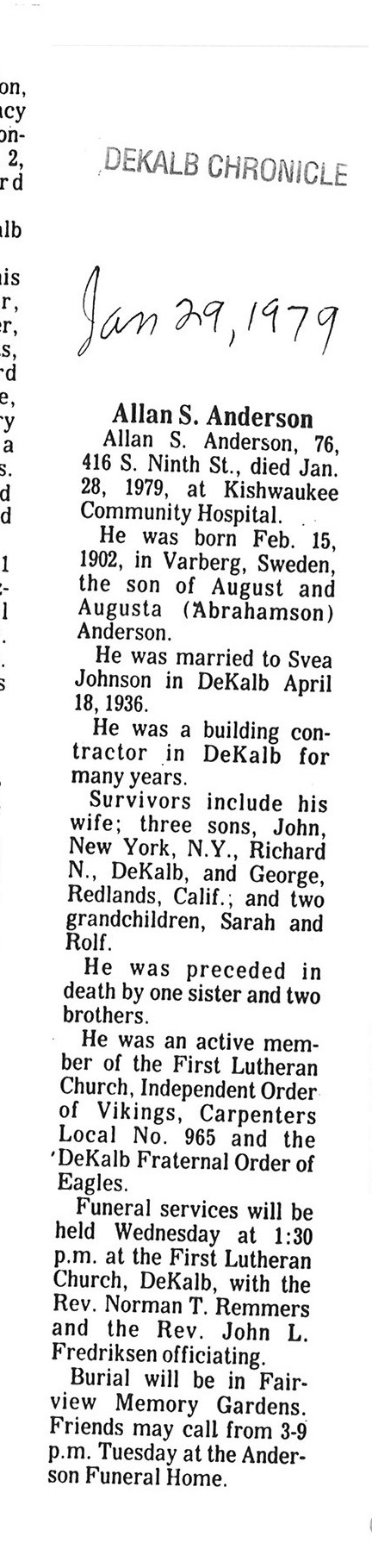 DOB February 15, 1902 in Sweden
