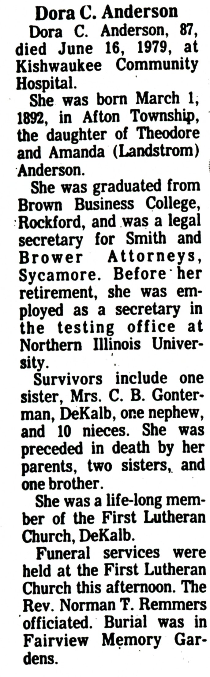 Buried in Trinity Memory Gardens - Rochelle, IL