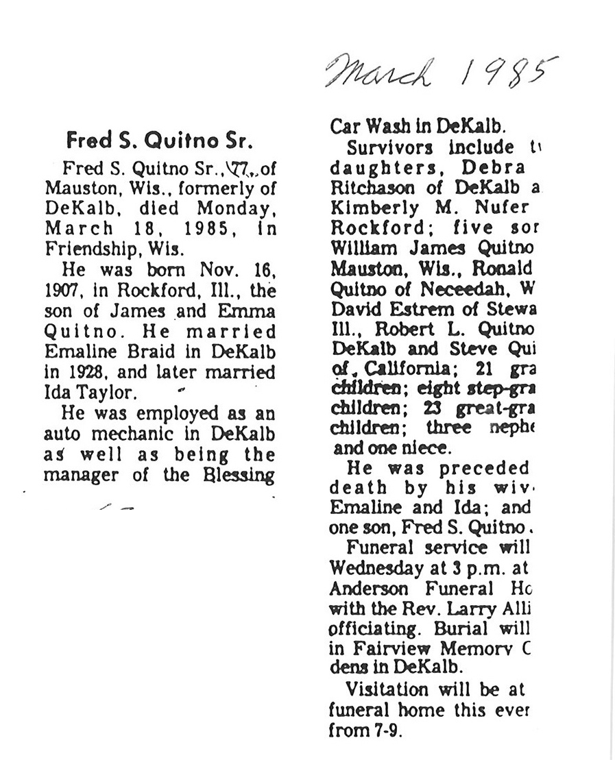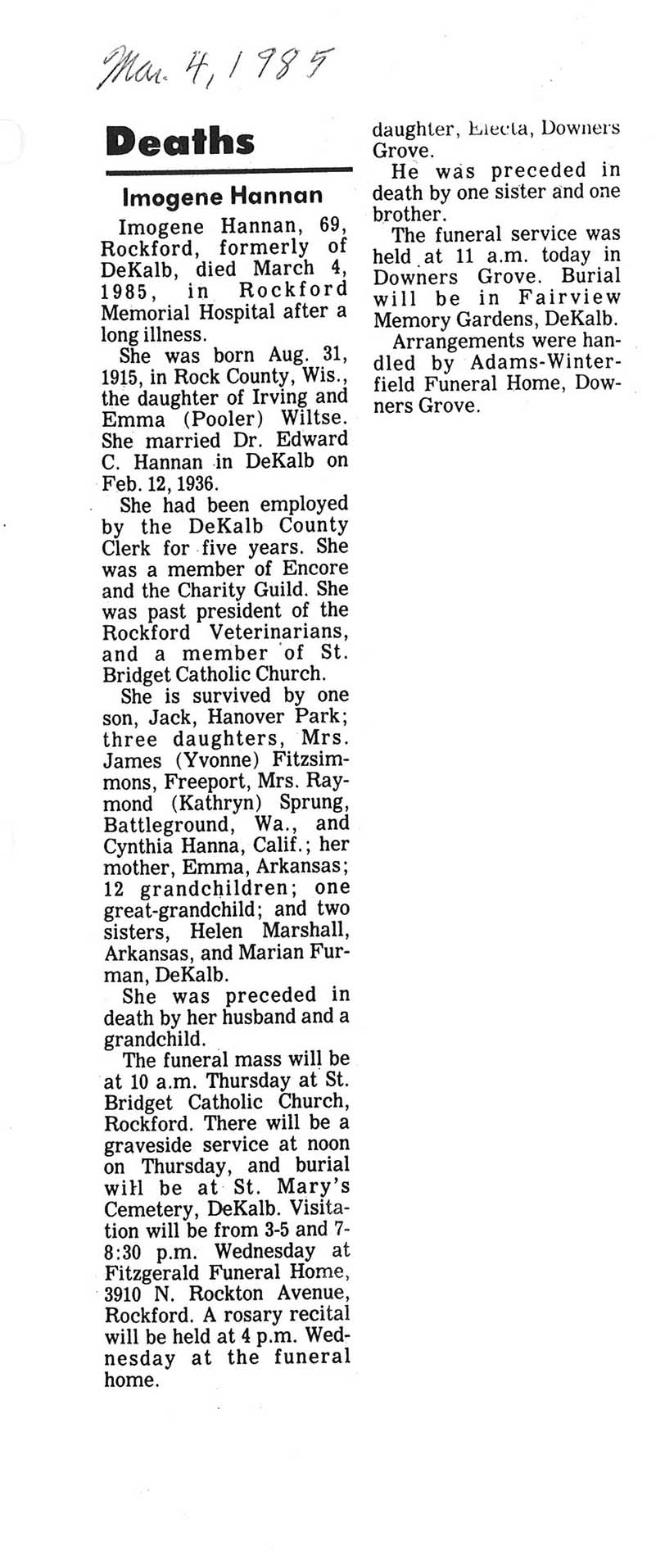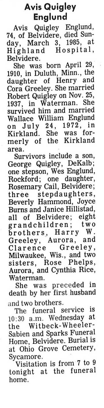 Maiden name - Greeley 1st husband - Robert Quigley 2nd husband Wallace William Englund