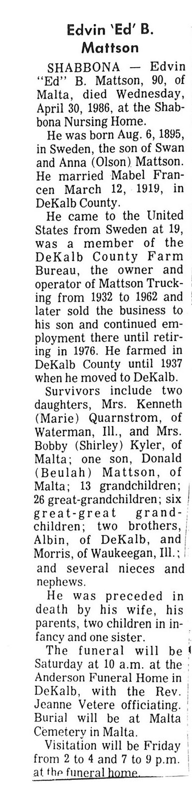 DOB December 12, 1900 in Sweden