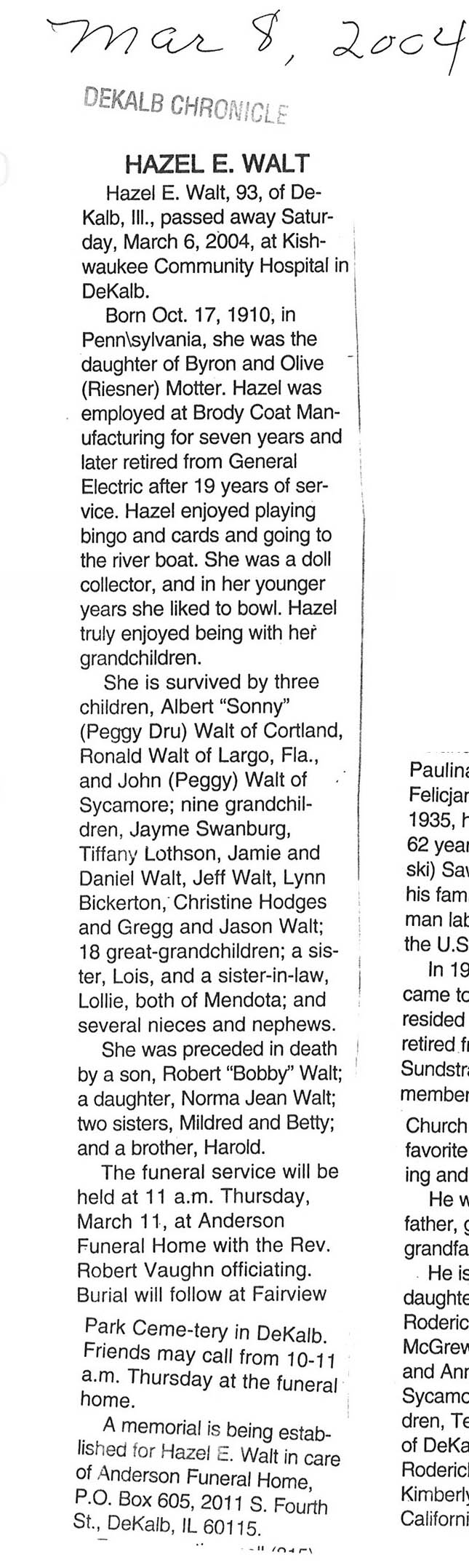Deceased March 4, 2004