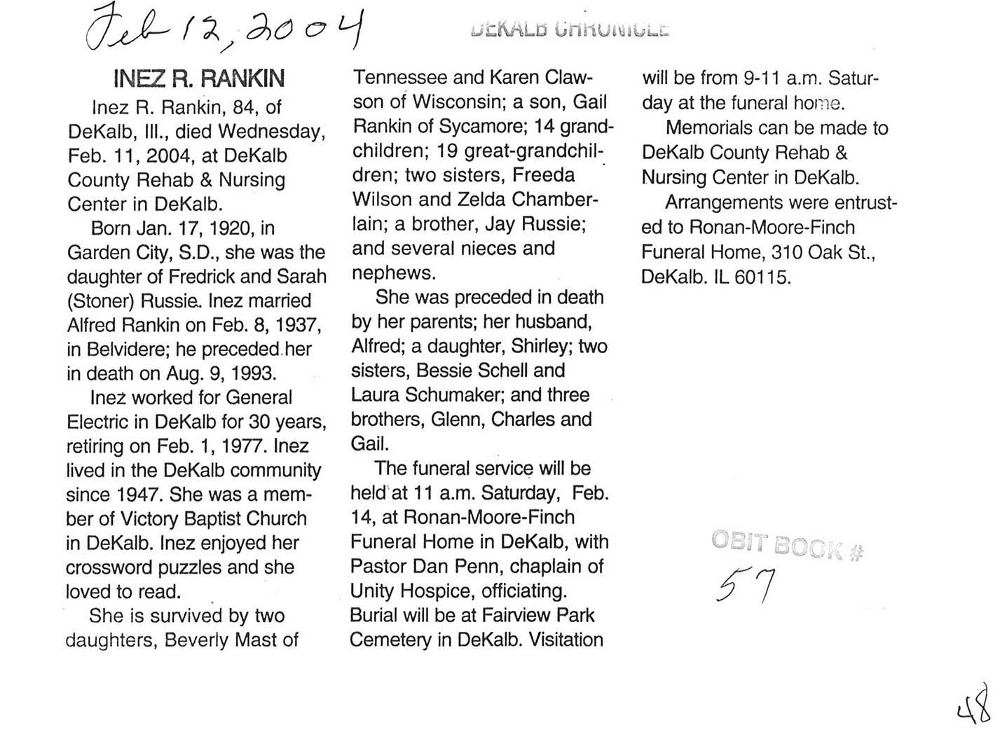 DOB February 19, 1921