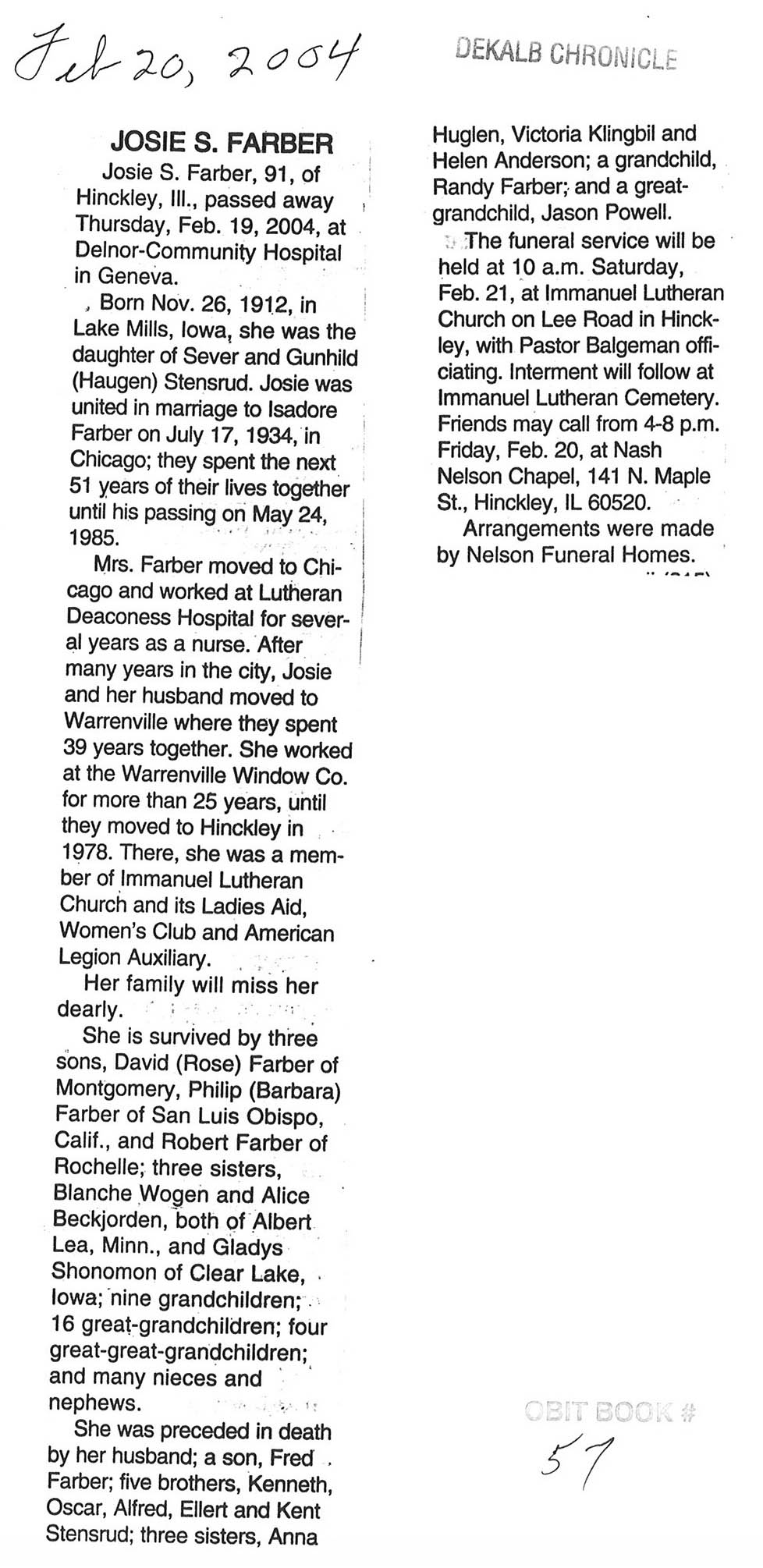 DOB February 20, 1922