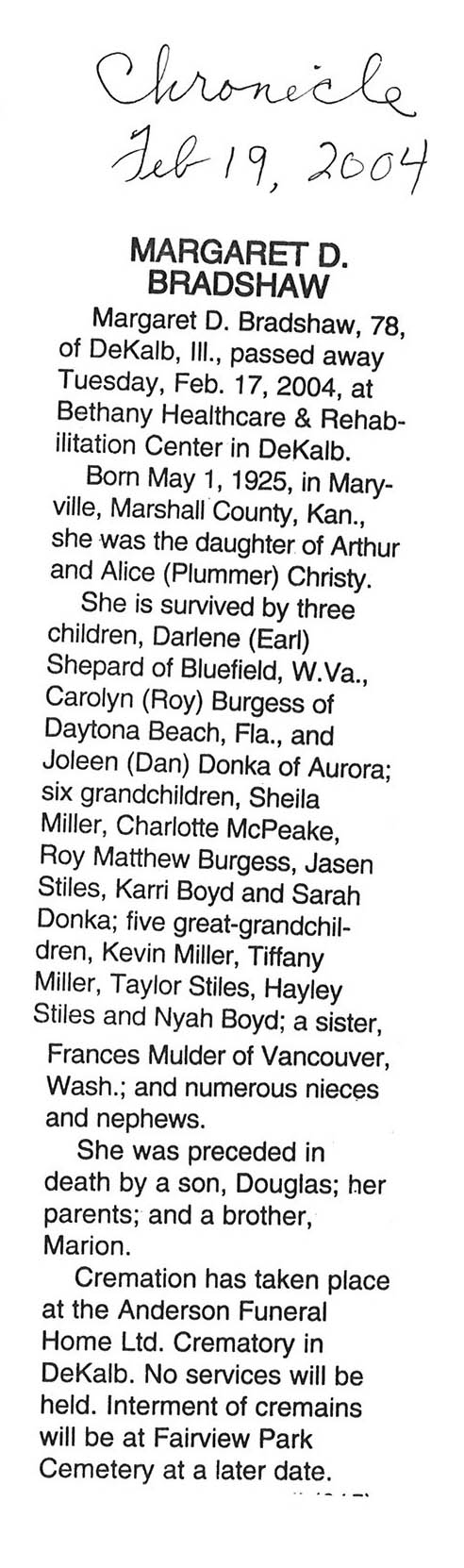 Deceased Feb. 29, 2004