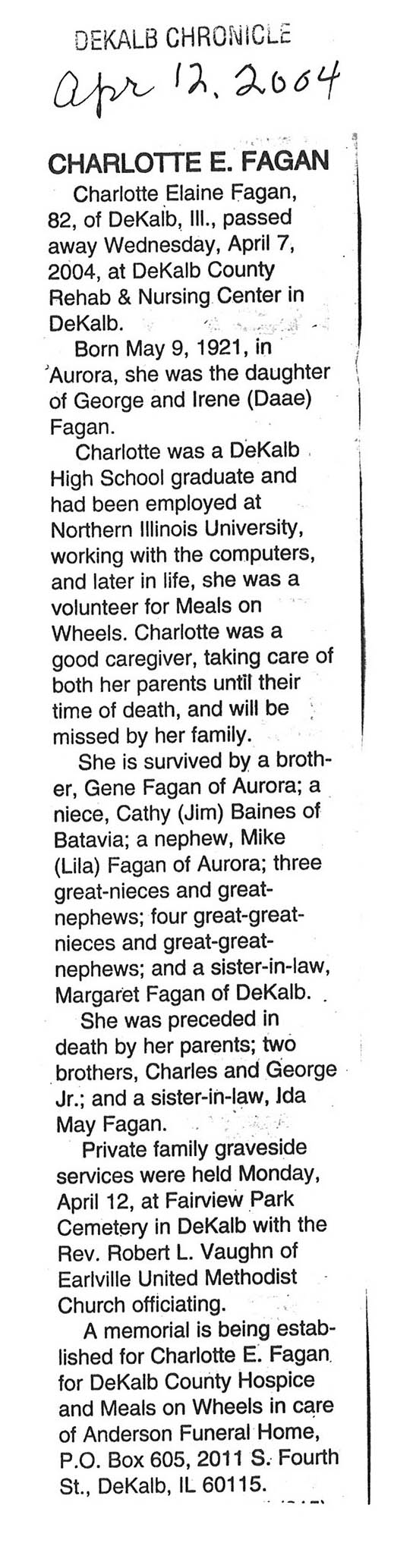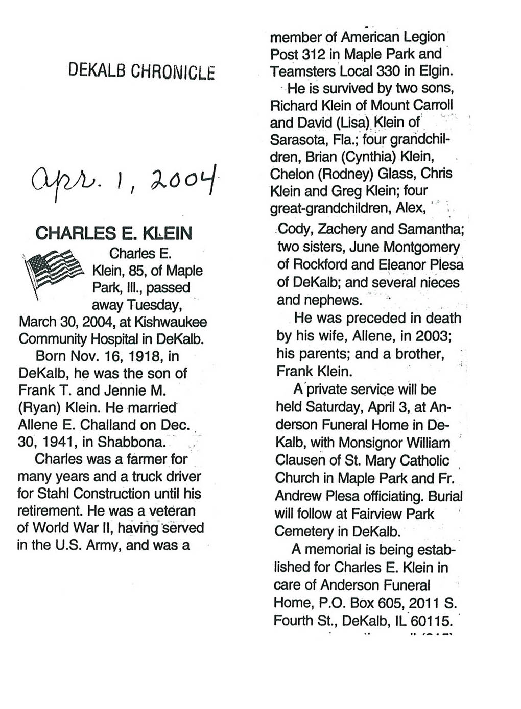 Deceased April 8, 2004
