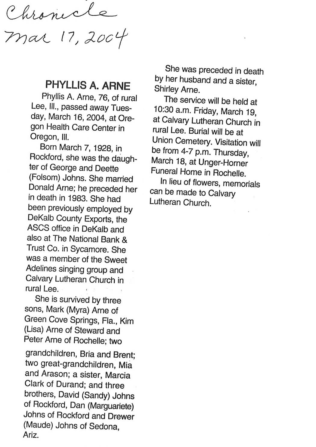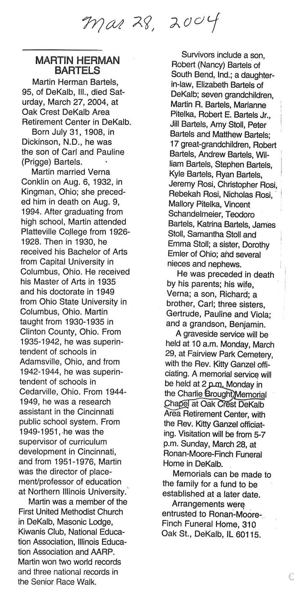 Deceased March 29, 2004