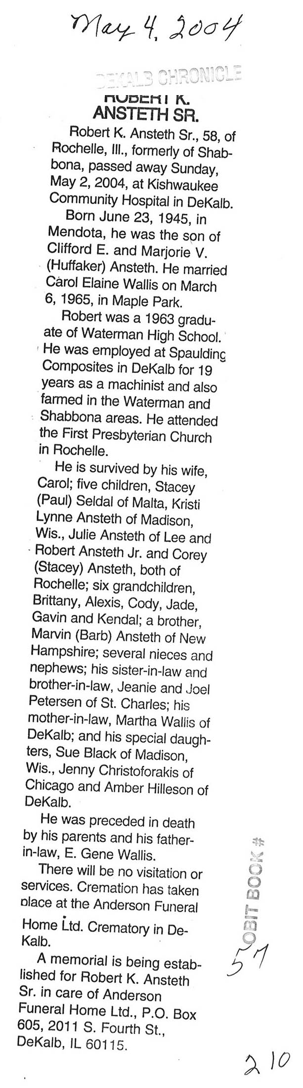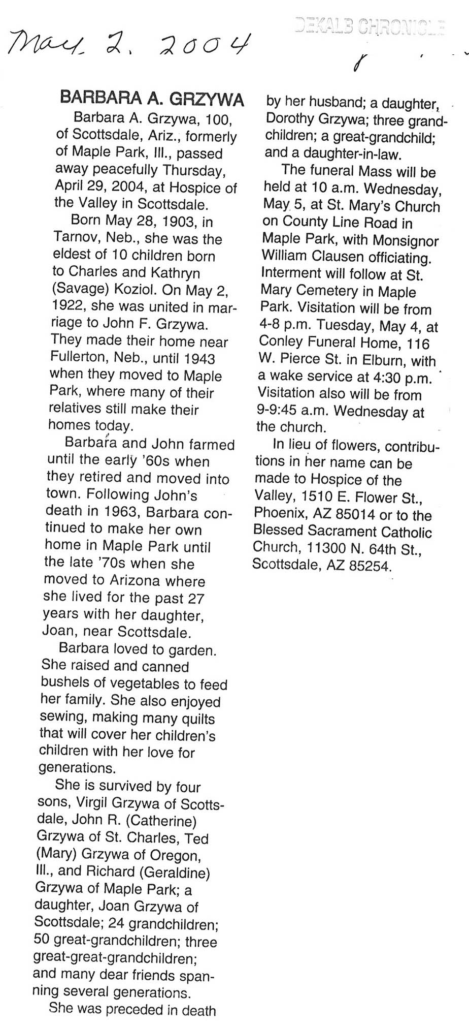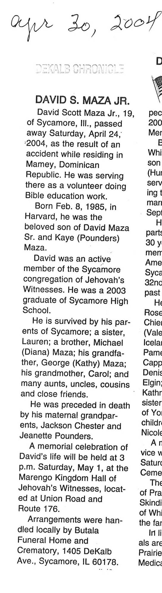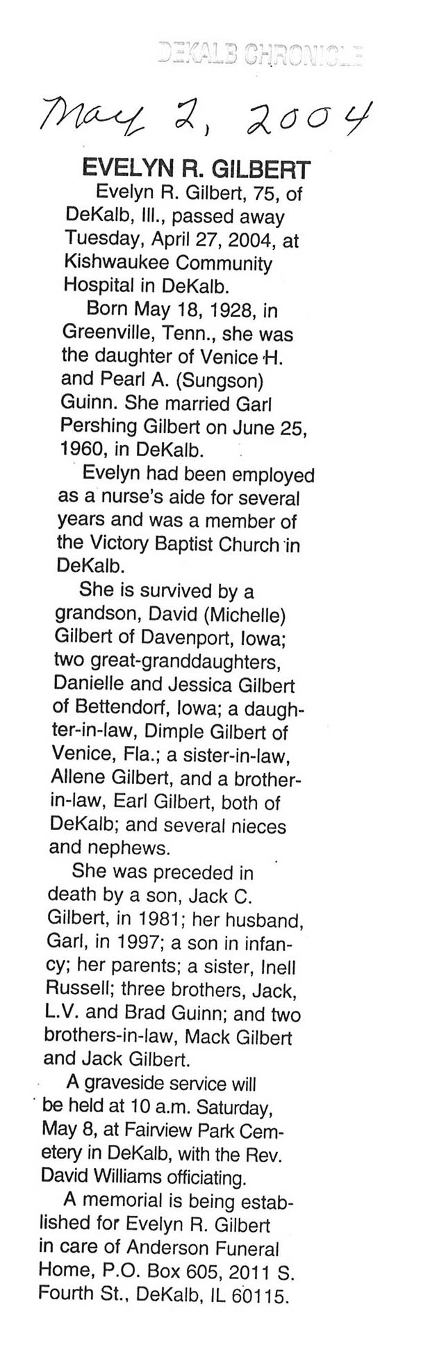 Deceased April 26, 2004