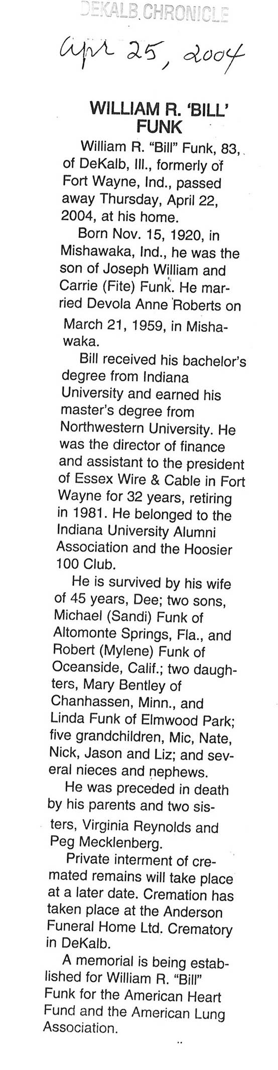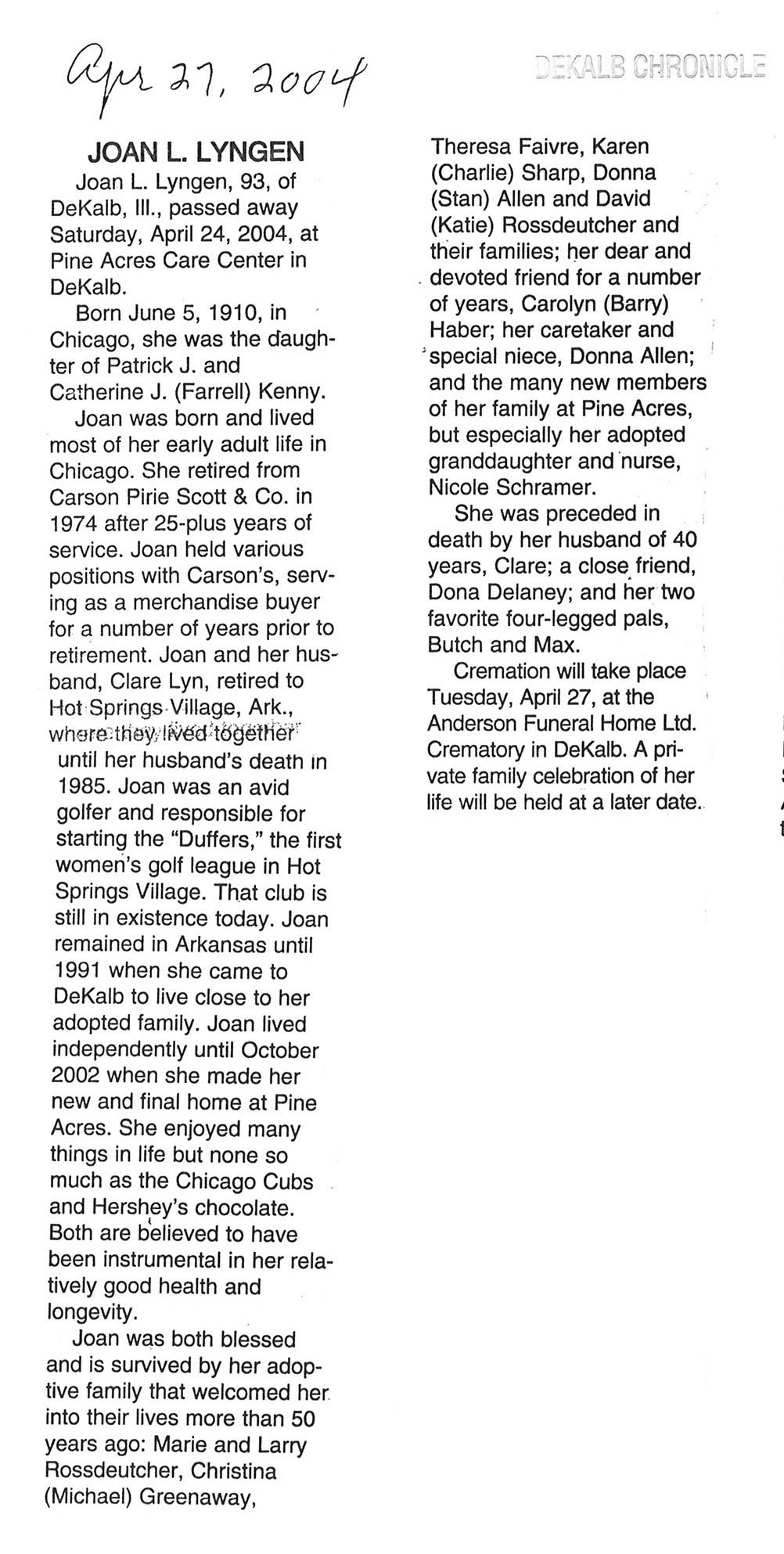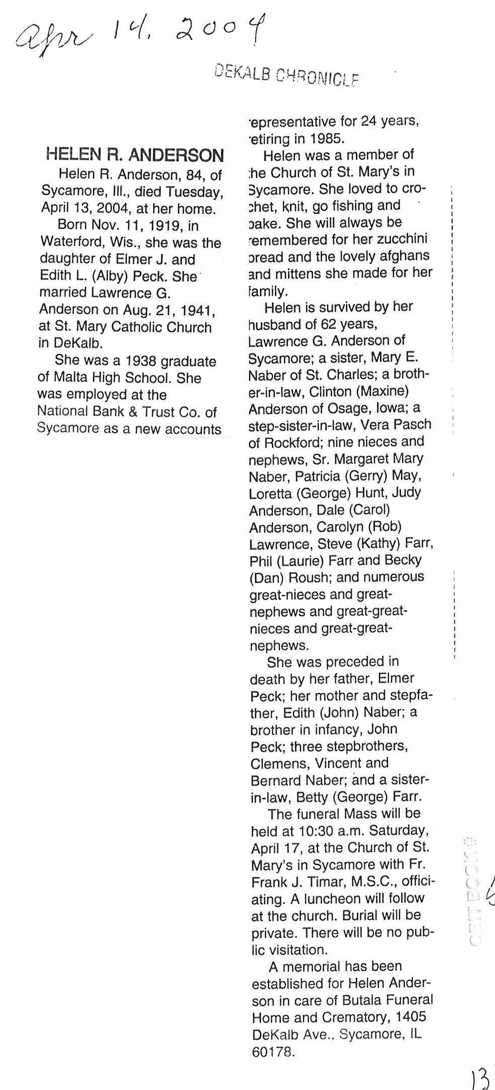Deceased April 14, 2004