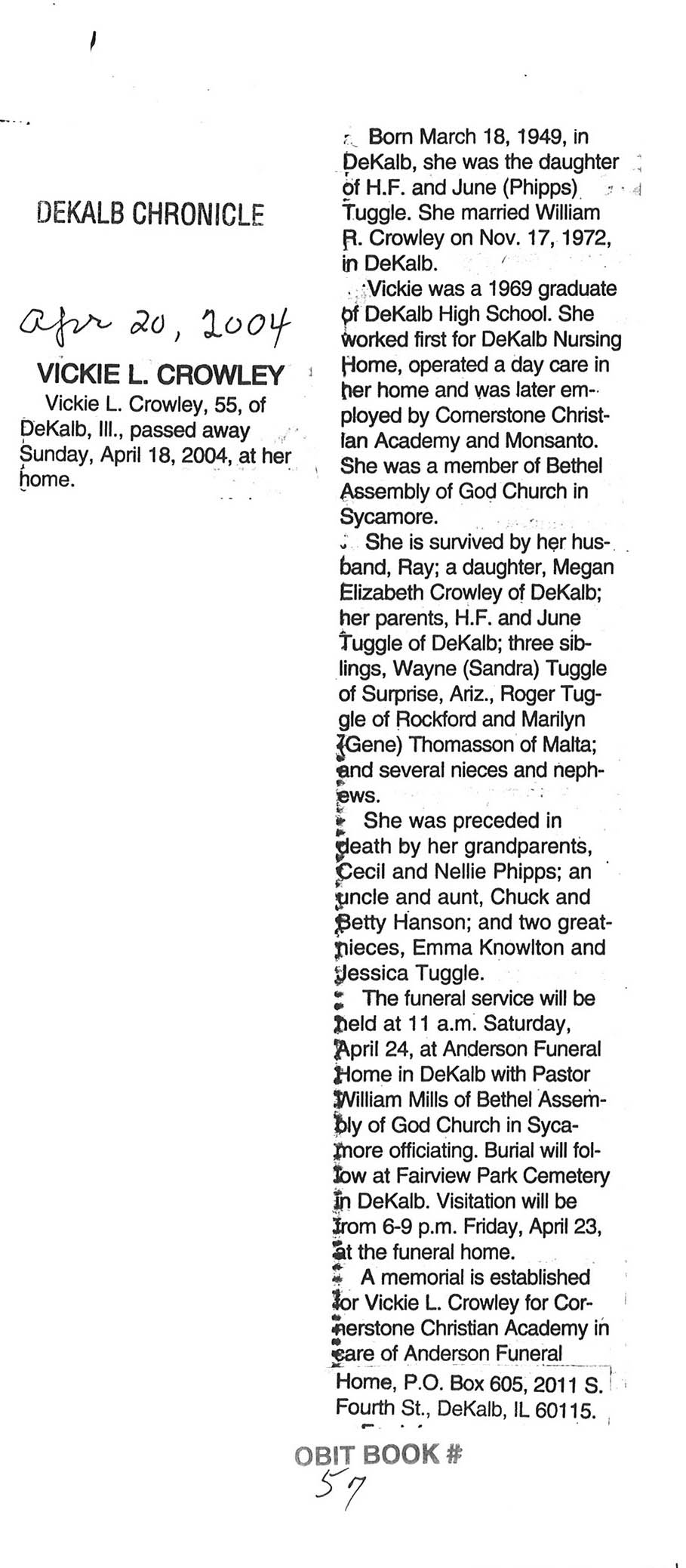 Deceased April 24, 2004