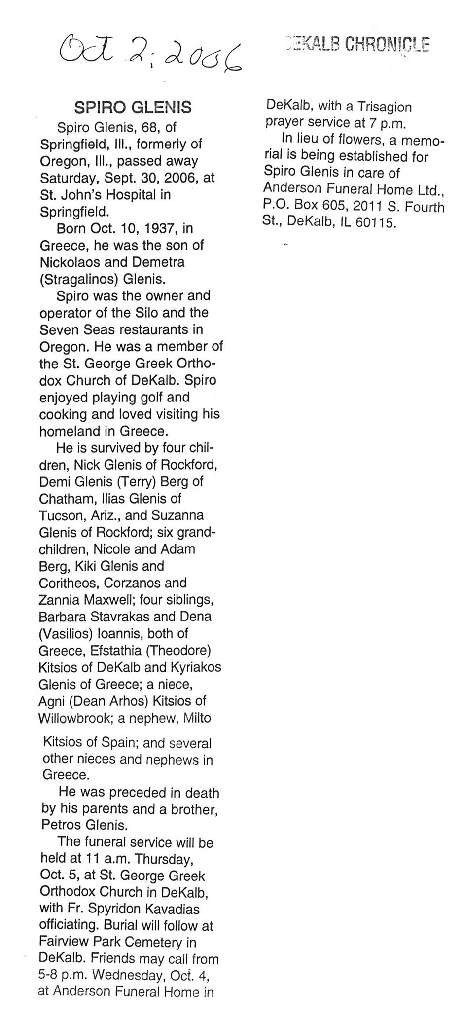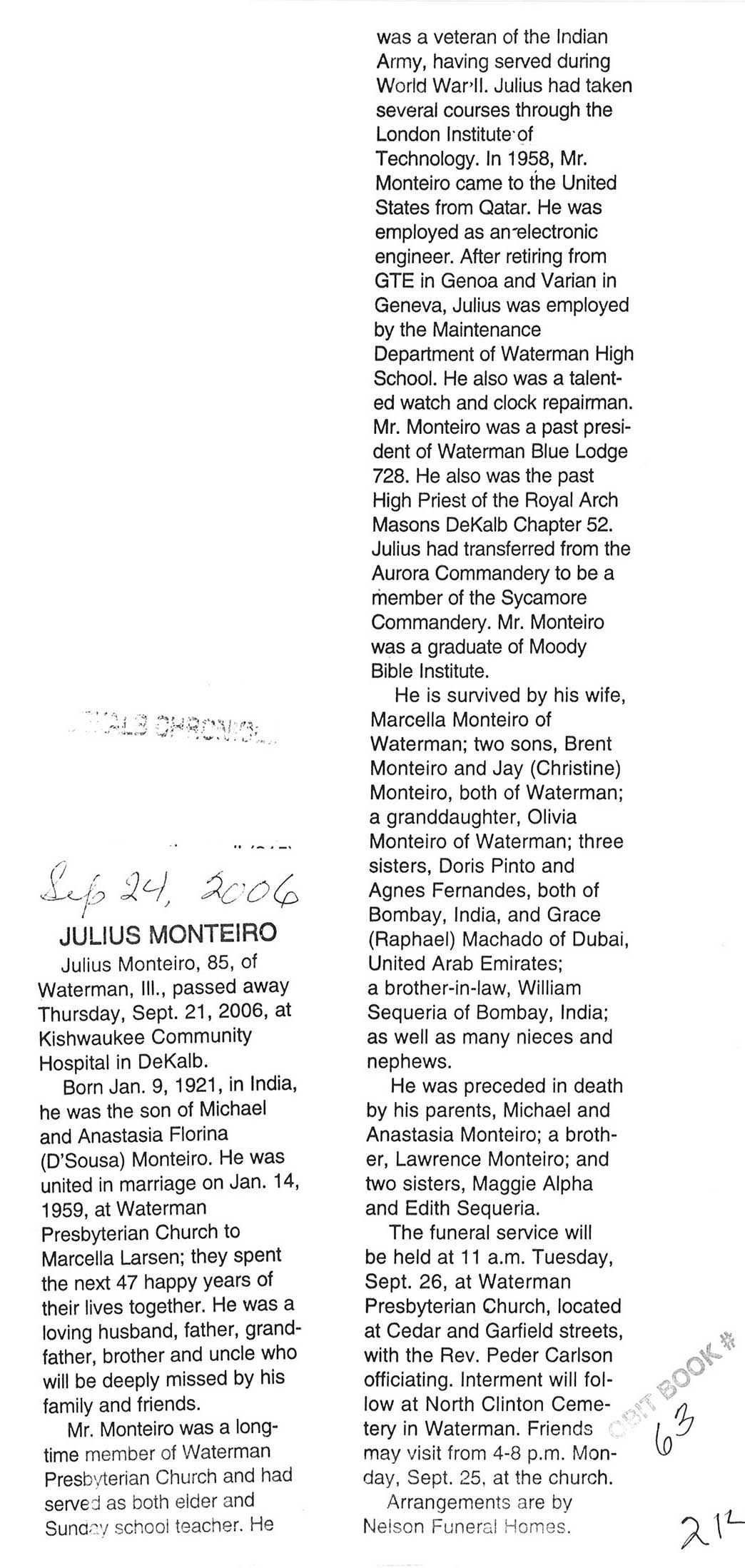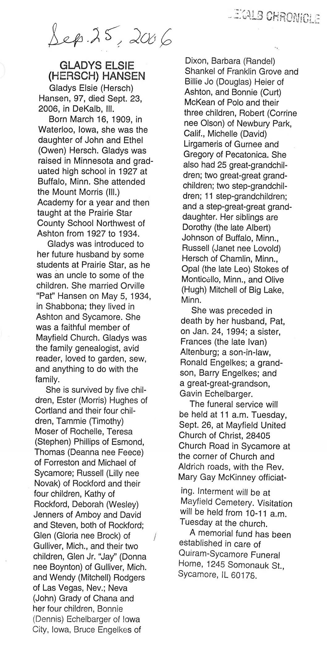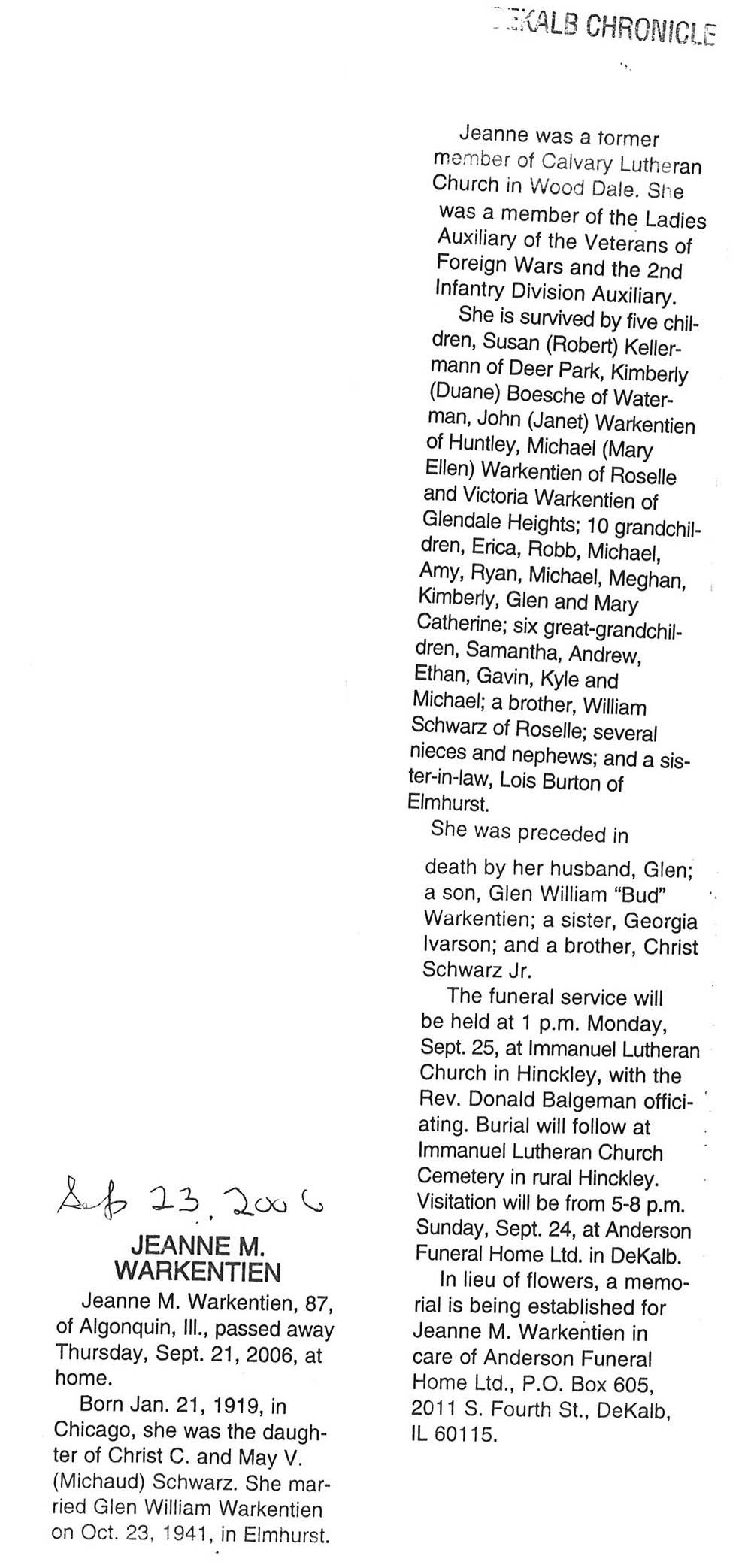 Deceased Sept. 21, 2006
