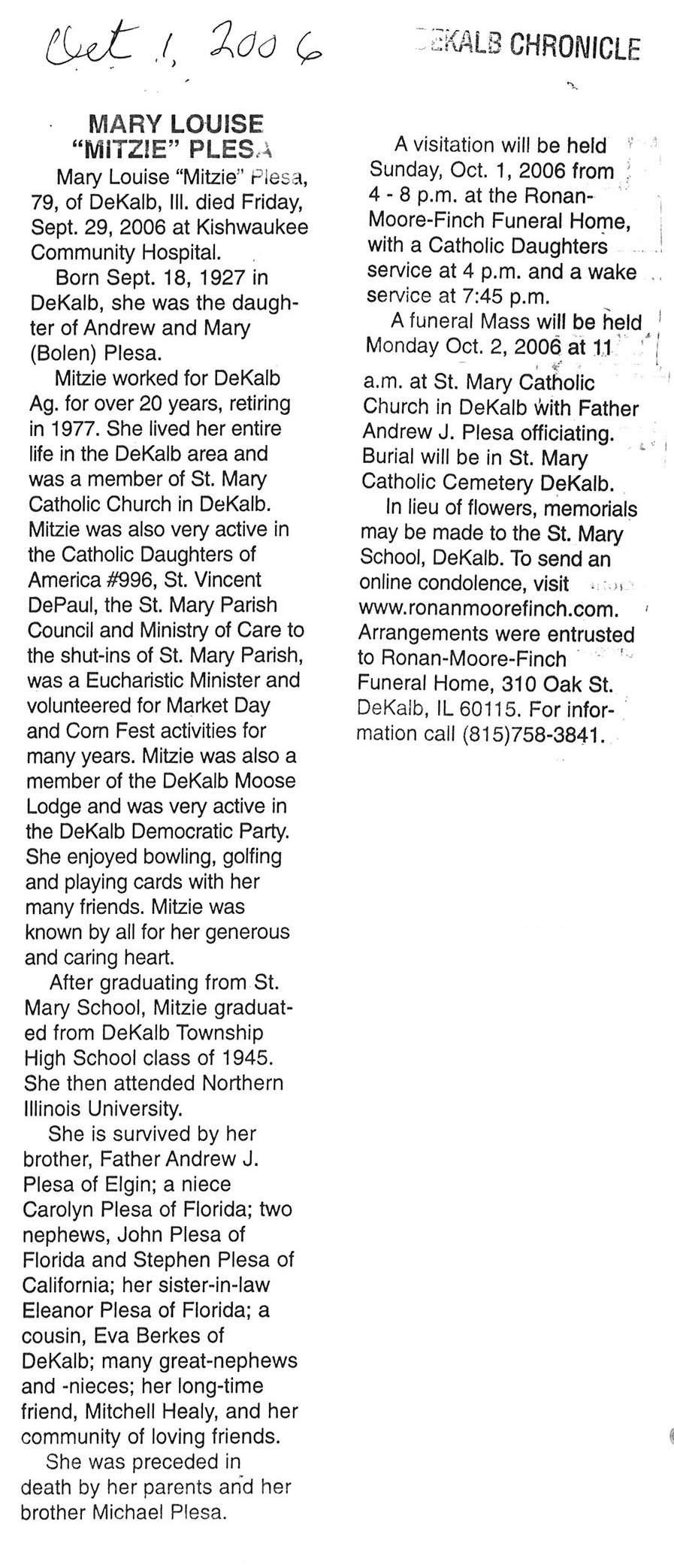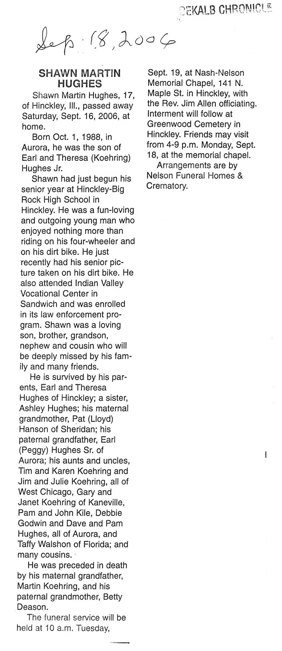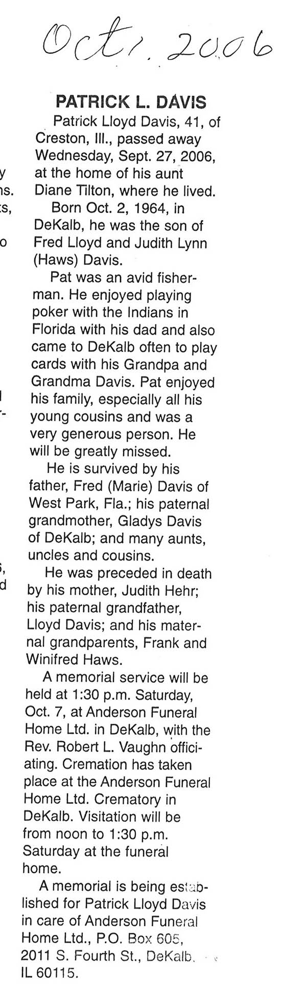 Deceased Sept. 16, 2006