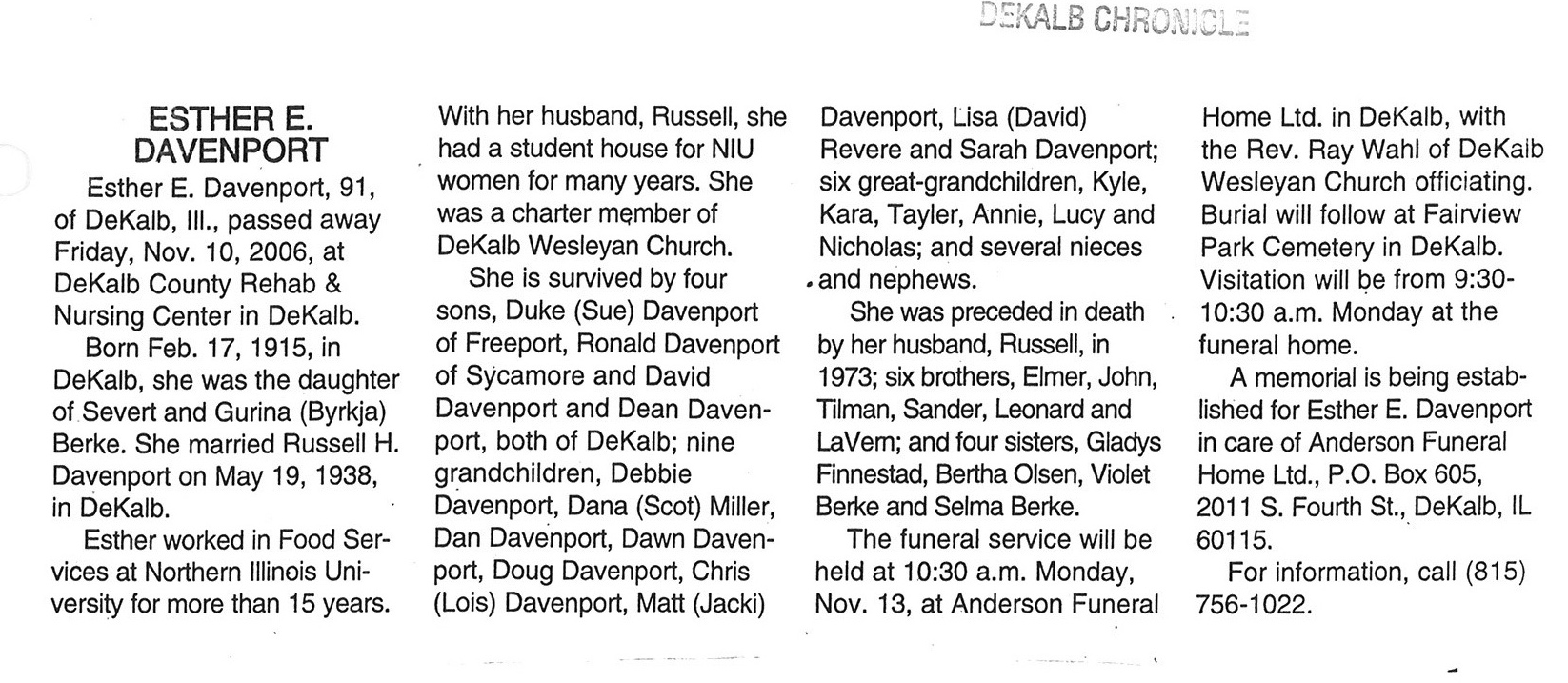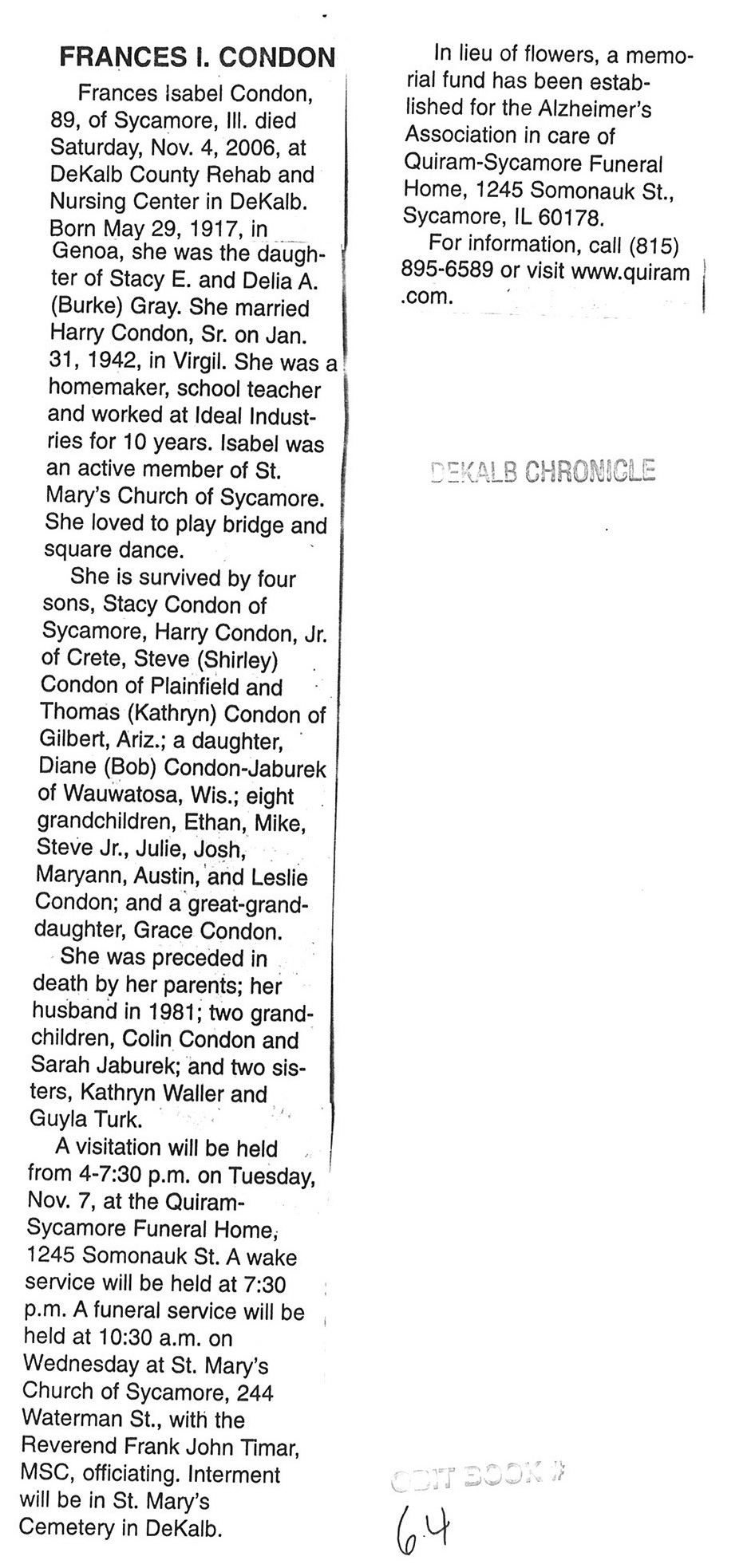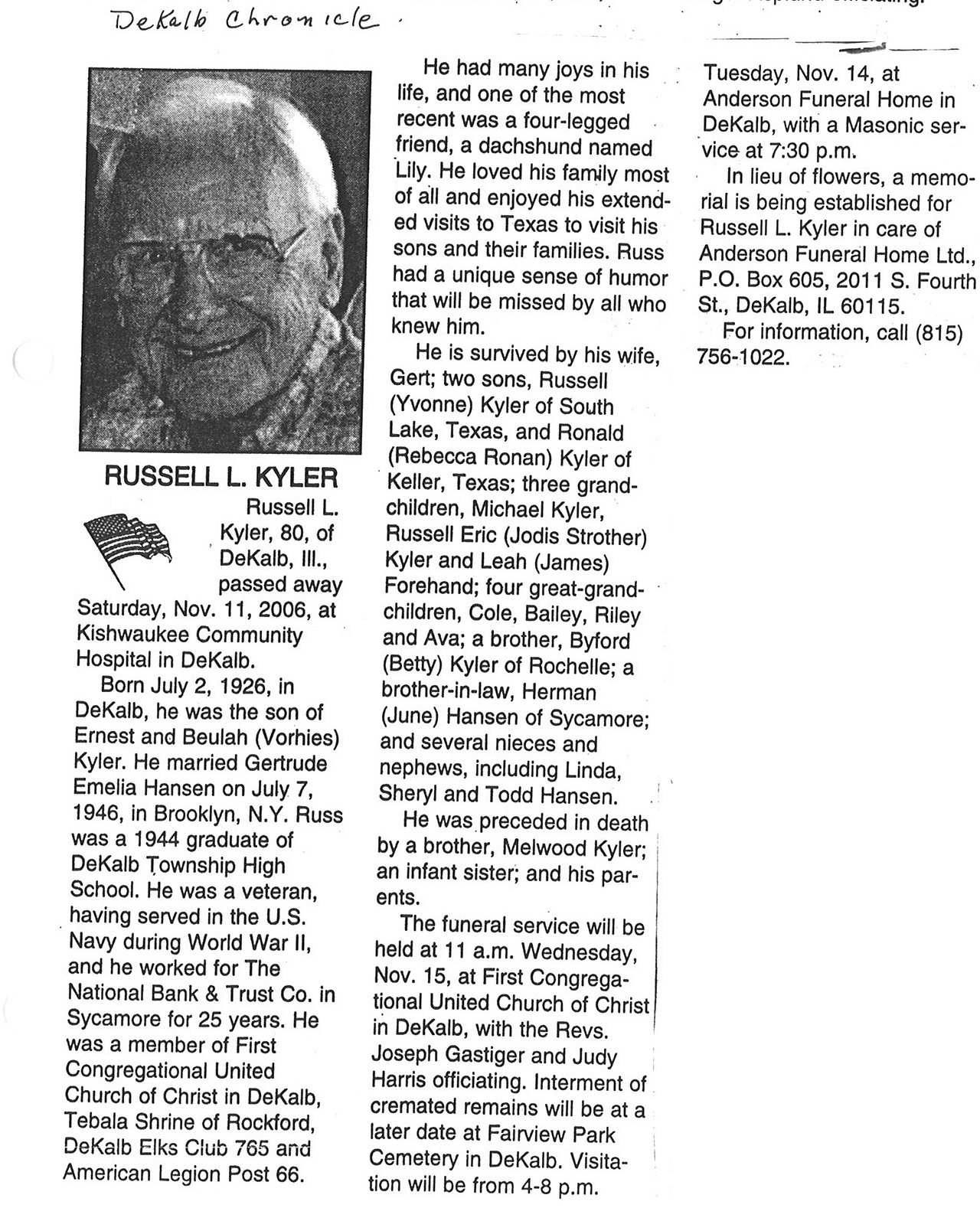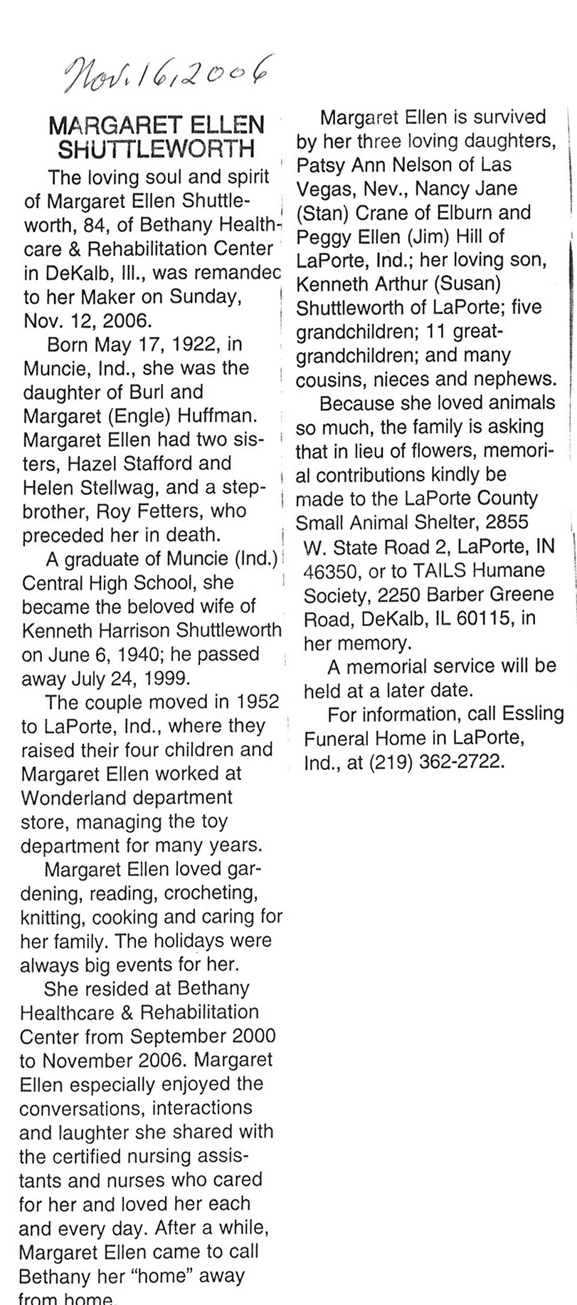 Deceased Nov. 1, 2006