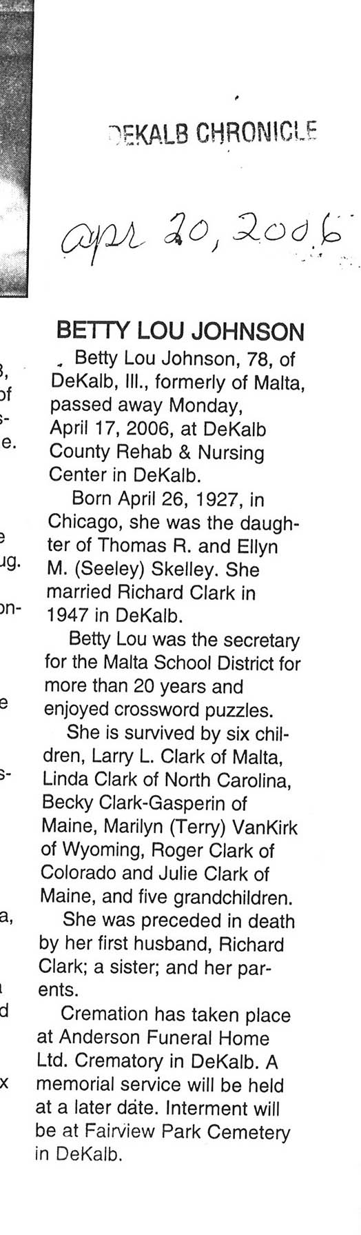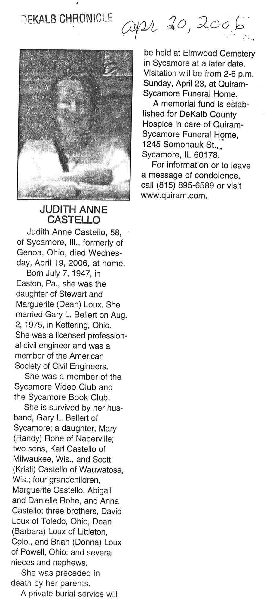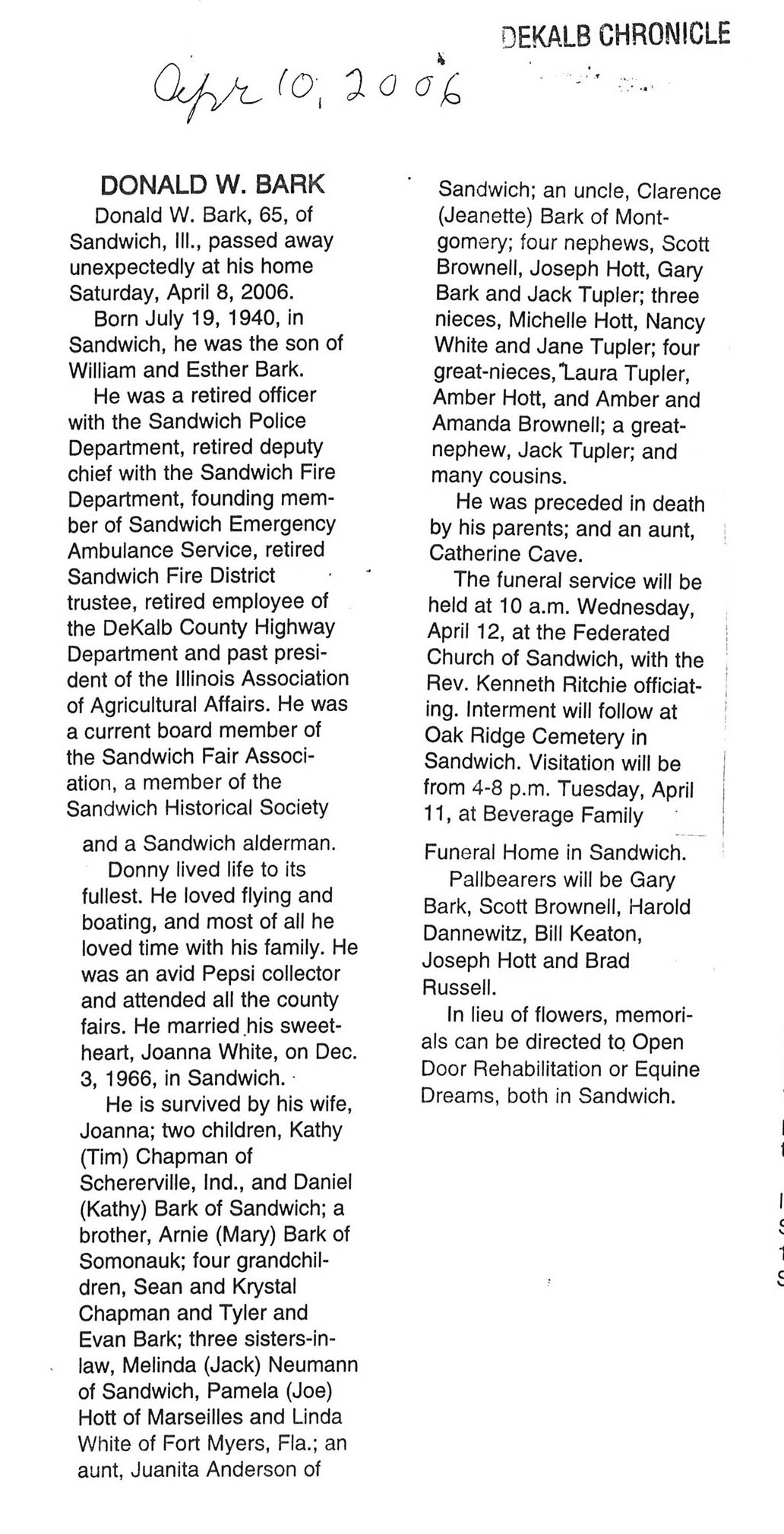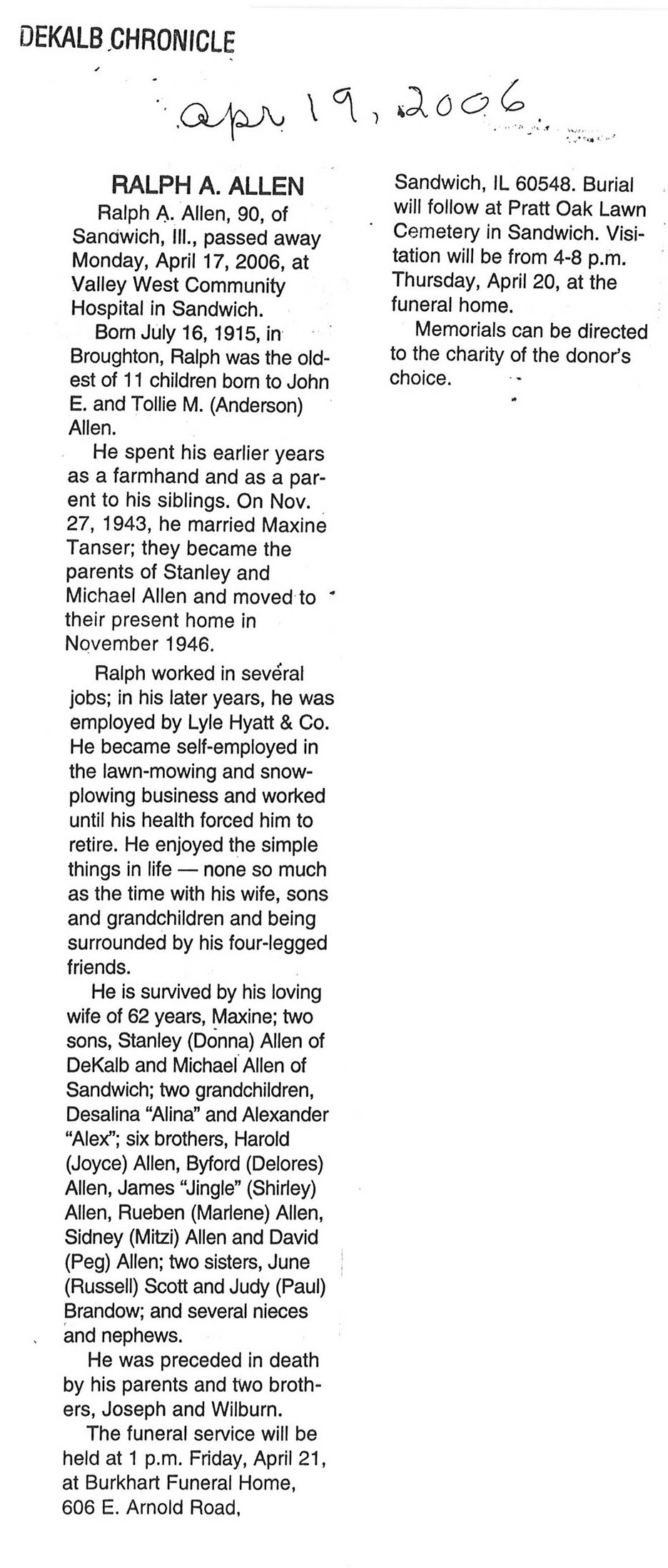 Deceased April 17, 2006