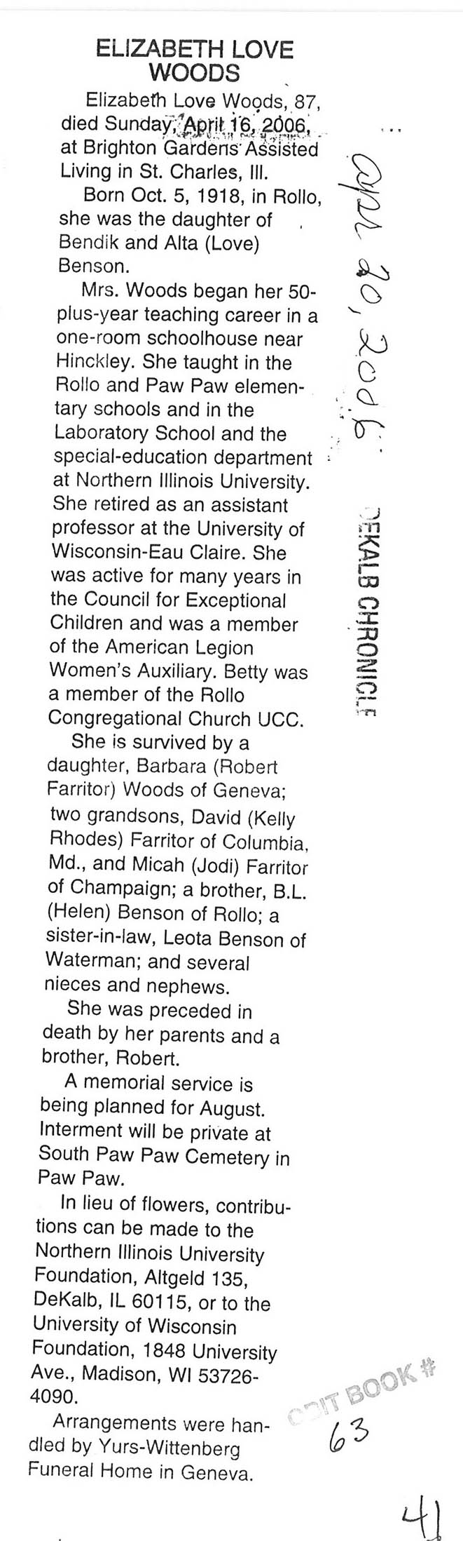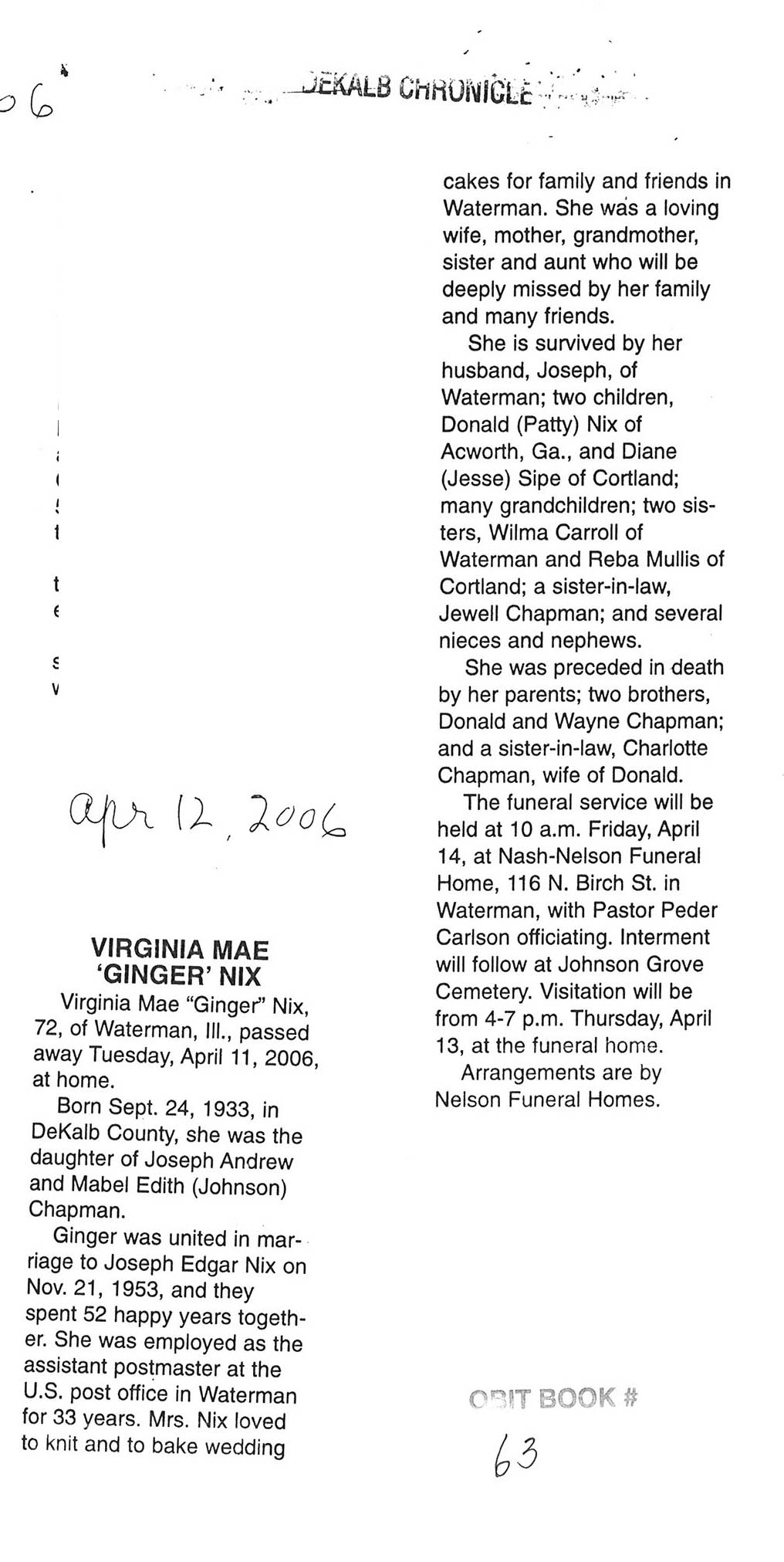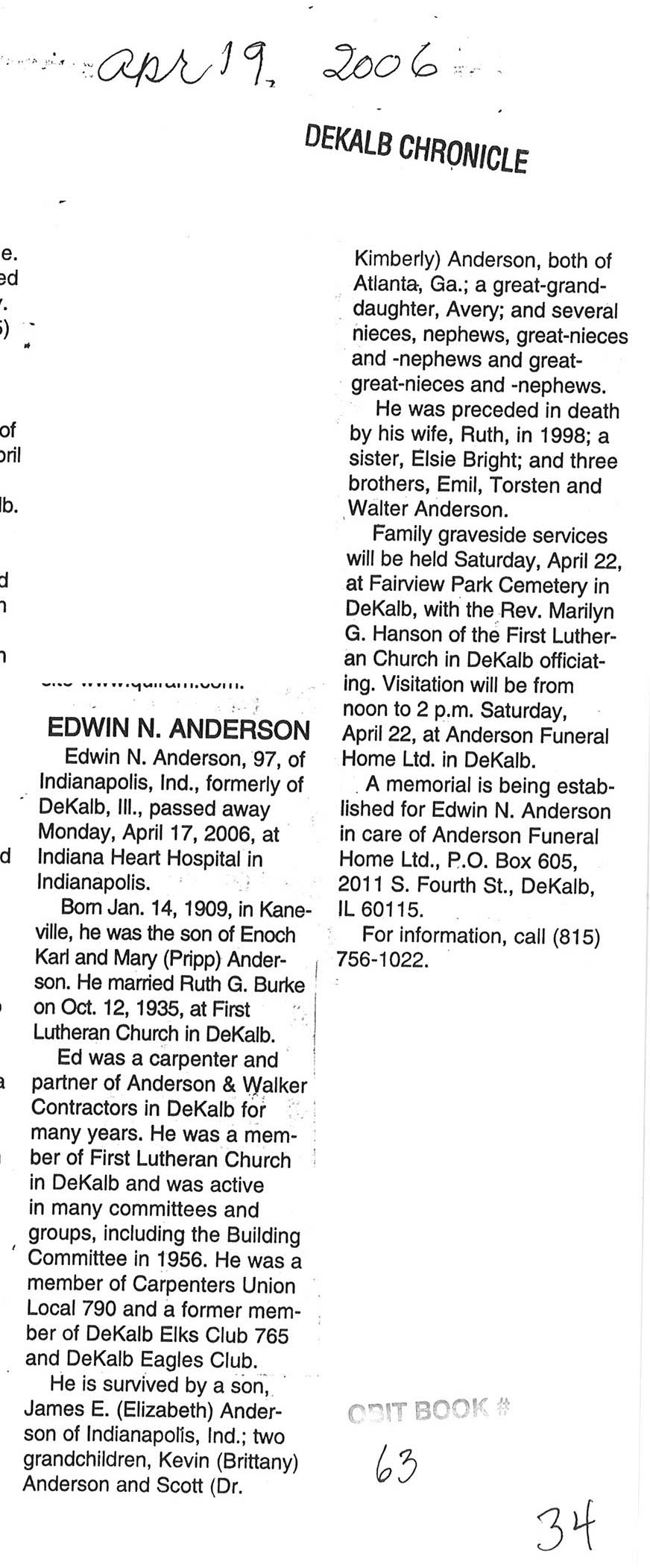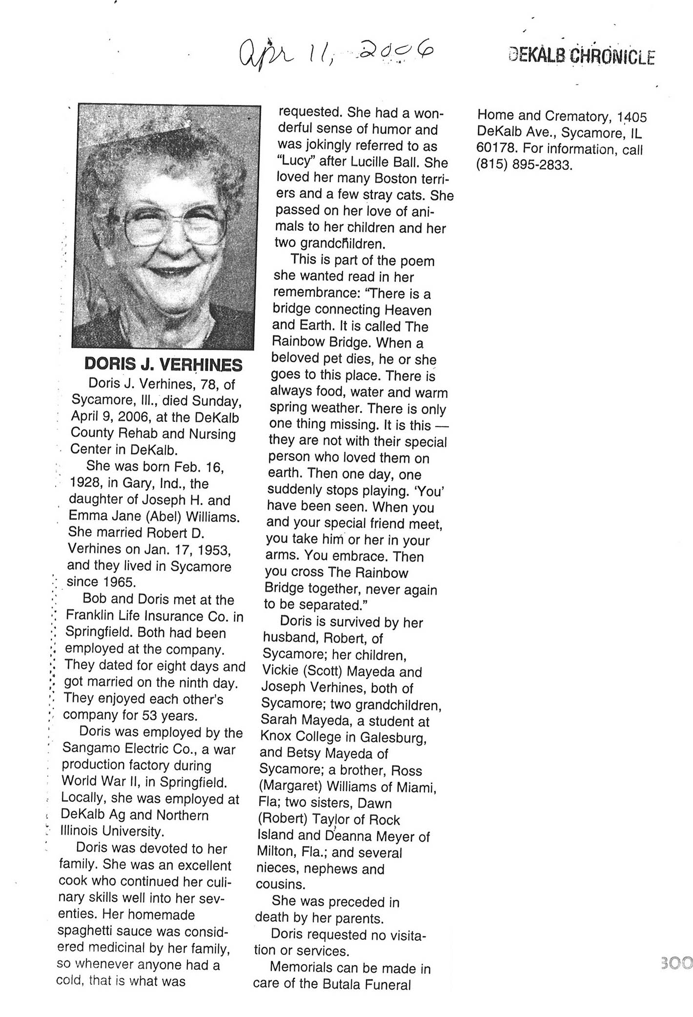Deceased April 17, 2006