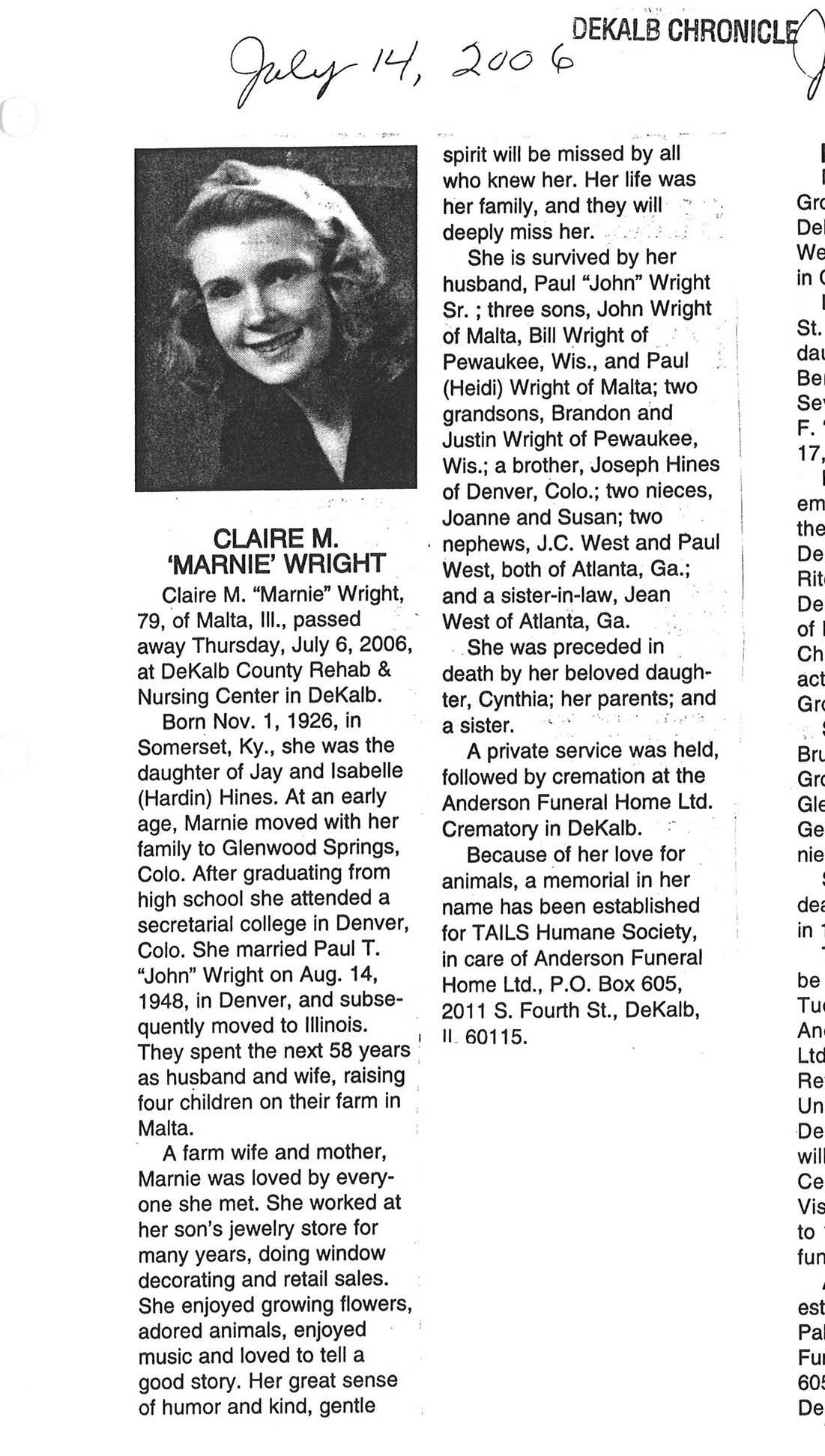 DOB July 31, 1923