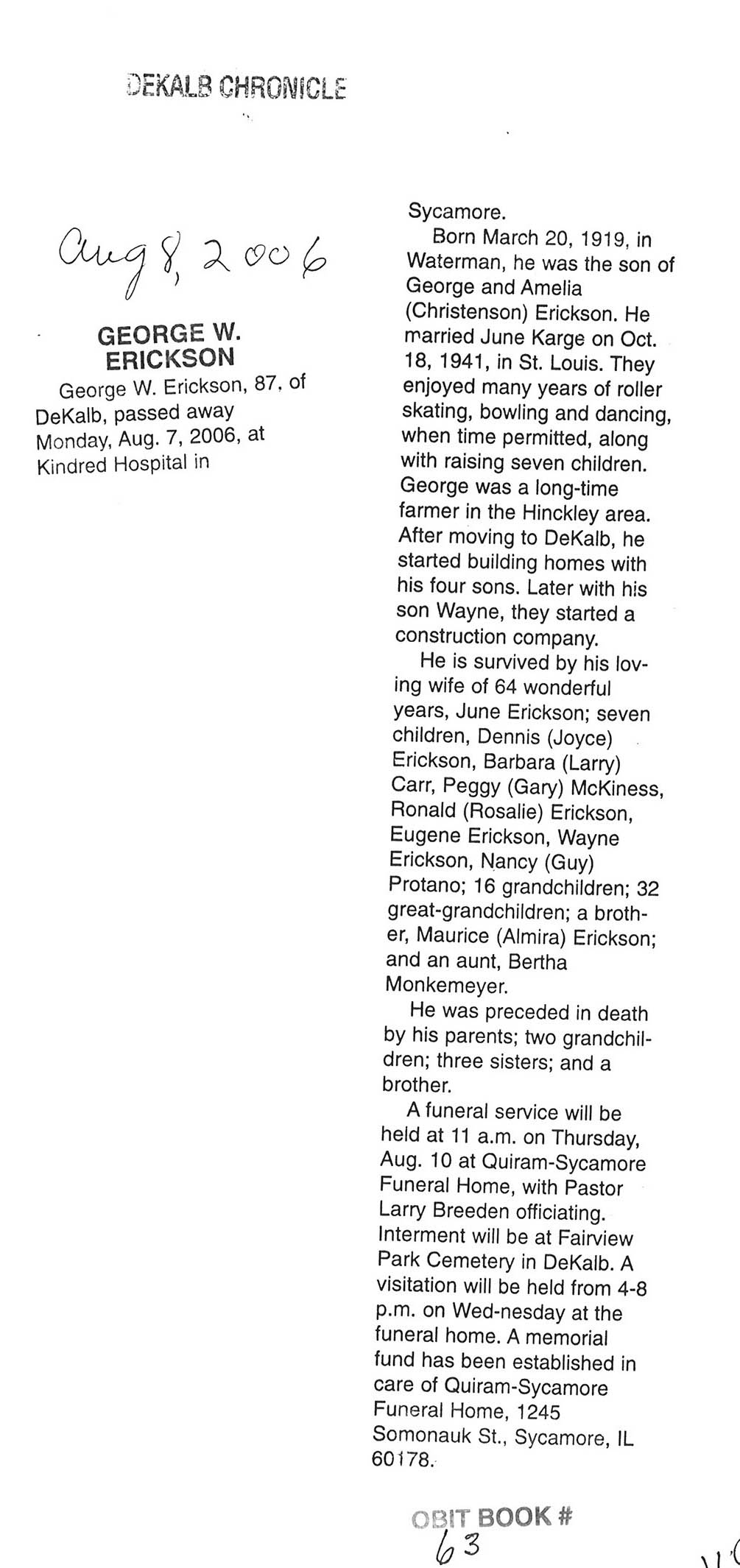 DOB August 3, 1913