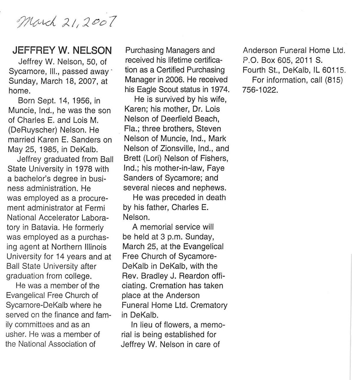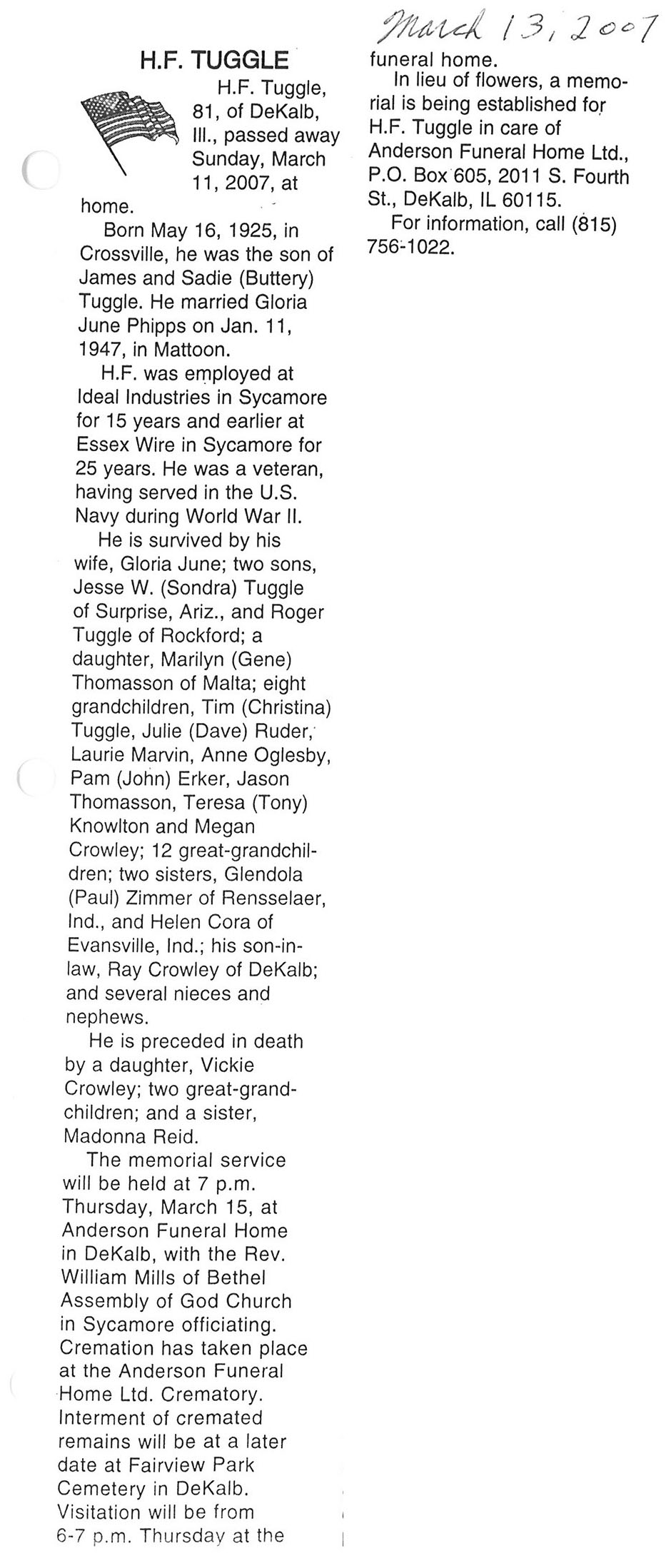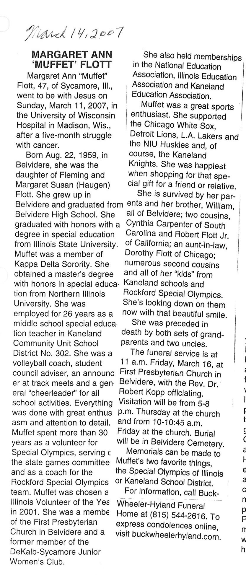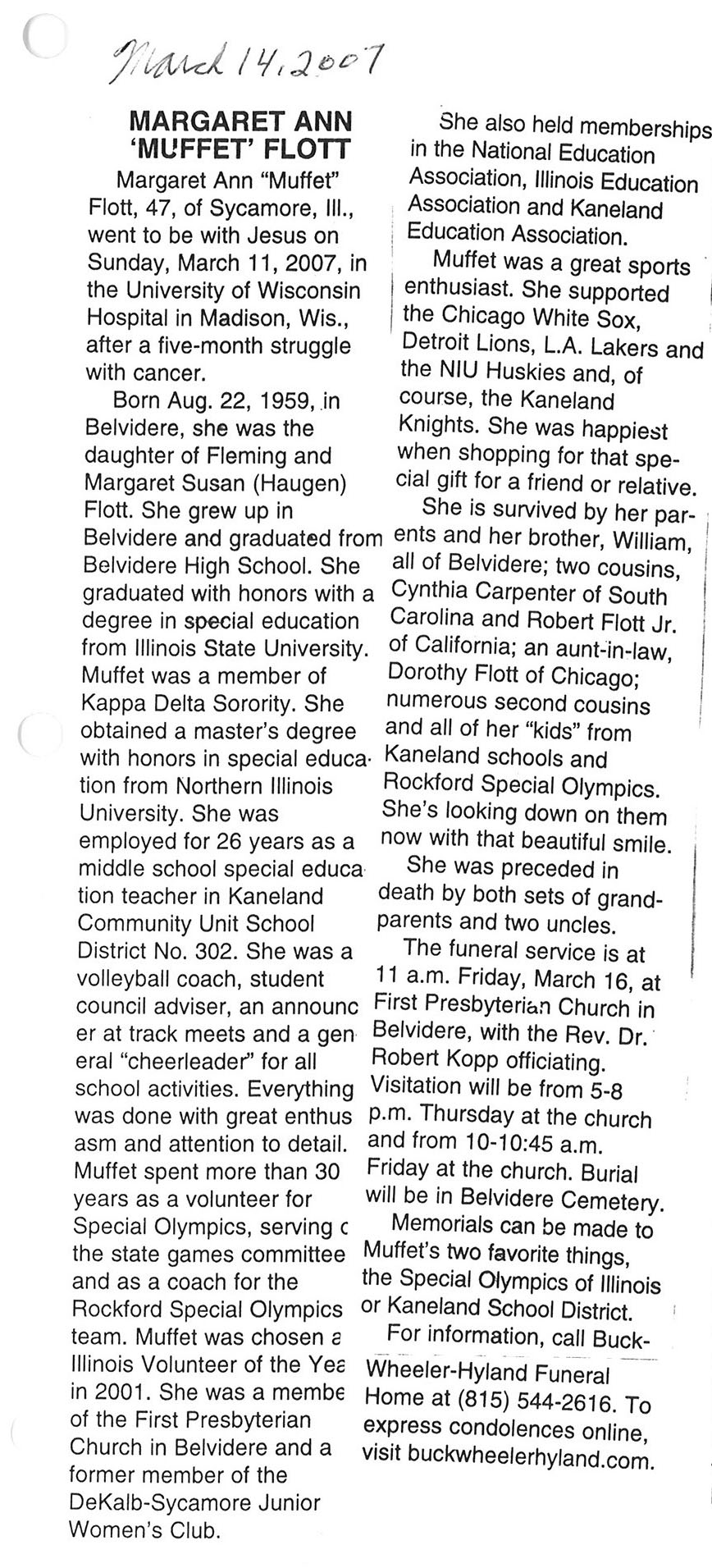 Deceased March 23, 2007