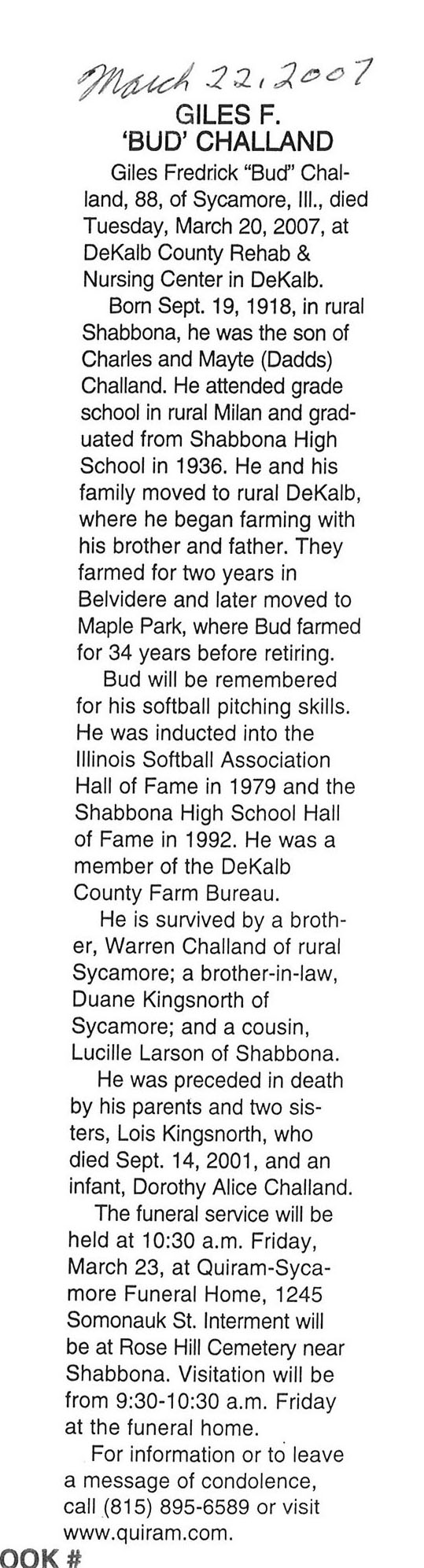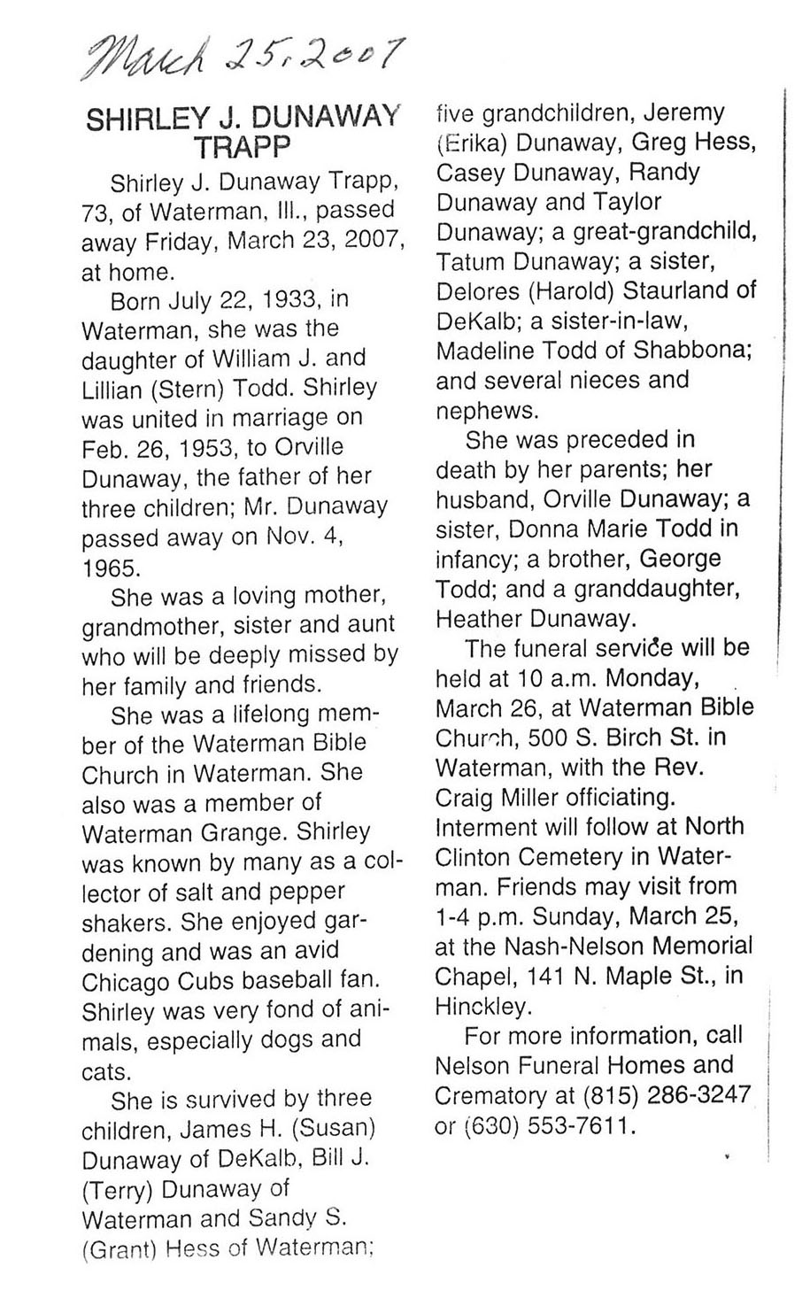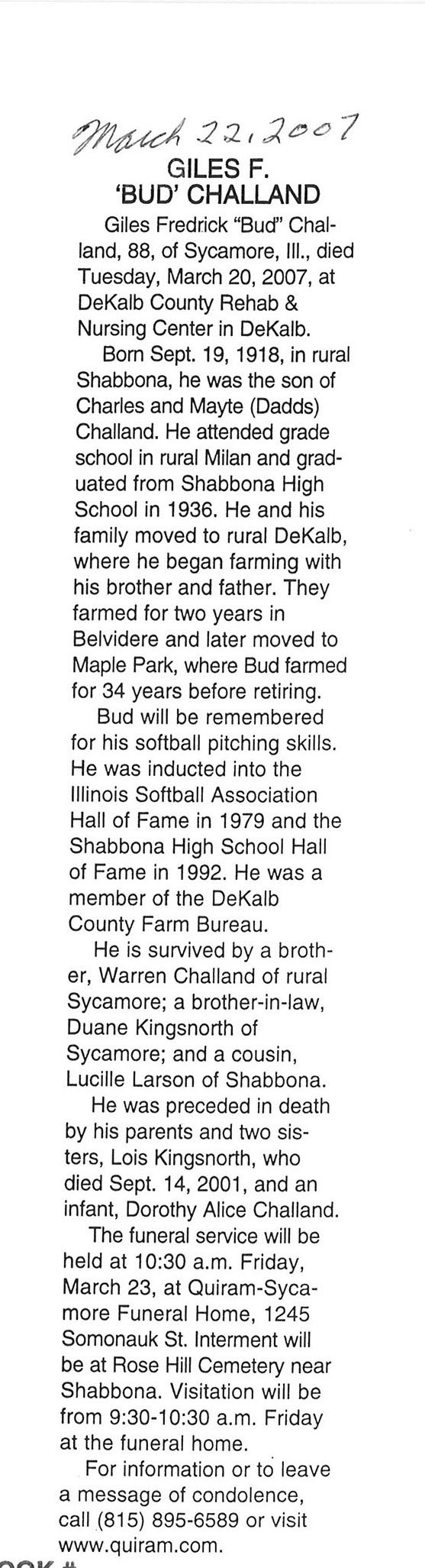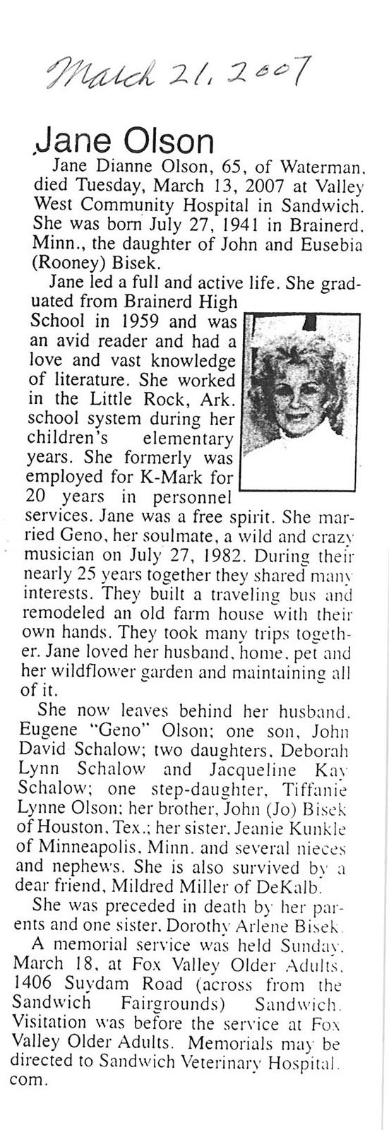 Deceased March 23, 2007