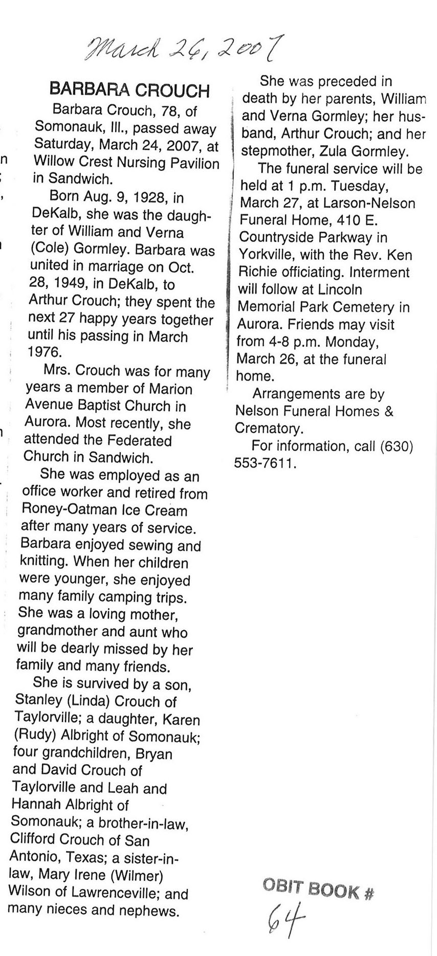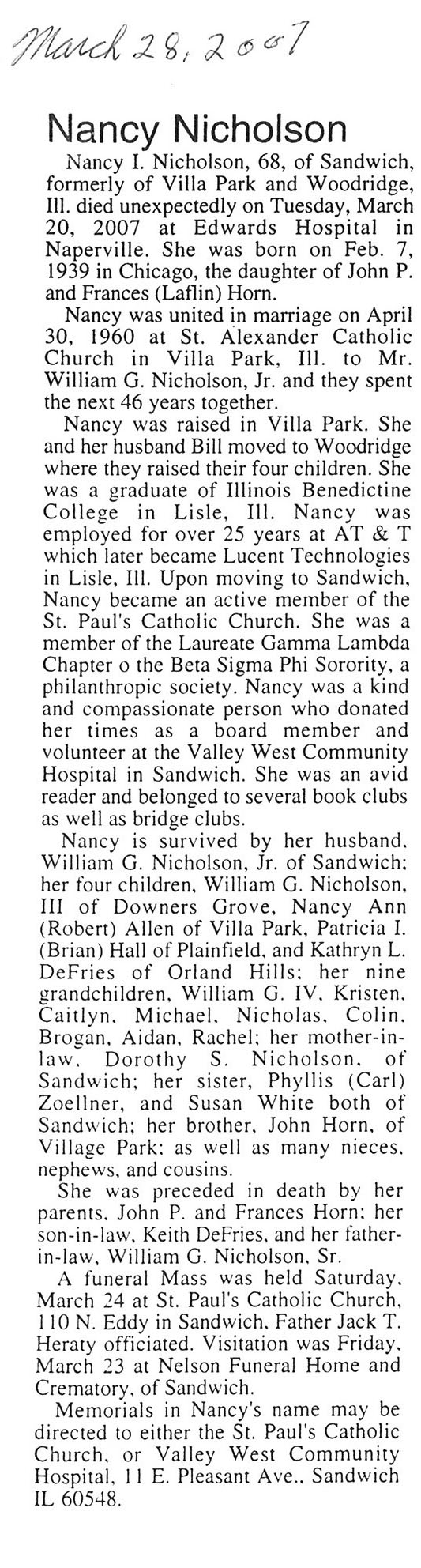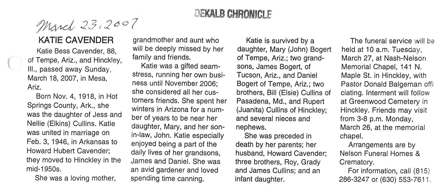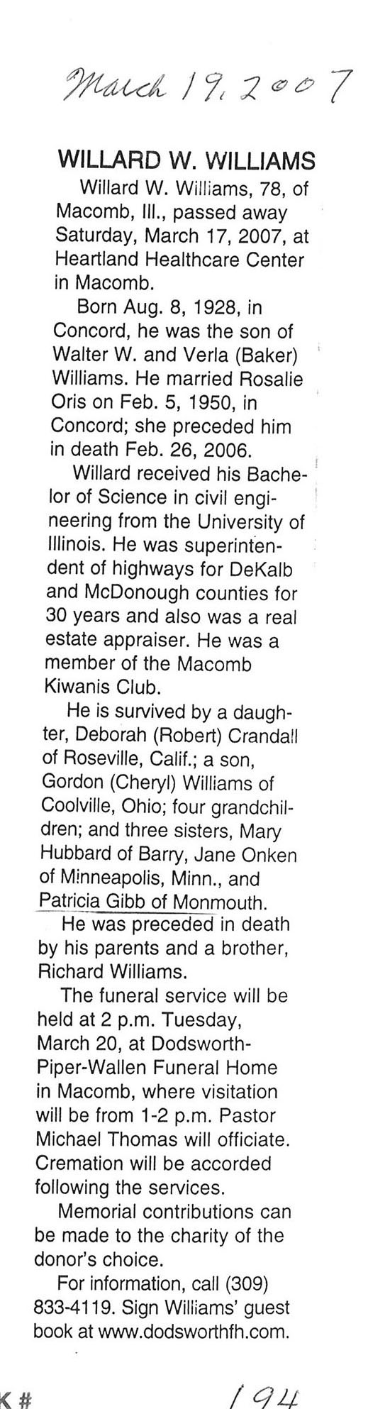 Deceased March 23, 2007
